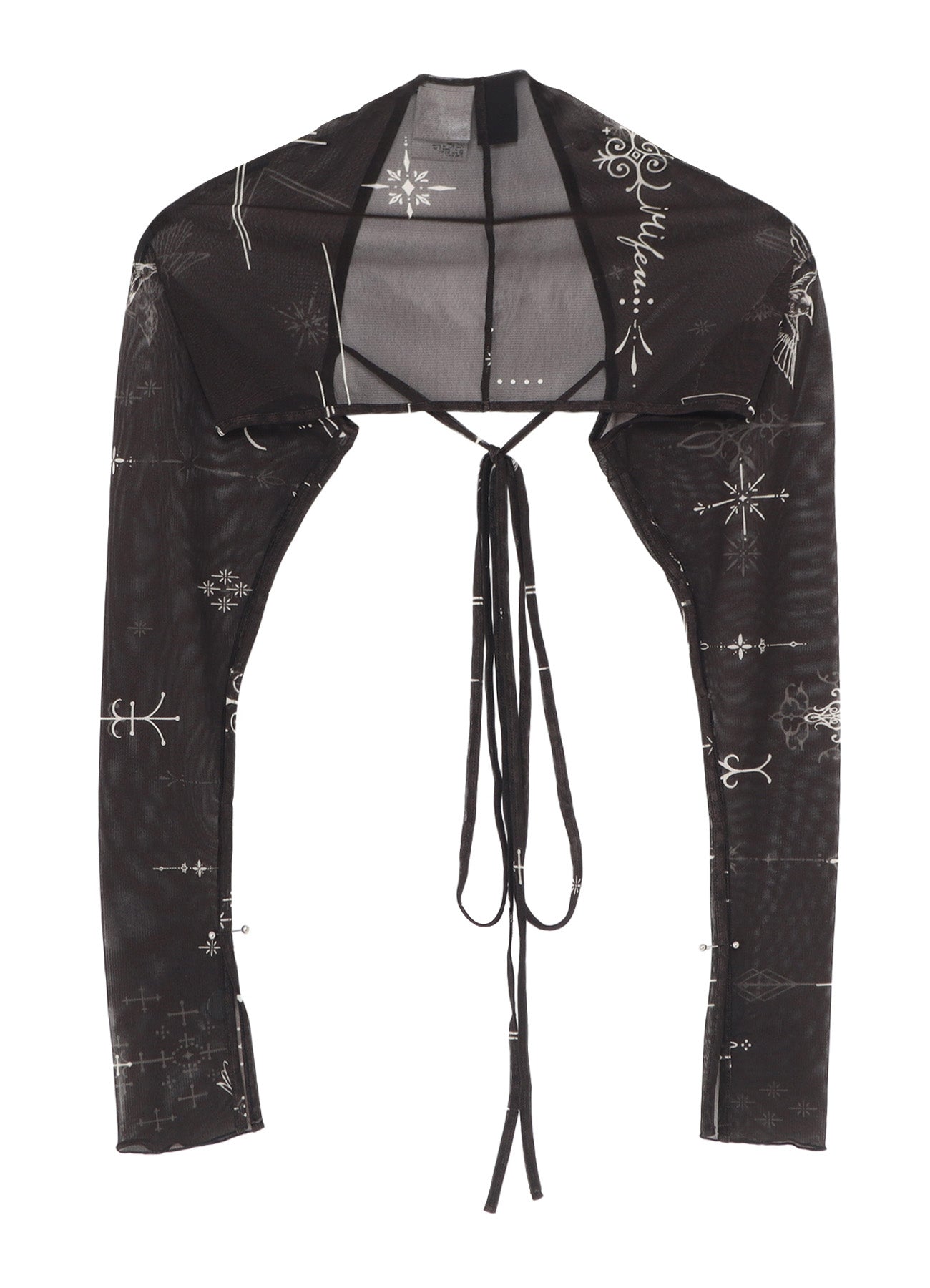 【1/16 10:00 release】TATTOO PRINTED TULLE SLEEVE SLIT BOLERO