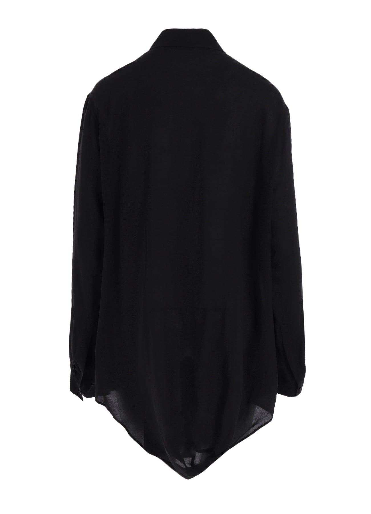This blouse features a soft, feminine fabric with a subtle sheen, translucency, and light drapery. The back of the blouse showcases a three-dimensional pattern, while the hem part offers a casual and relaxed look without adding volume.