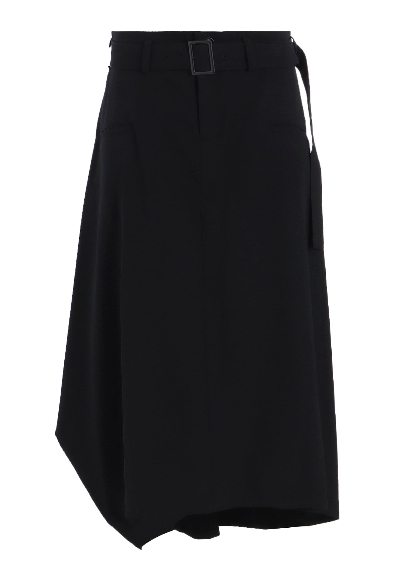This gabardine is characterized by a supple drapery and soft texture. The skirt has a simple A-line silhouette in the front and a round, voluminous shape at the back. It can be matched effortlessly with any top.