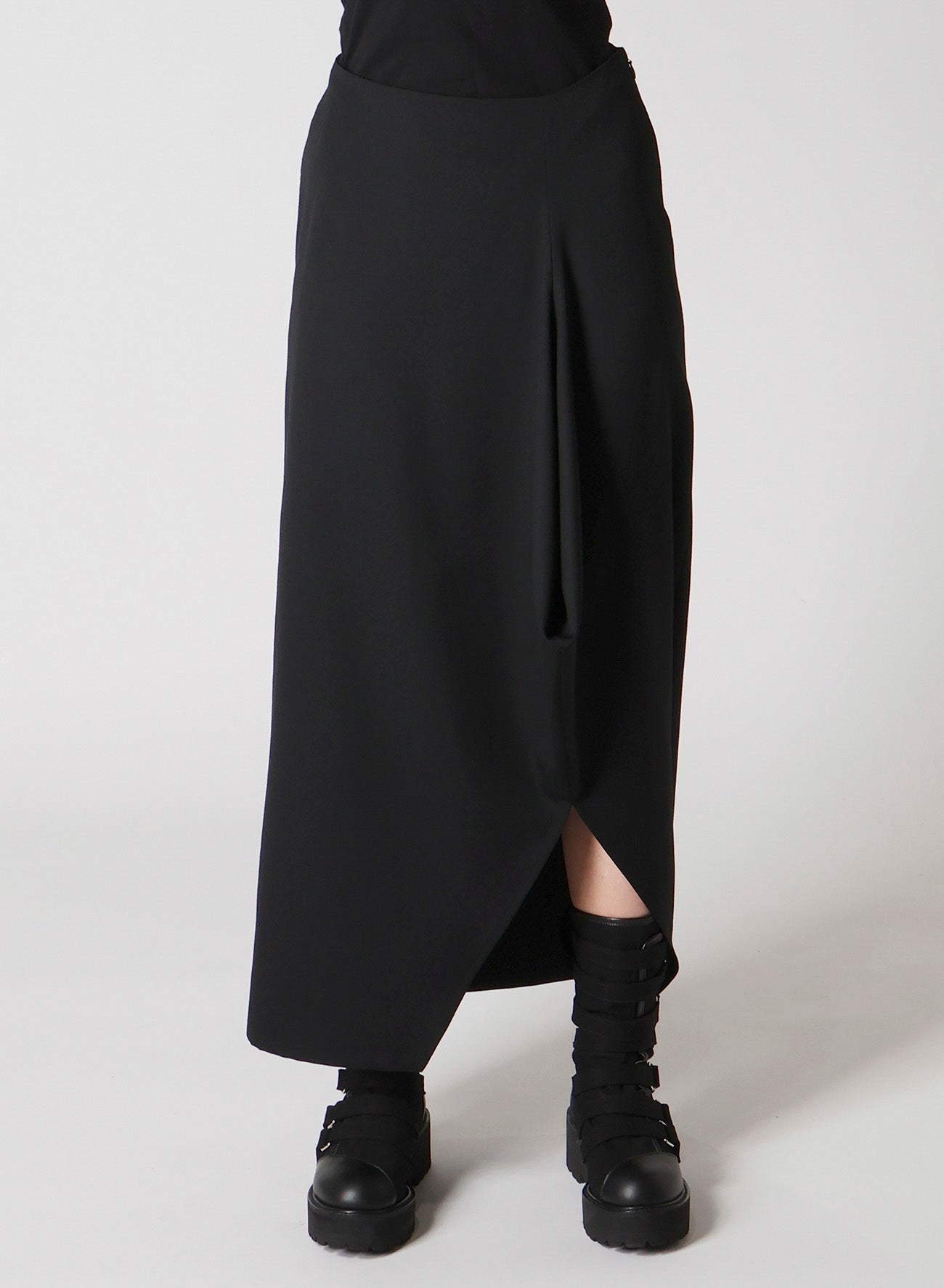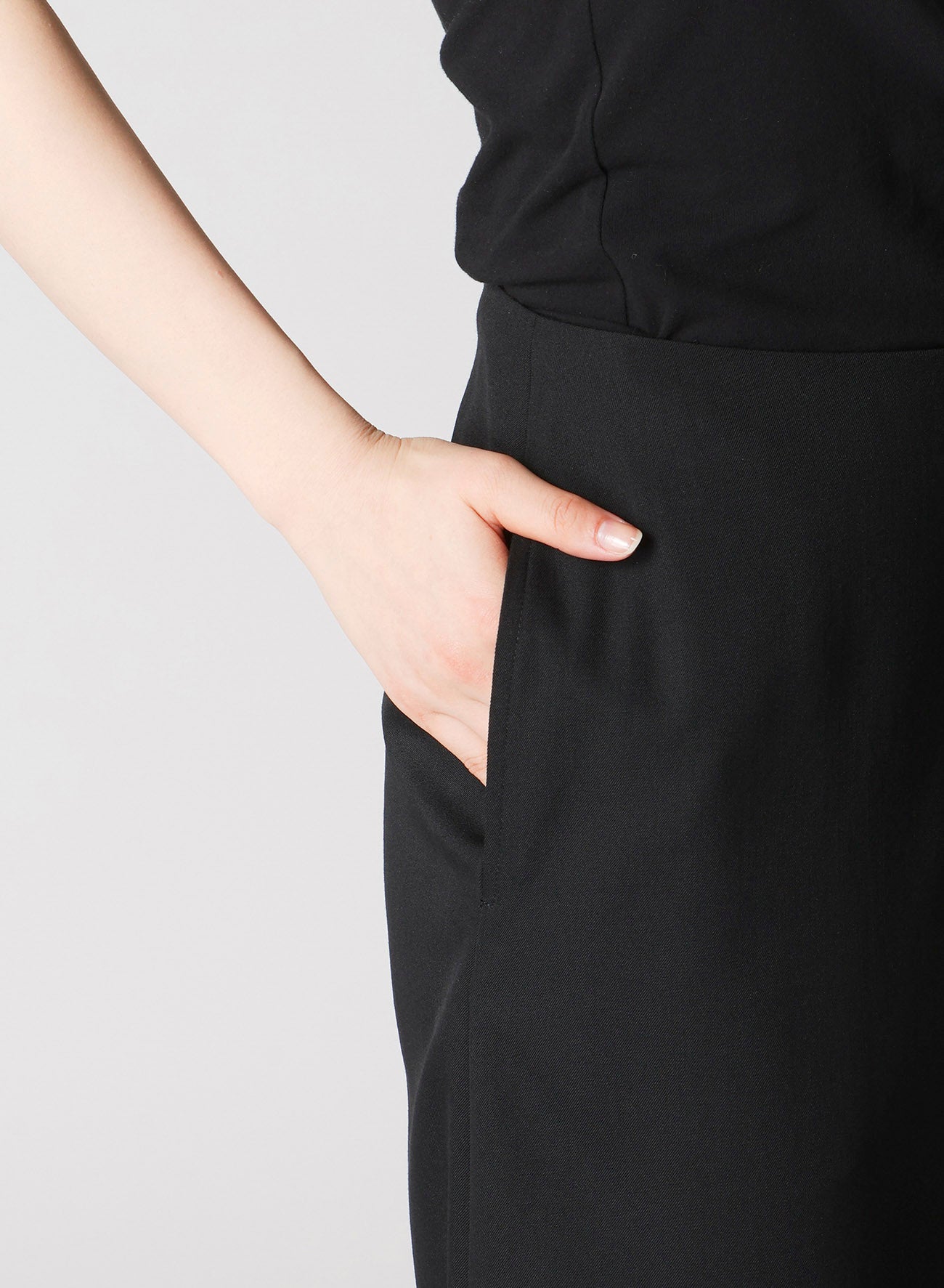 - Provides a clean, straight silhouette with a hem slit.