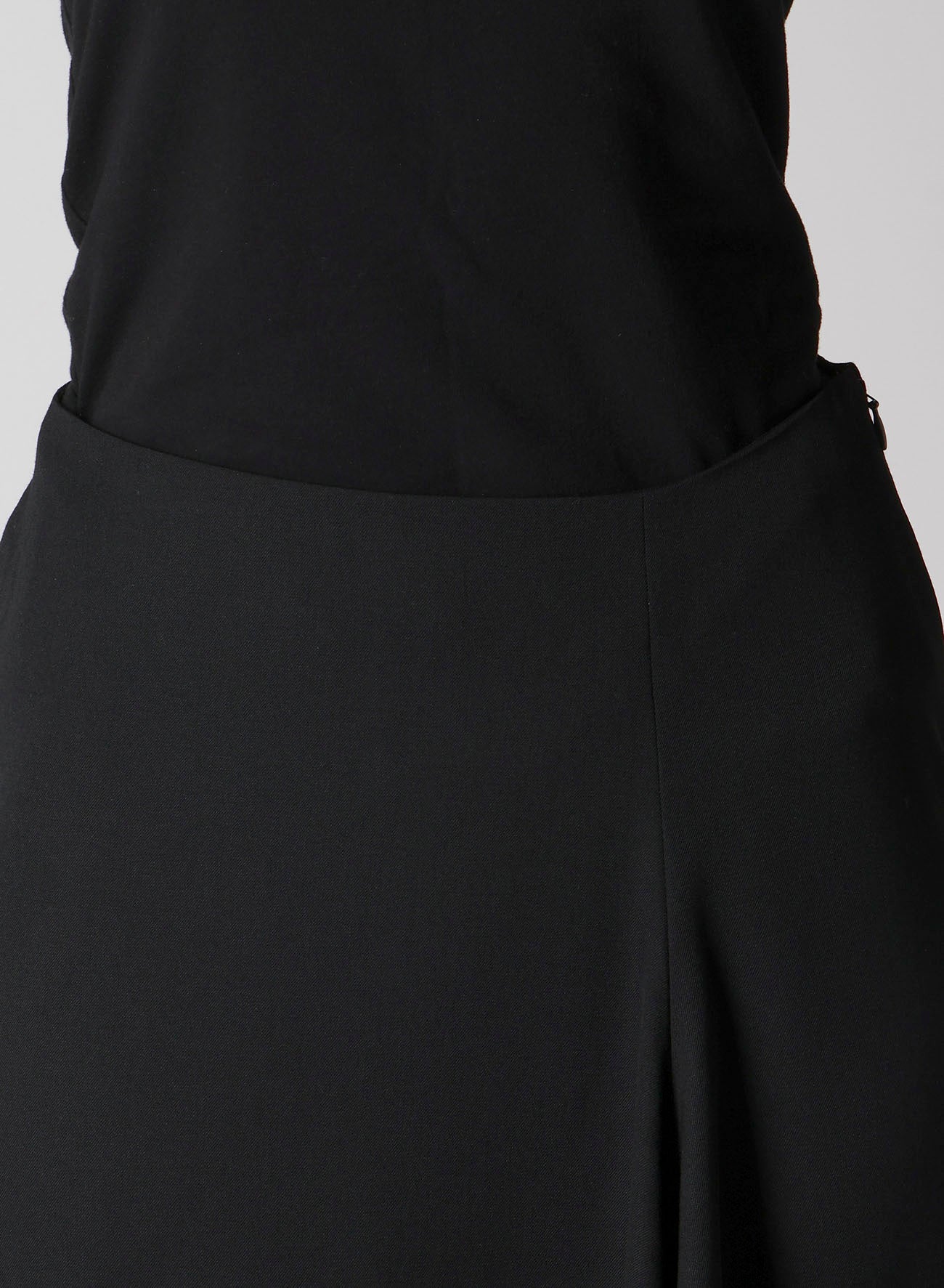 The skirt, crafted from gabardine with a graceful drapery and soft texture, features a 3D pattern of "Ponyo" on the right front. Offering a straight silhouette and a slit at the hem, it provides a clean impression.