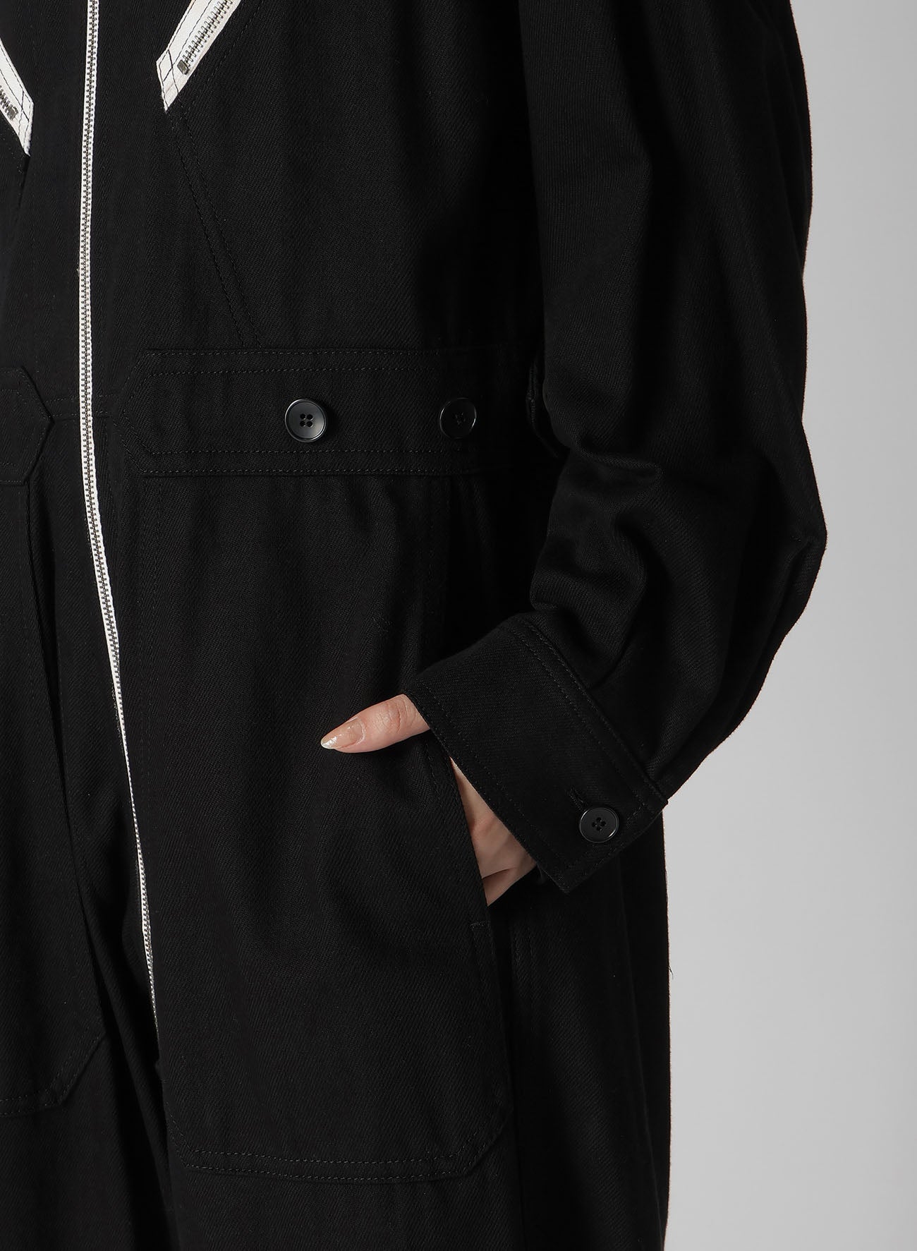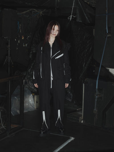 This product features soft, chunky cotton that is comfortable and has a relaxed feel. It undergoes a garment wash for a natural wrinkled texture. Unique with its contrasting white zipper on deep black fabric, each piece is finished with a cut edge, providing a refined yet rugged look.