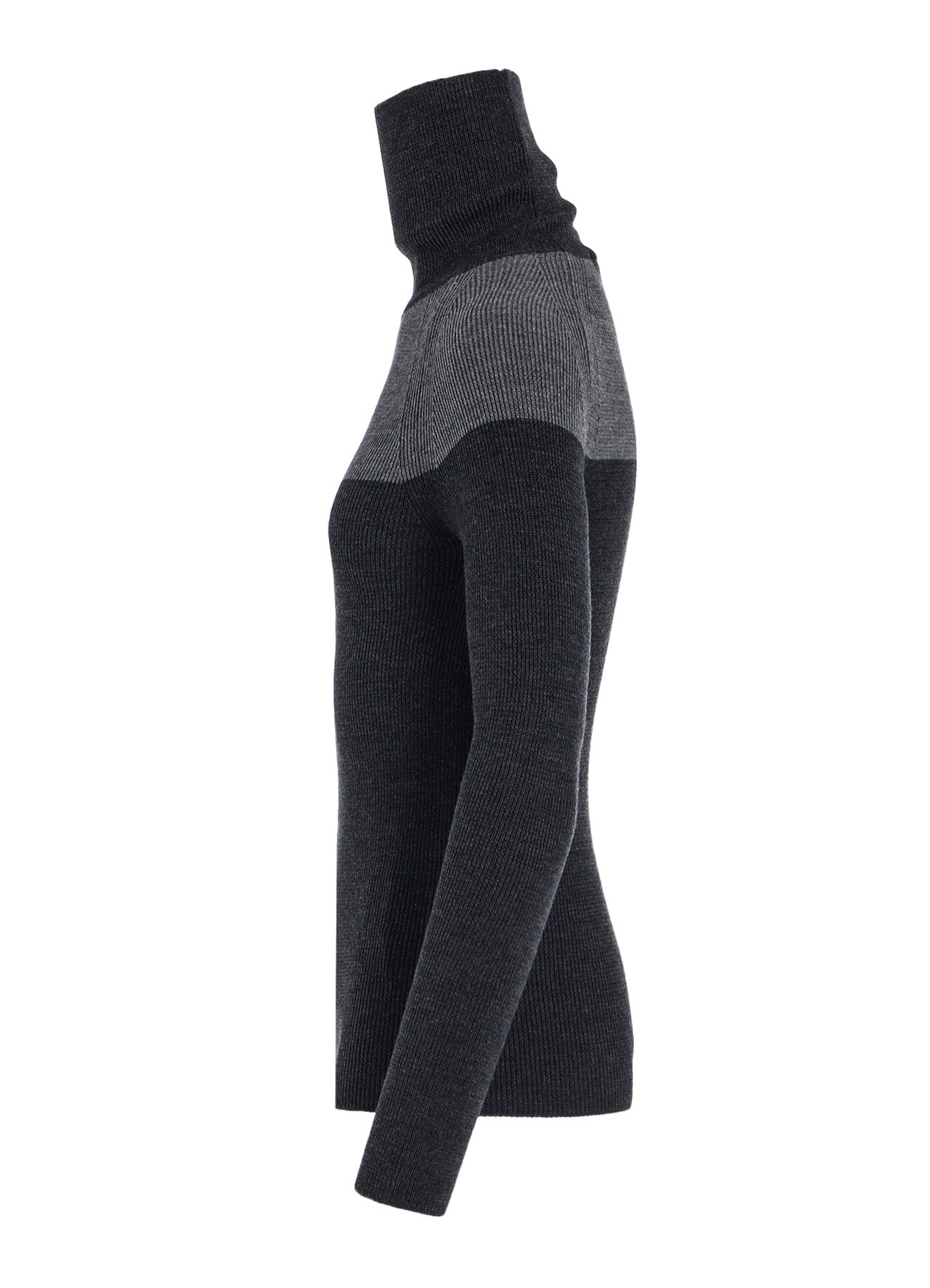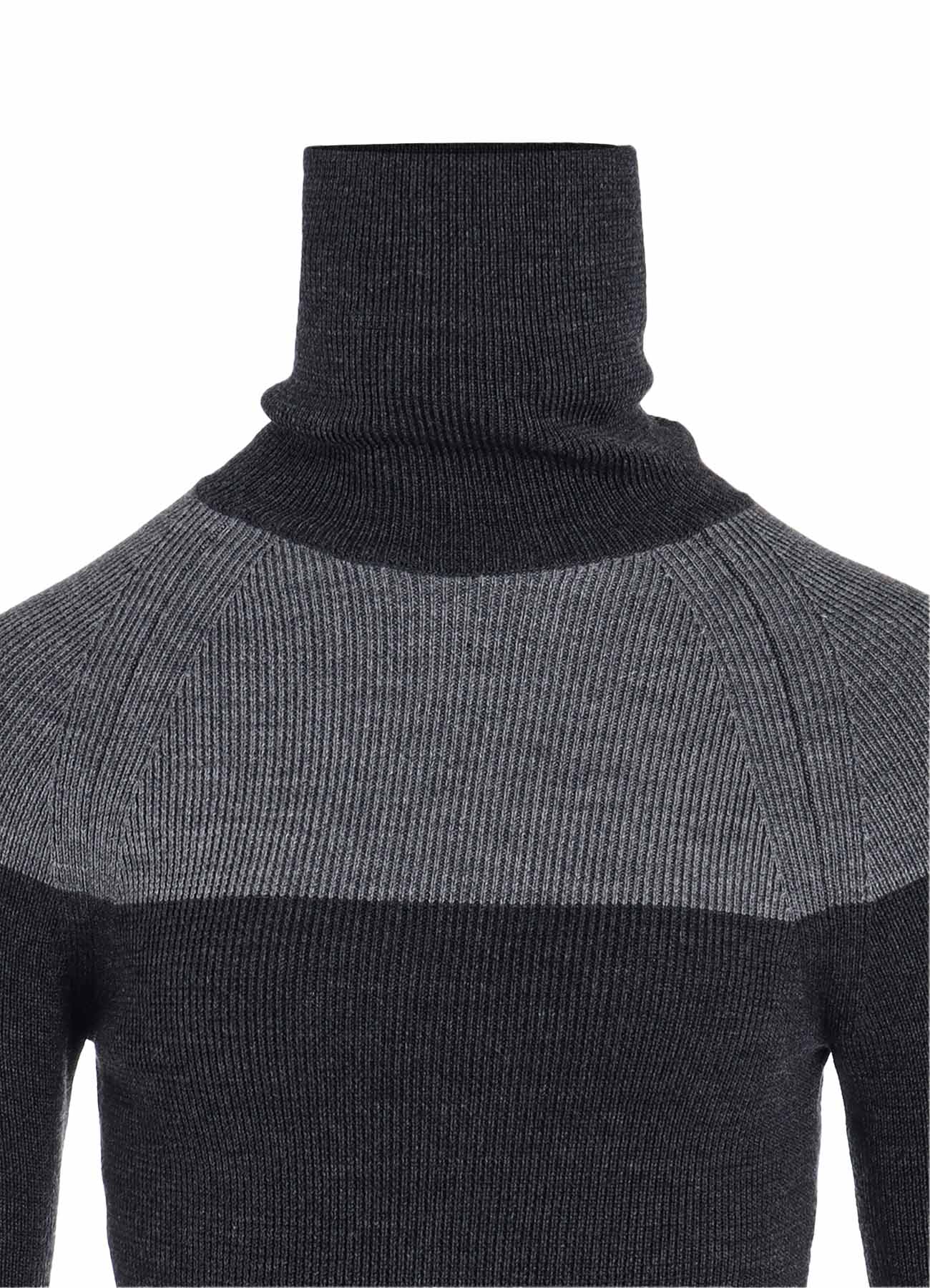 This knit combines high-quality fine merino wool with a soft, smooth texture, and is washable. Given the ribbed knitting, it excels in warmth and flexibility. With a clean silhouette in both length and width, it functions comfortably as inner wear.