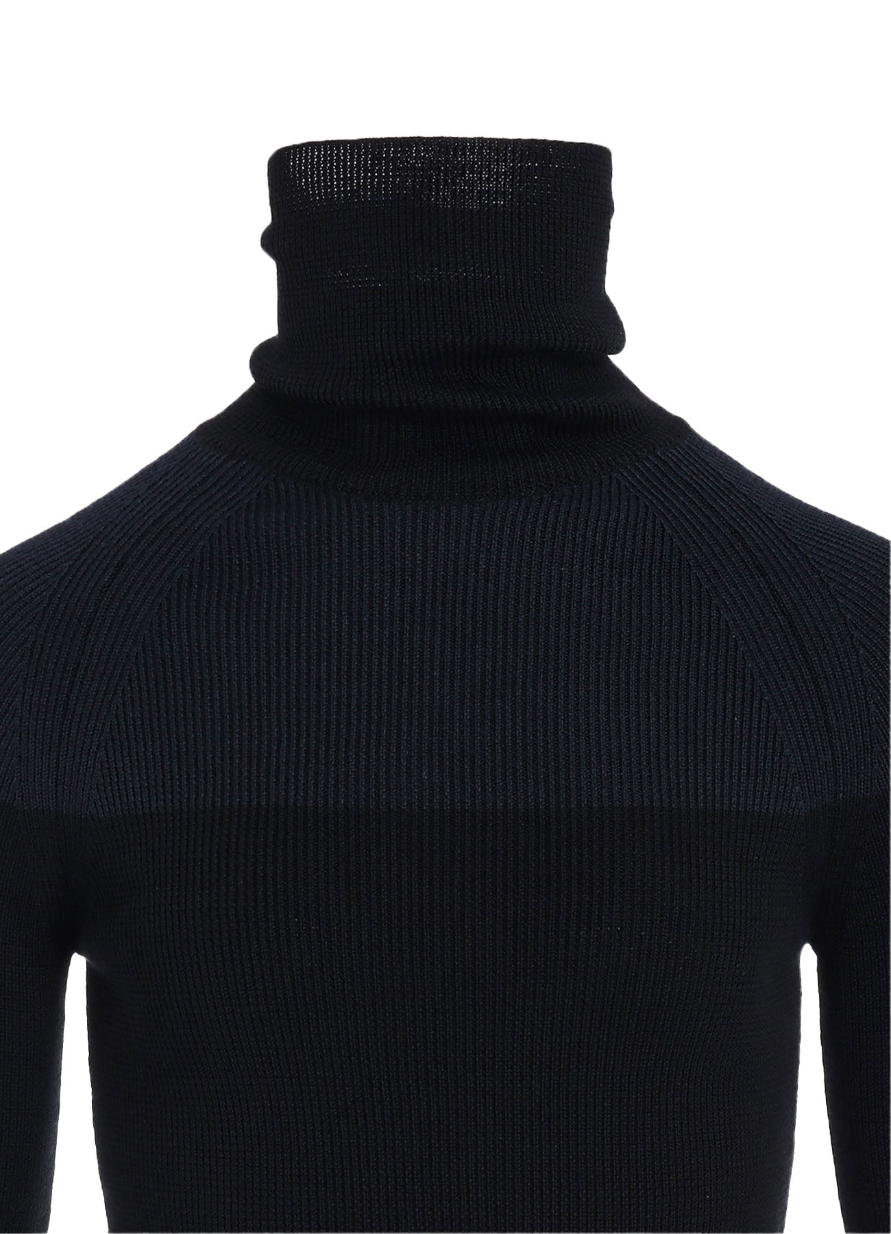 This knit combines high-quality fine merino wool with a soft, smooth texture, and is washable. Given the ribbed knitting, it excels in warmth and flexibility. With a clean silhouette in both length and width, it functions comfortably as inner wear.