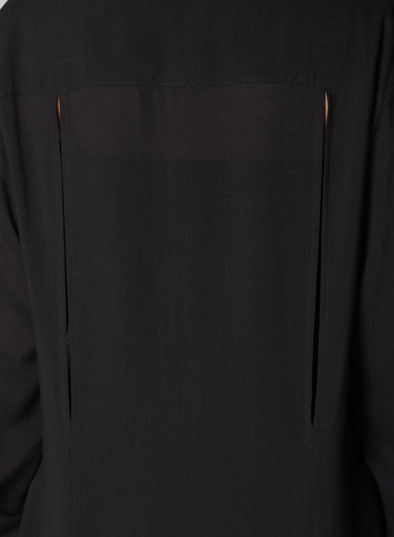 This lightweight fabric has a soft feel, subtle sheen, and elegant drapery, making it very comfortable. Side slits add movement to the straight long shirt design. Its thin material is ideal for layering, making it a great choice for versatile outfits.