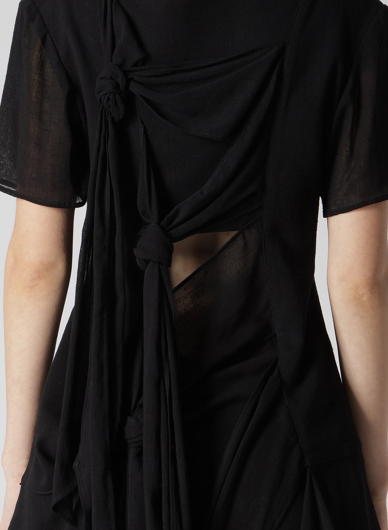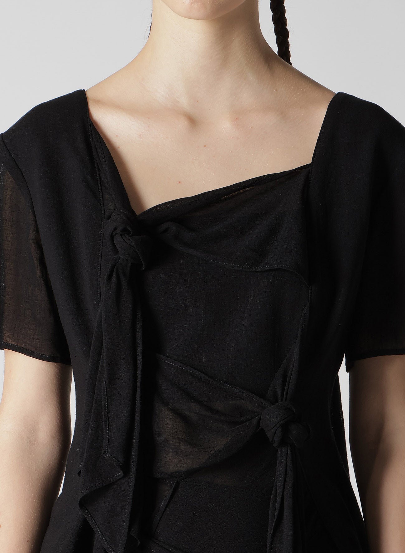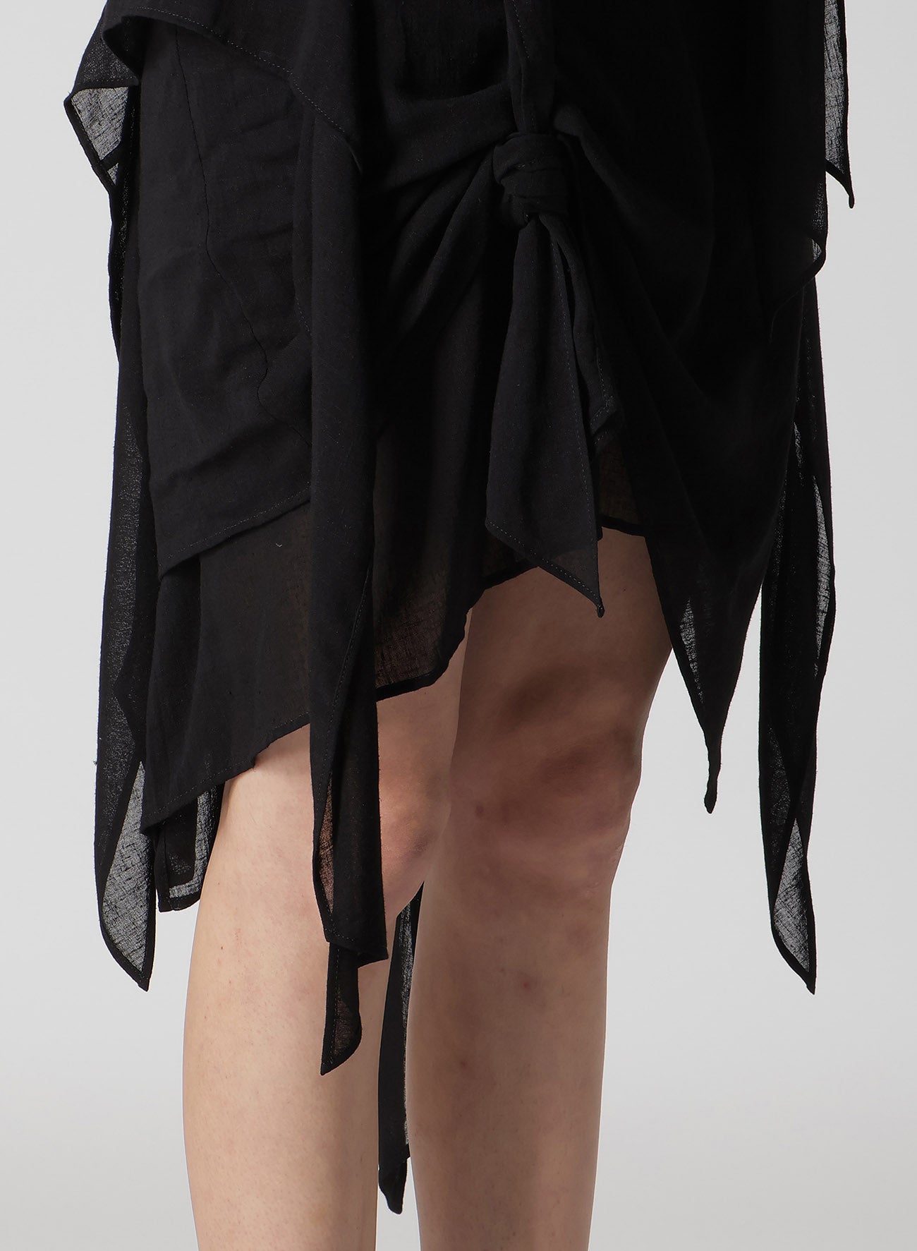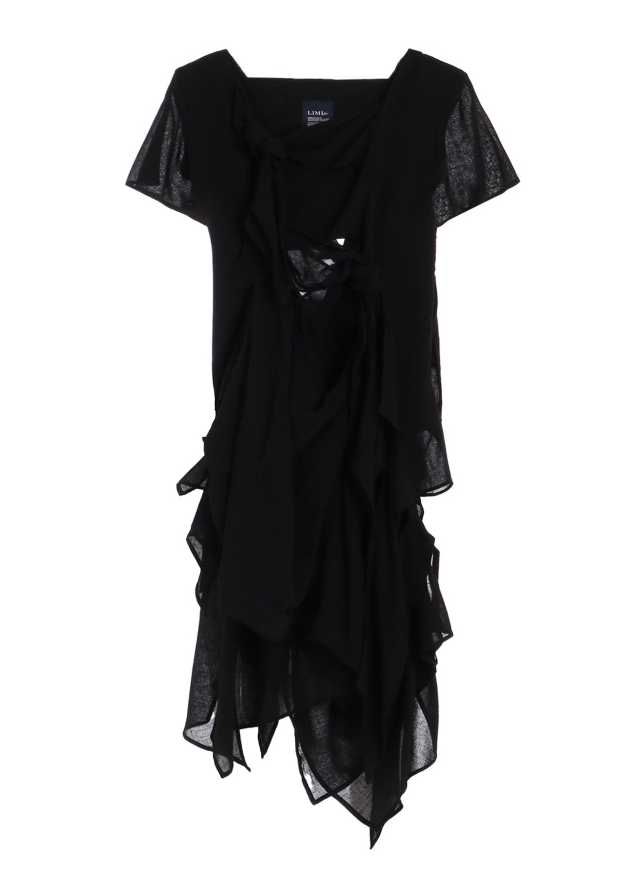 This fabric combines the softness and drapery of rayon with the natural texture of linen. It is woven loosely for a lightweight, breathable, and fresh feel. Expect minor thread inconsistencies due to linen's natural properties. Enjoy a unique look and punk flair with this LIMI feu knotted dress.