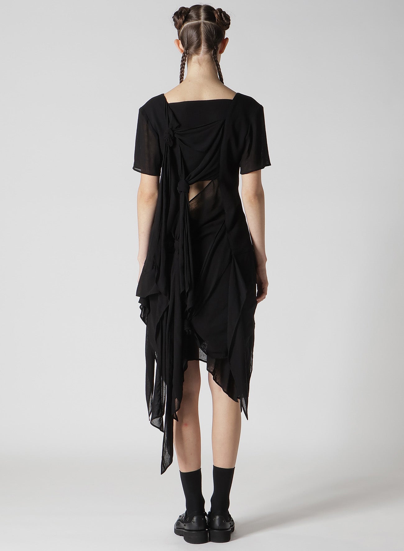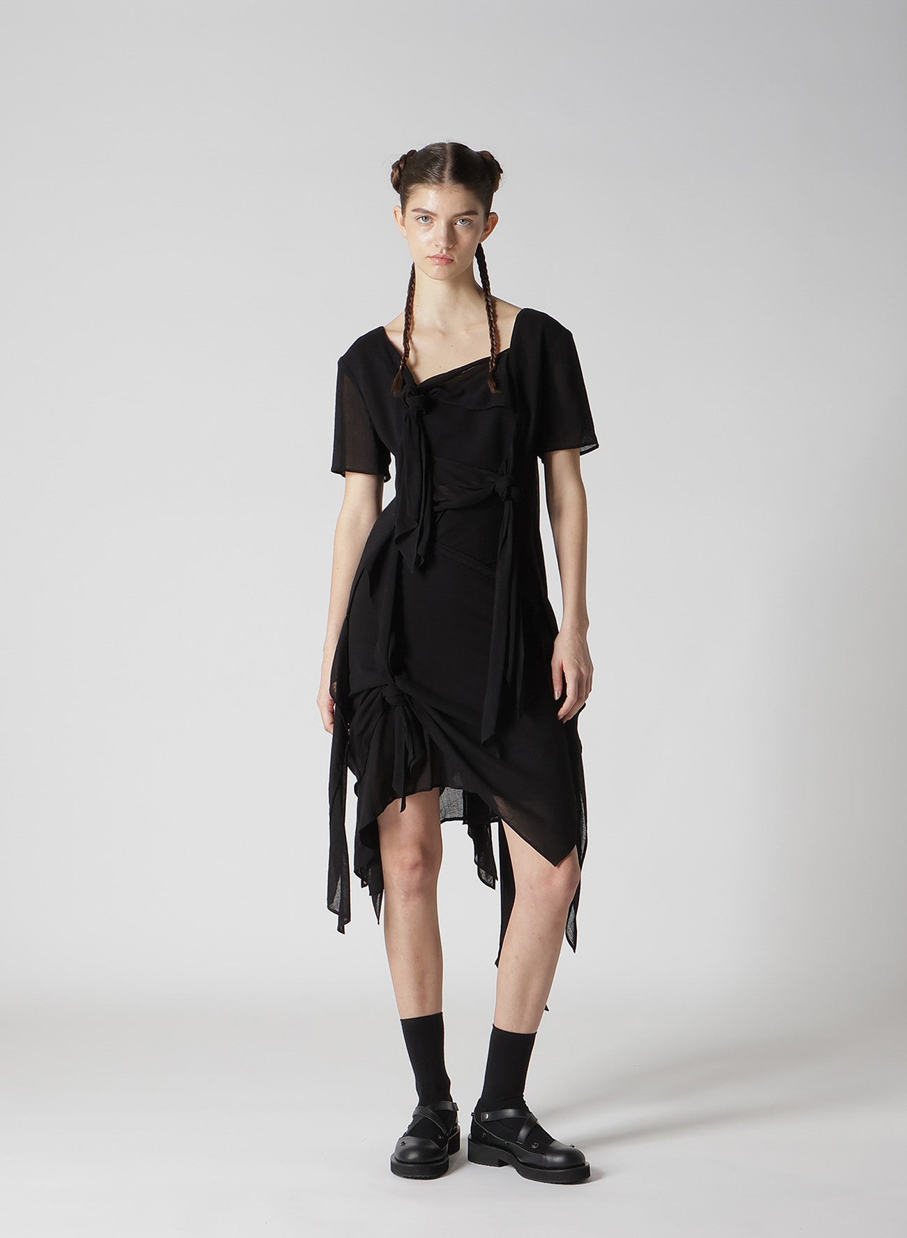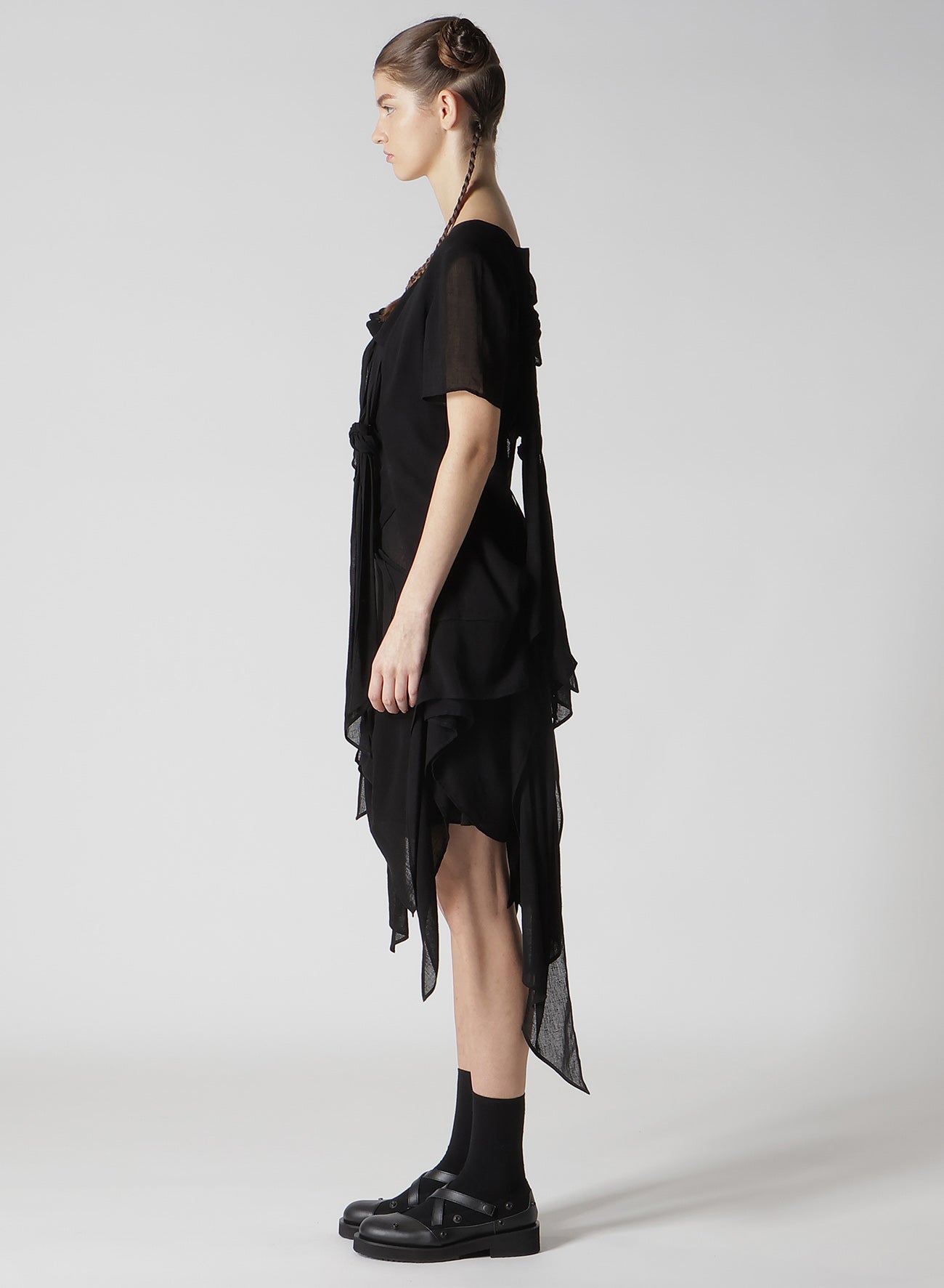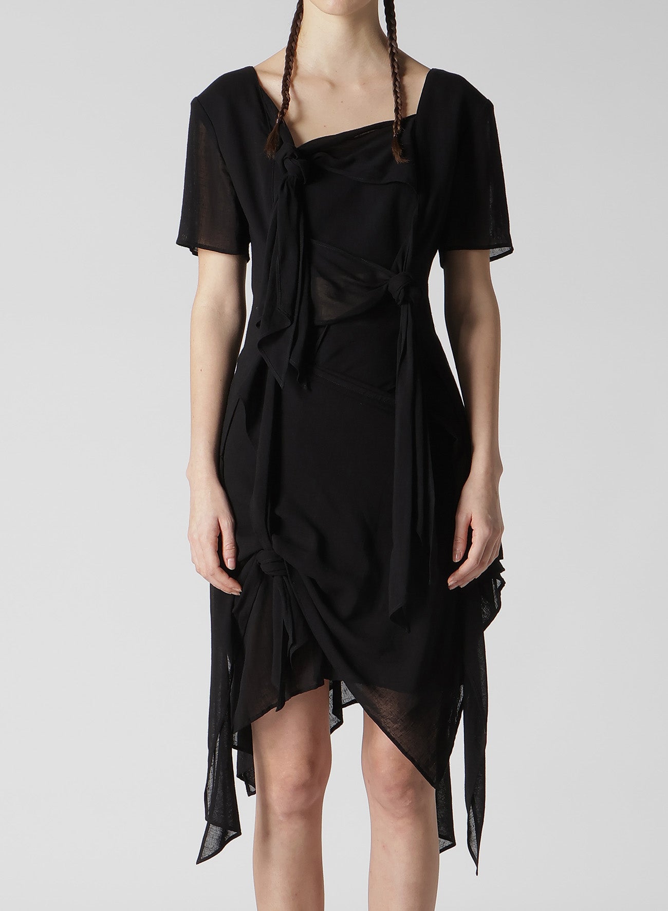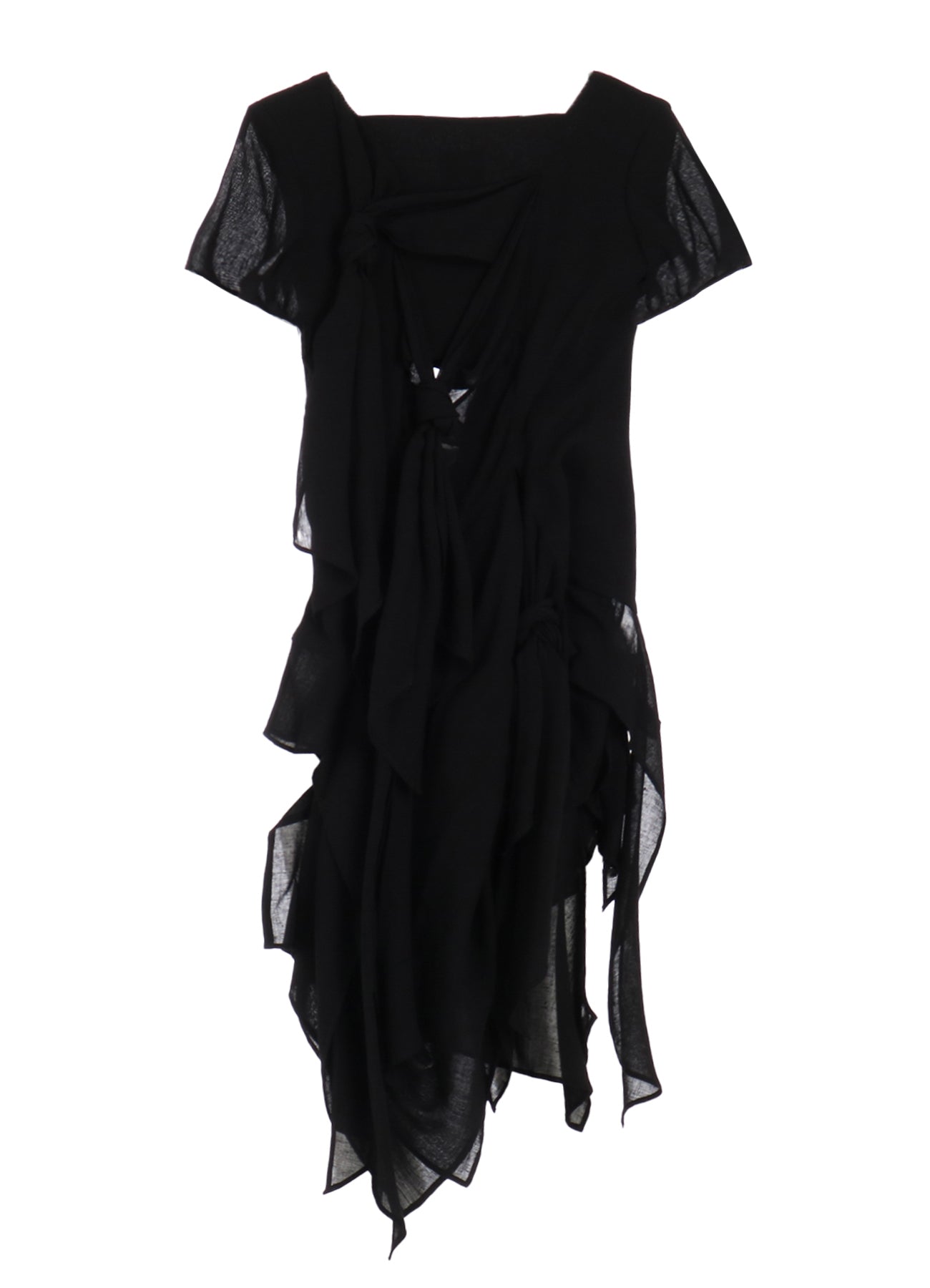 This fabric combines the softness and drapery of rayon with the natural texture of linen. It is woven loosely for a lightweight, breathable, and fresh feel. Expect minor thread inconsistencies due to linen's natural properties. Enjoy a unique look and punk flair with this LIMI feu knotted dress.