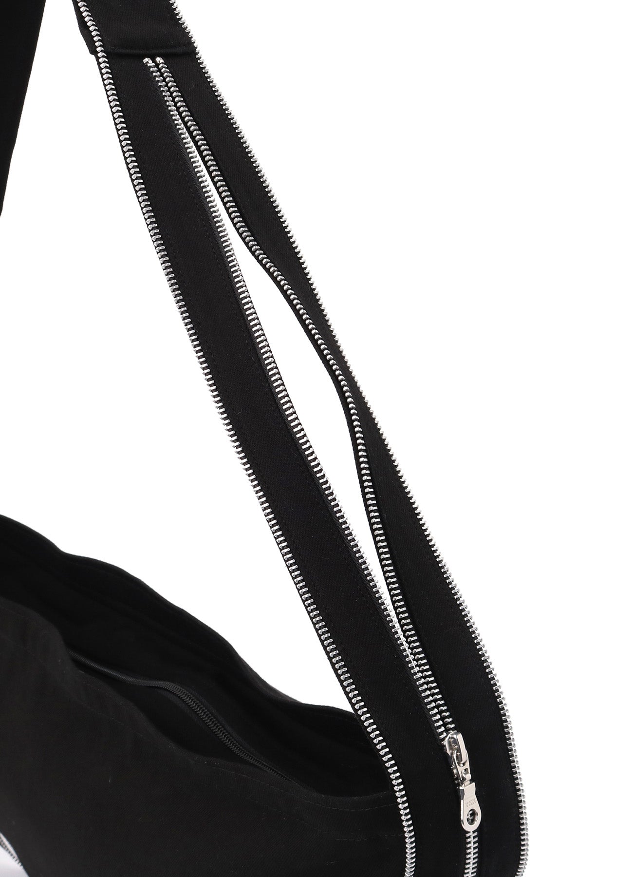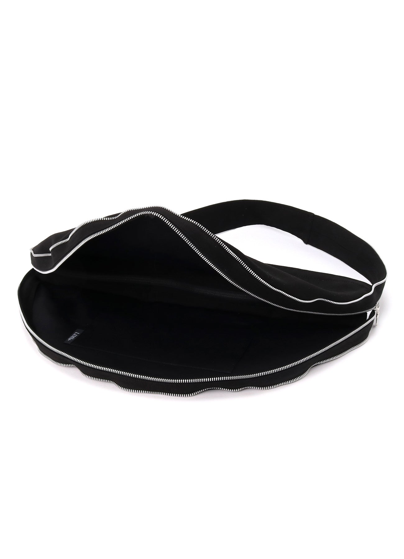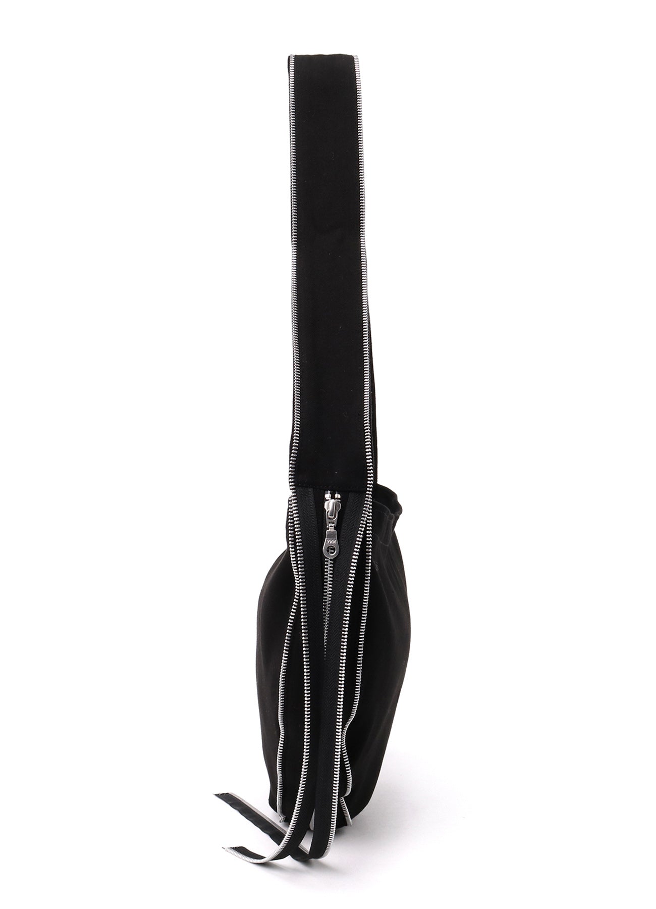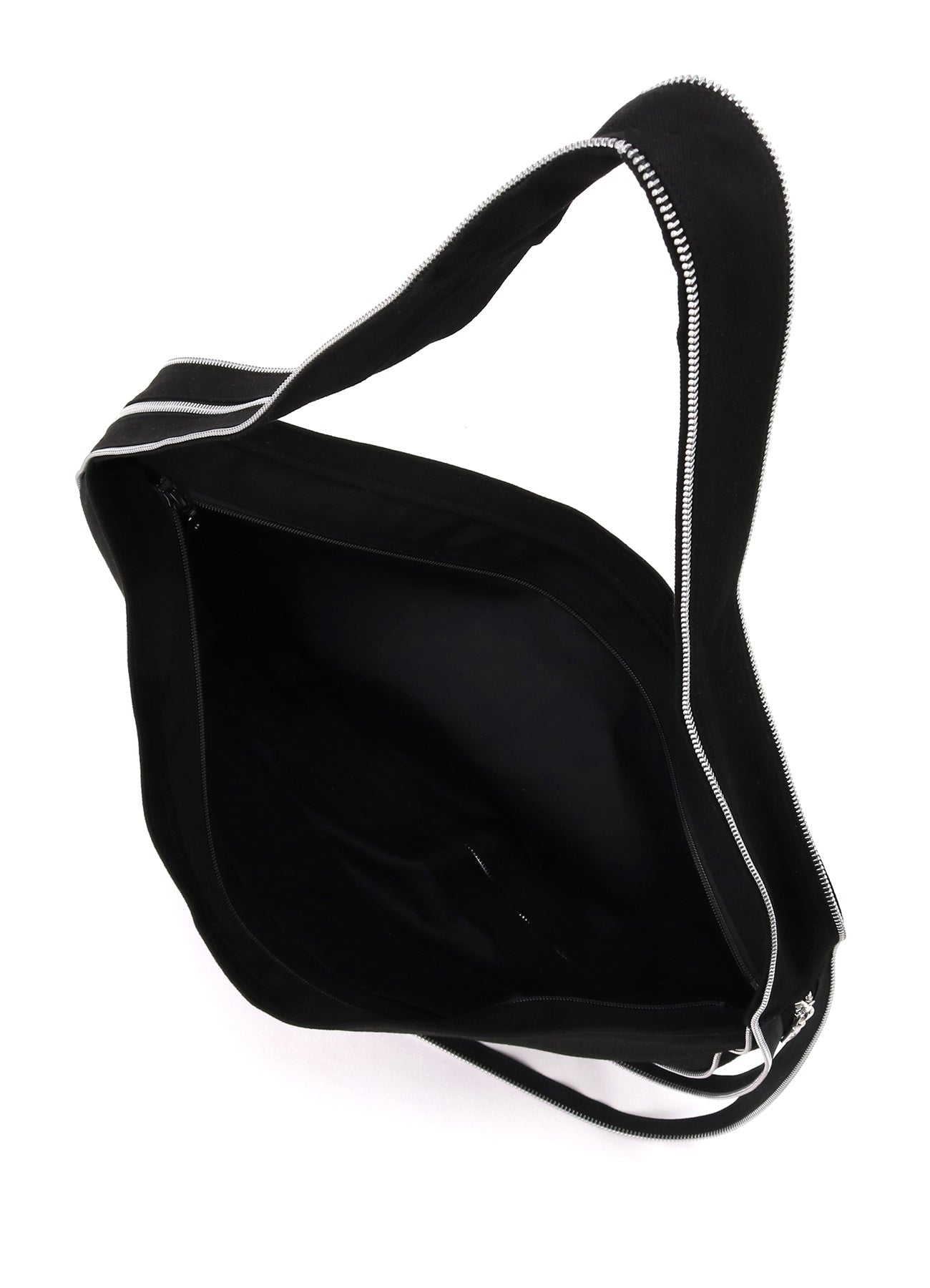 This season's standout is a large shoulder bag made from a uniquely textured, lightweight black denim, dyed for an even deeper black than standard versions. Equipped with zippers all over, the gusset zipper allows access to the bag's contents from the side.