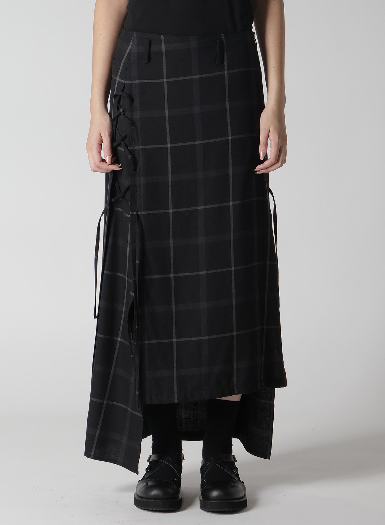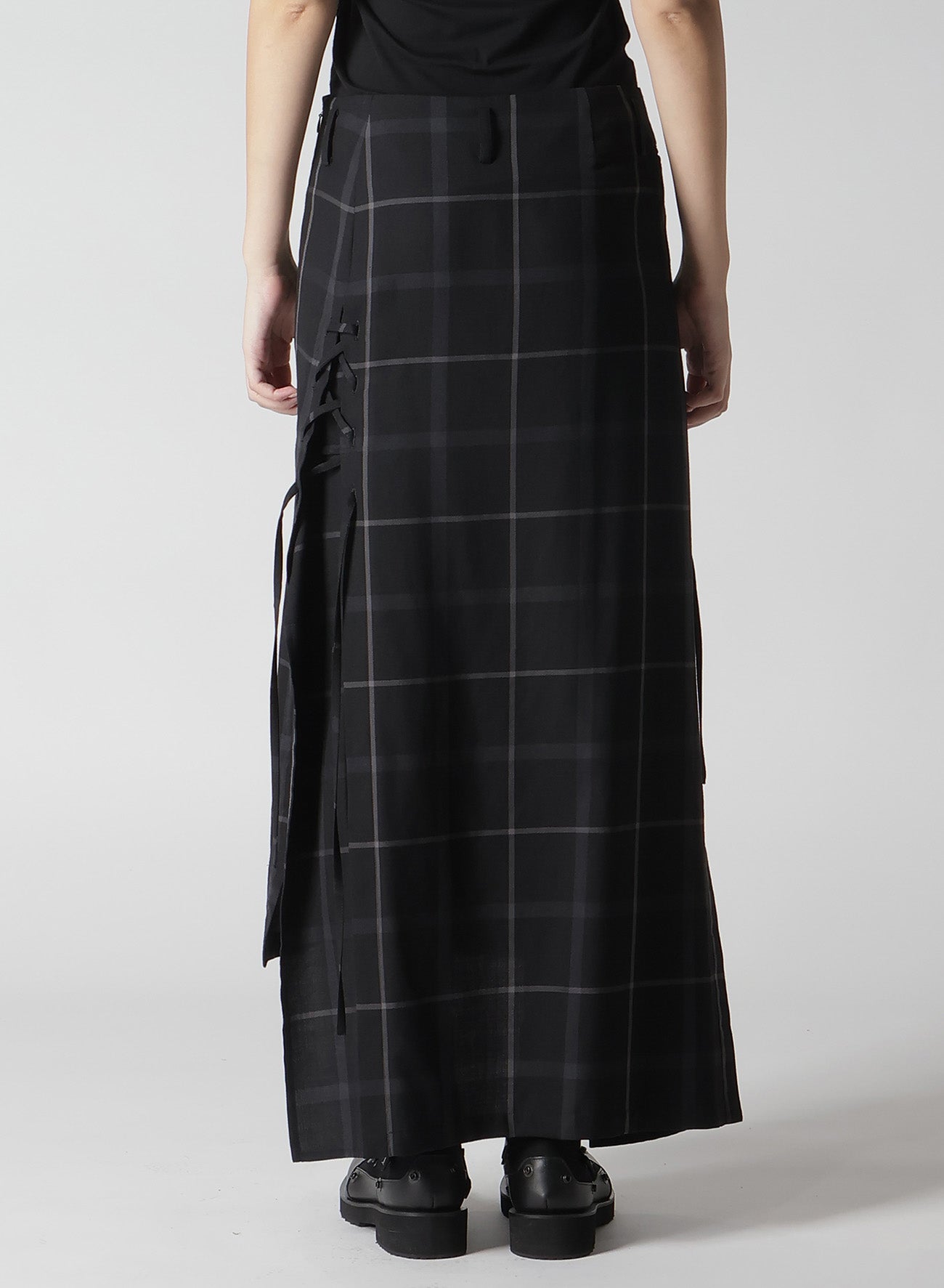 PLAID LACE-UP LONG SKIRT