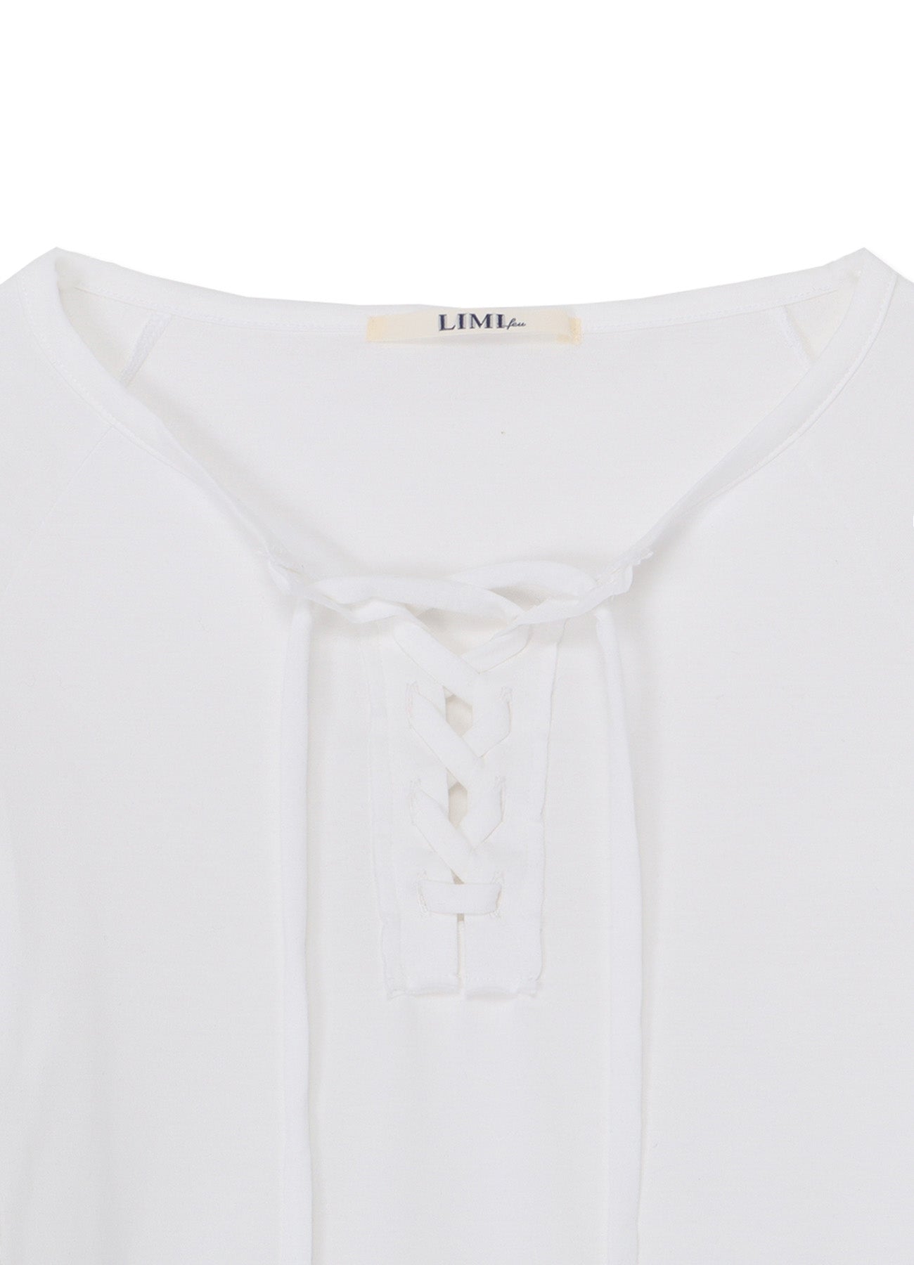 - Features lace-up details at the neckline and right side.