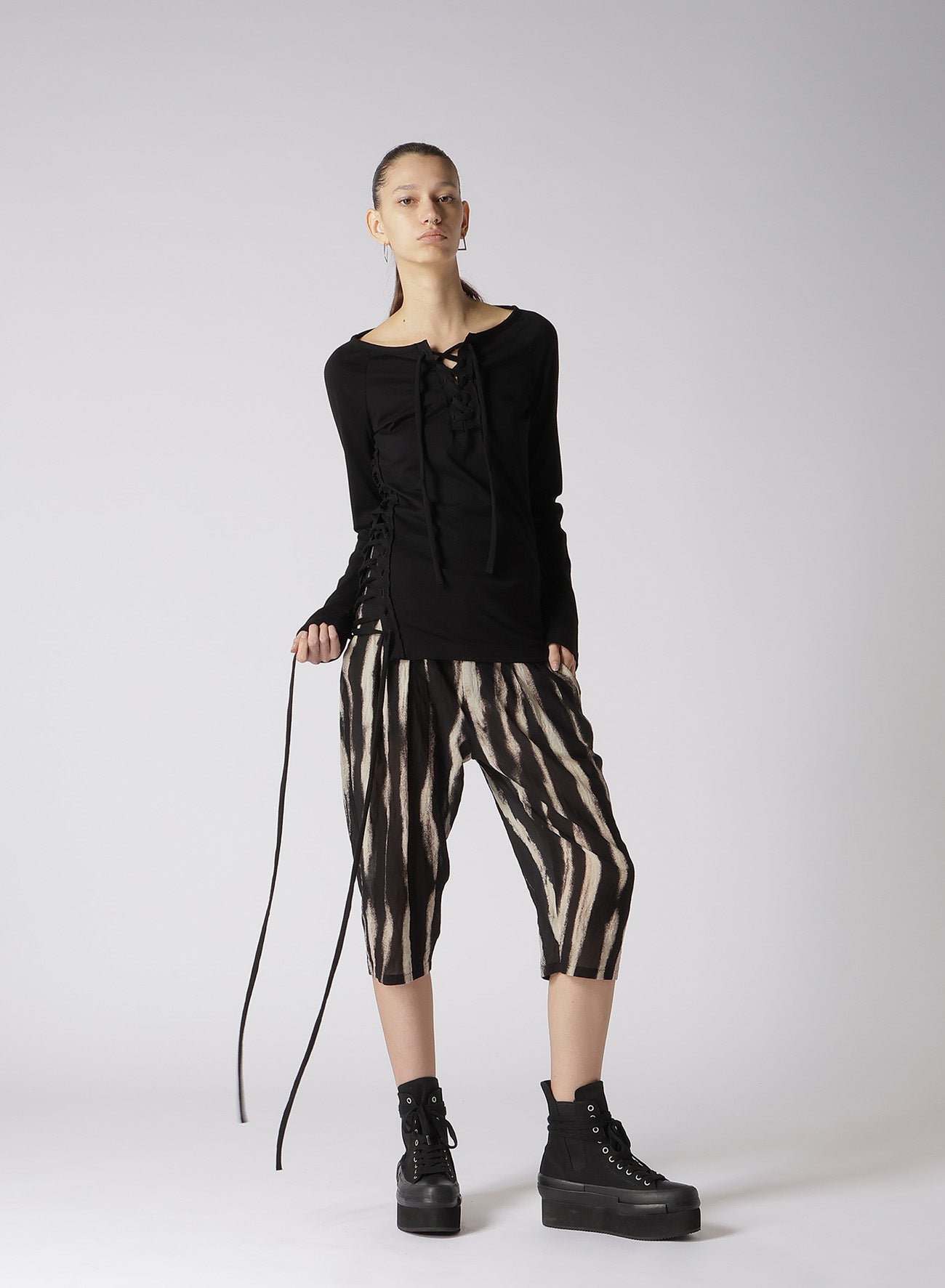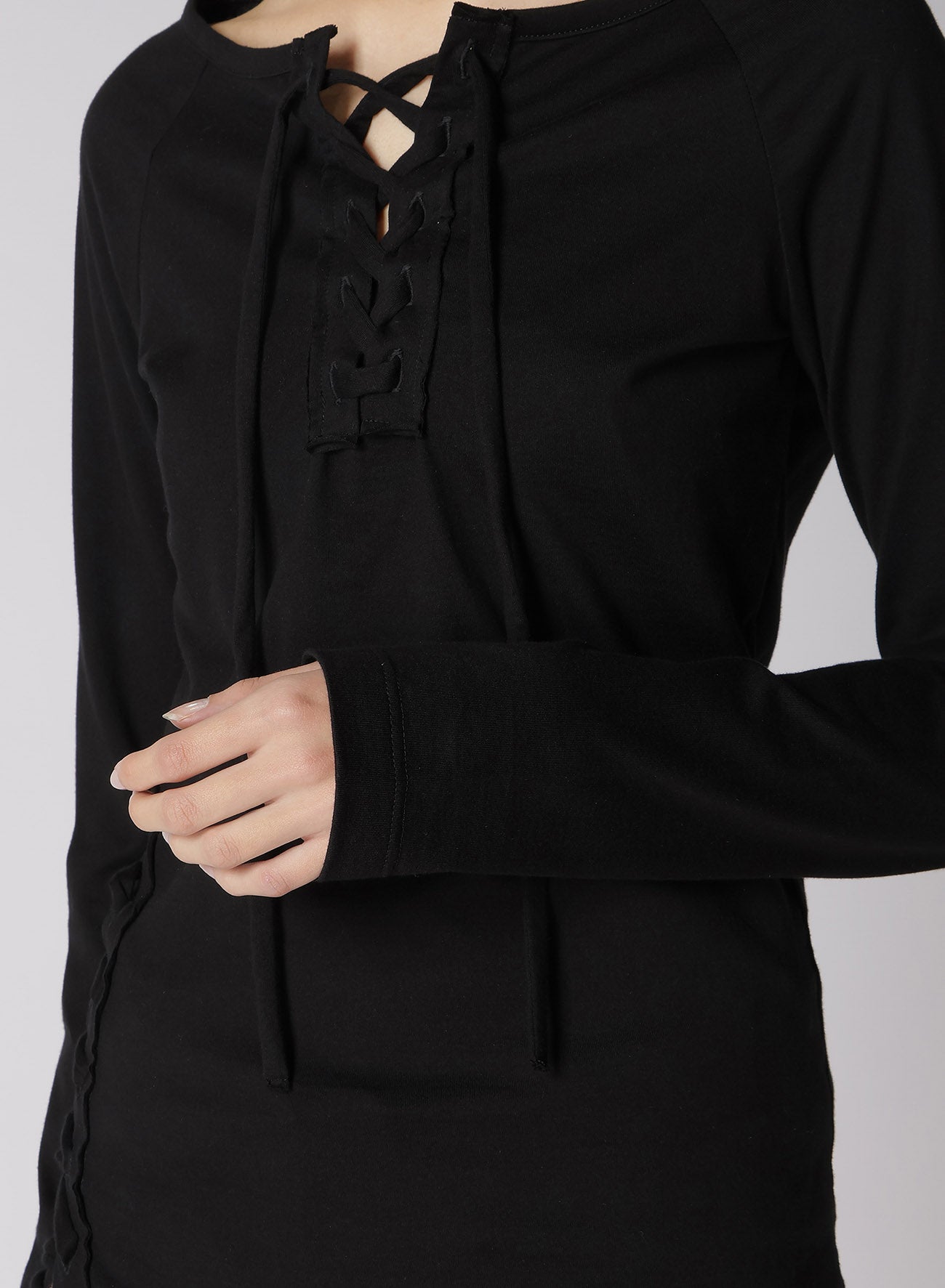 60/2 COTTON JERSEY LACE-UP LONG T-SHIRT