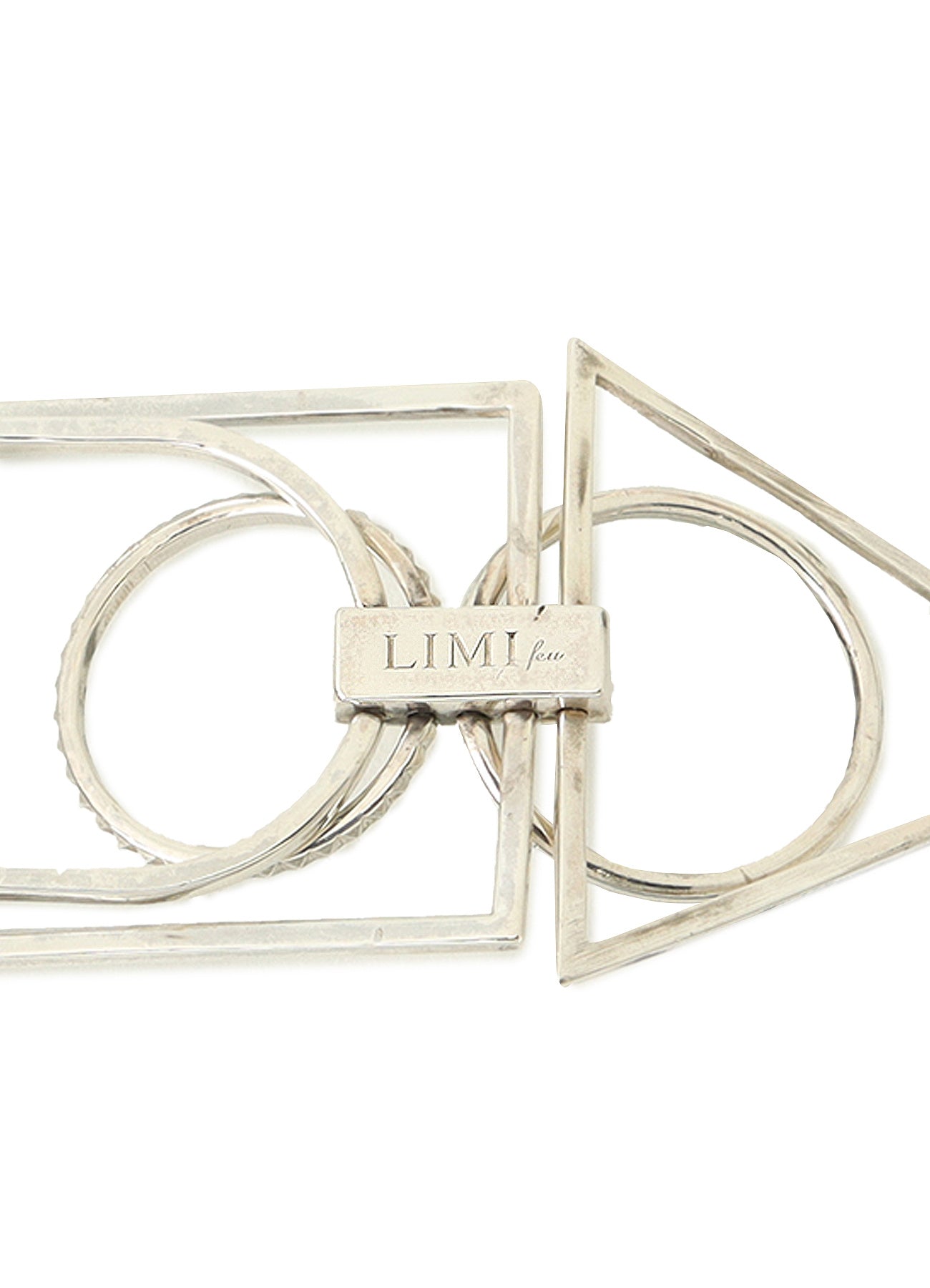 This product features an ensemble of five rings of different sizes and shapes. Wearers can insert fingers into their preferred ring and transform the accessory into various configurations for unique styling options. Due to its delicate construction, handle with care.