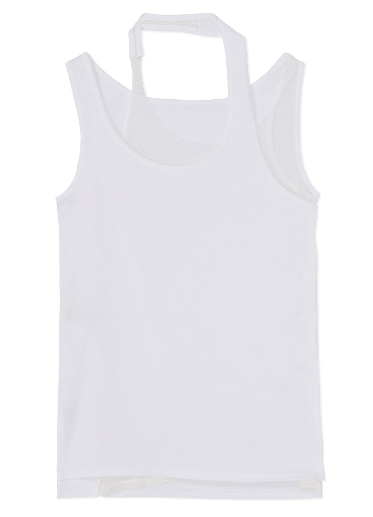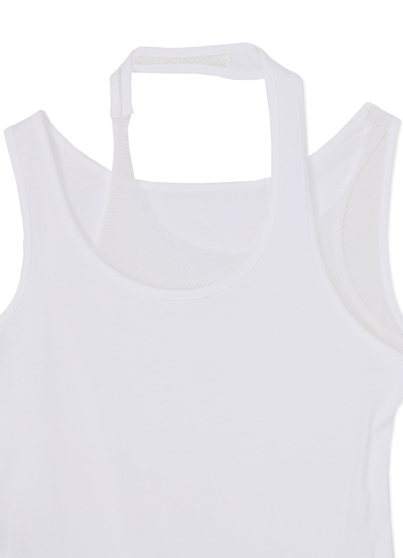 A standard double-layer tank top design, featuring plain stitch cotton and honeycomb structure cotton mesh. This creatively layered top adds a distinctive touch to your outfit without sacrificing simplicity, offering unique versatility for your wardrobe.