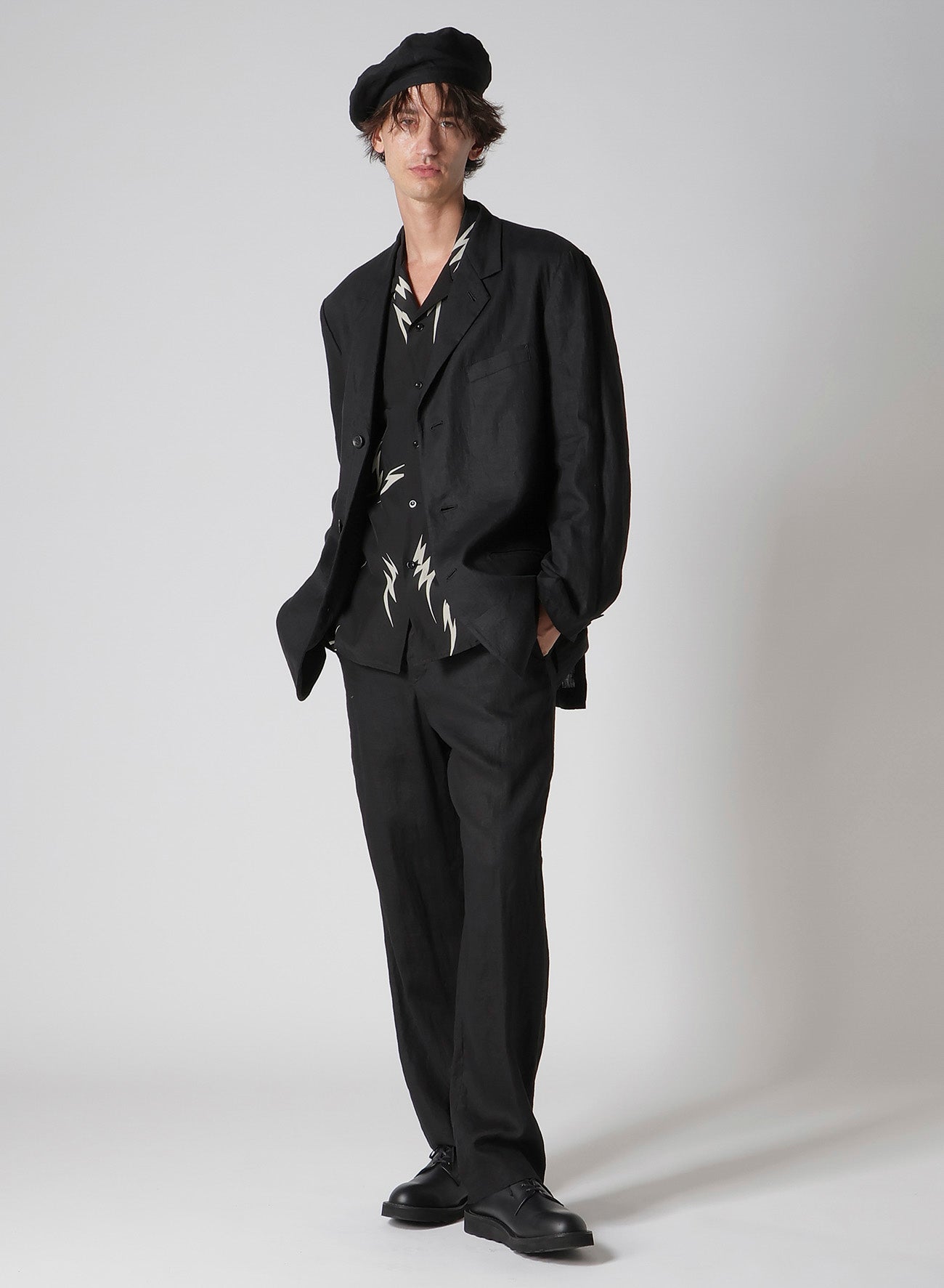 "In collaboration with MASSES, Y's for men presents a beret using specially processed linen that offers a unique texture and look. This item pairs well with matching outfits made from the same material.