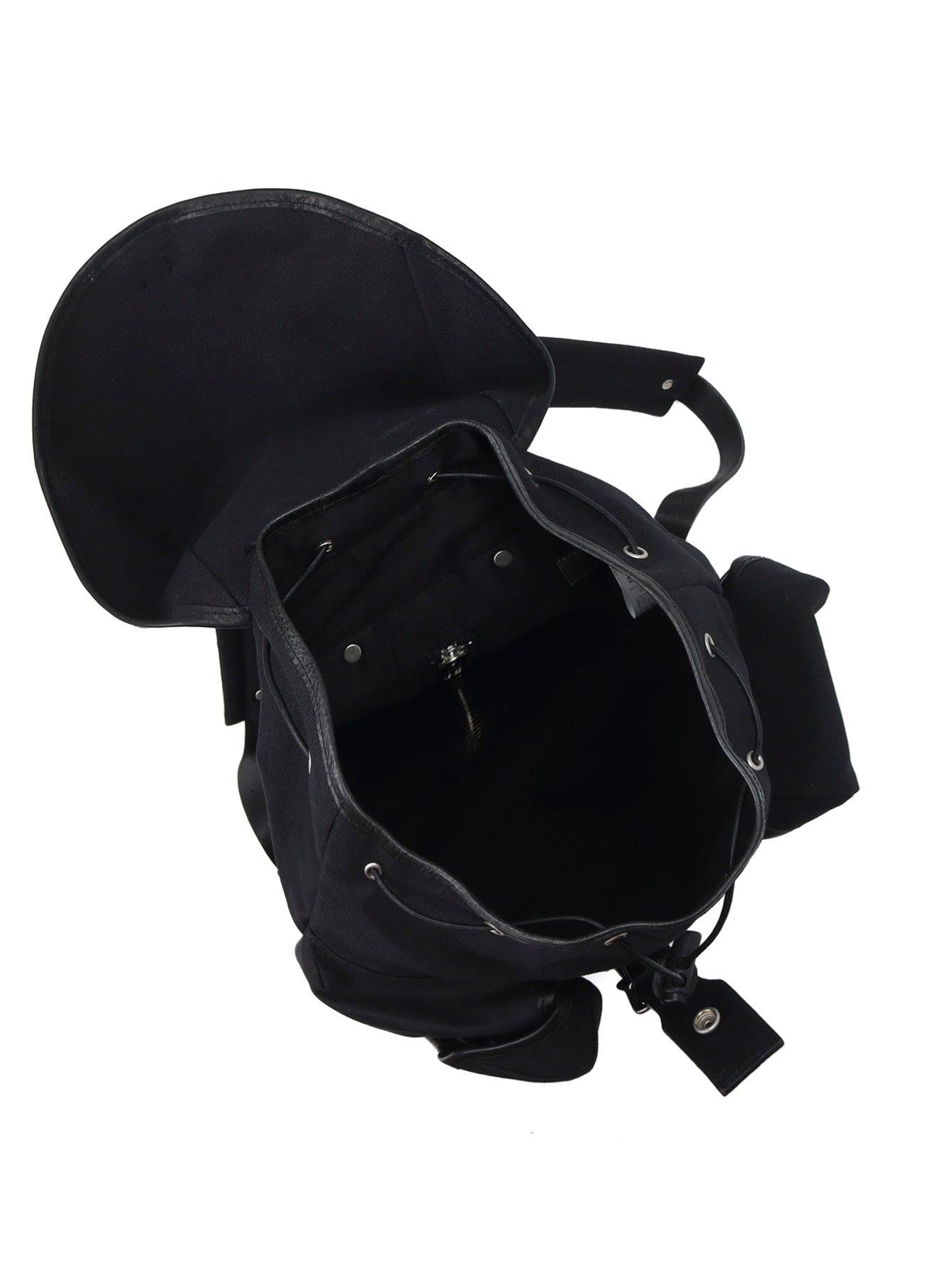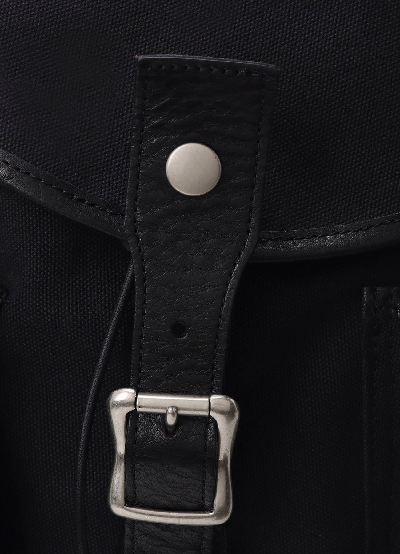 This military-inspired bon sac combines durable cotton canvas with leather accents, exuding a rugged military feel. It features a back zipper for easy access without opening the top flap. Note that the material may bleed due to friction or water exposure.