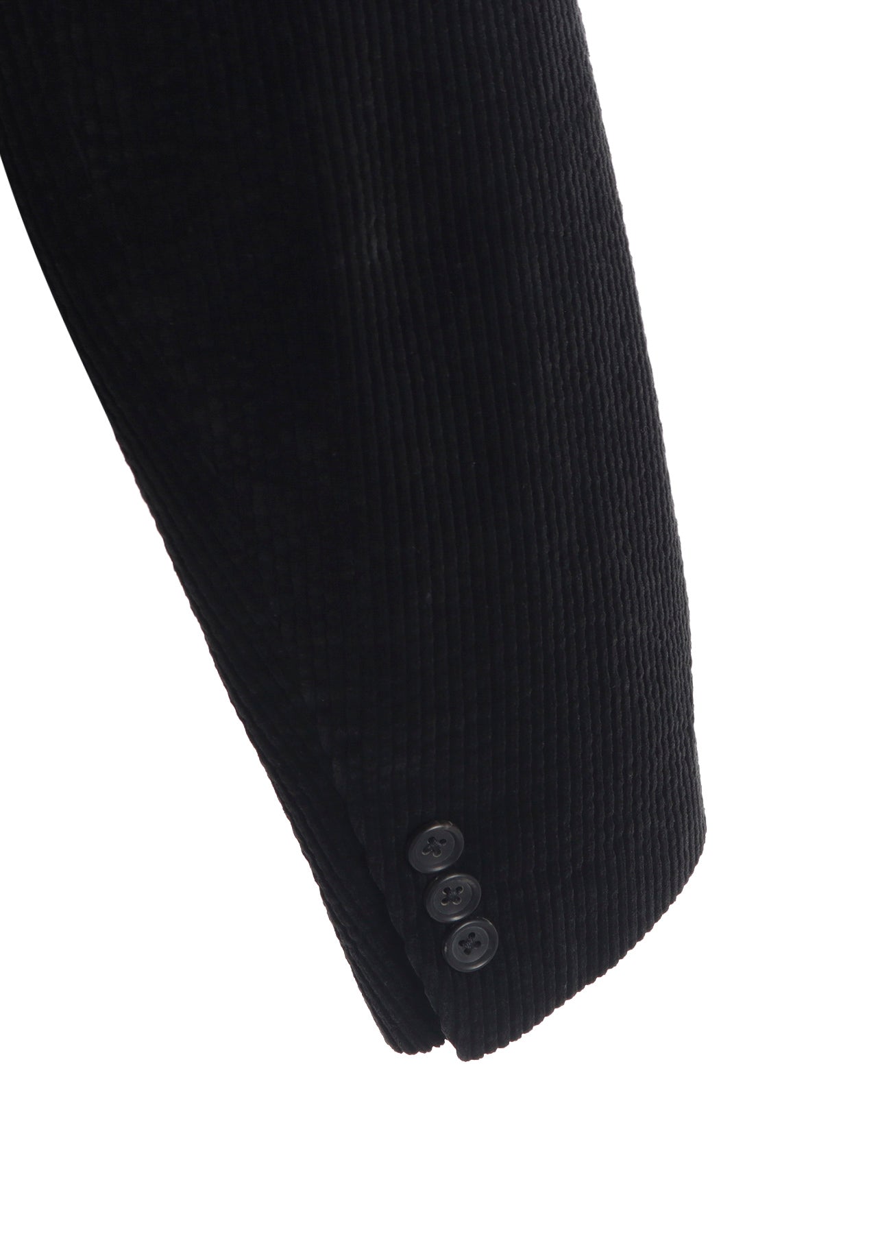 A 3-button corduroy jacket made from 7w medium ridged fabric. Its unique design features a double-layered front on the left side for added dimension. With tumbler processing, the fabric results in a plush finish, creating a warm appearance.