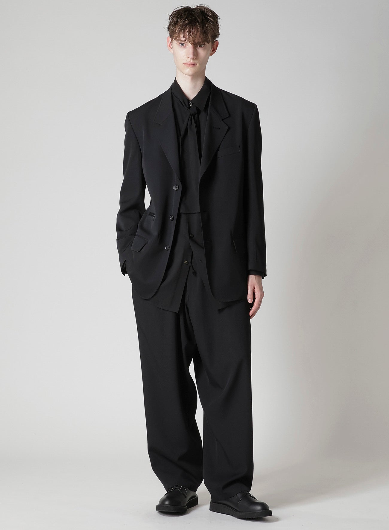 - Uses Yohji Yamamoto's signature wool gabardine with a natural texture.