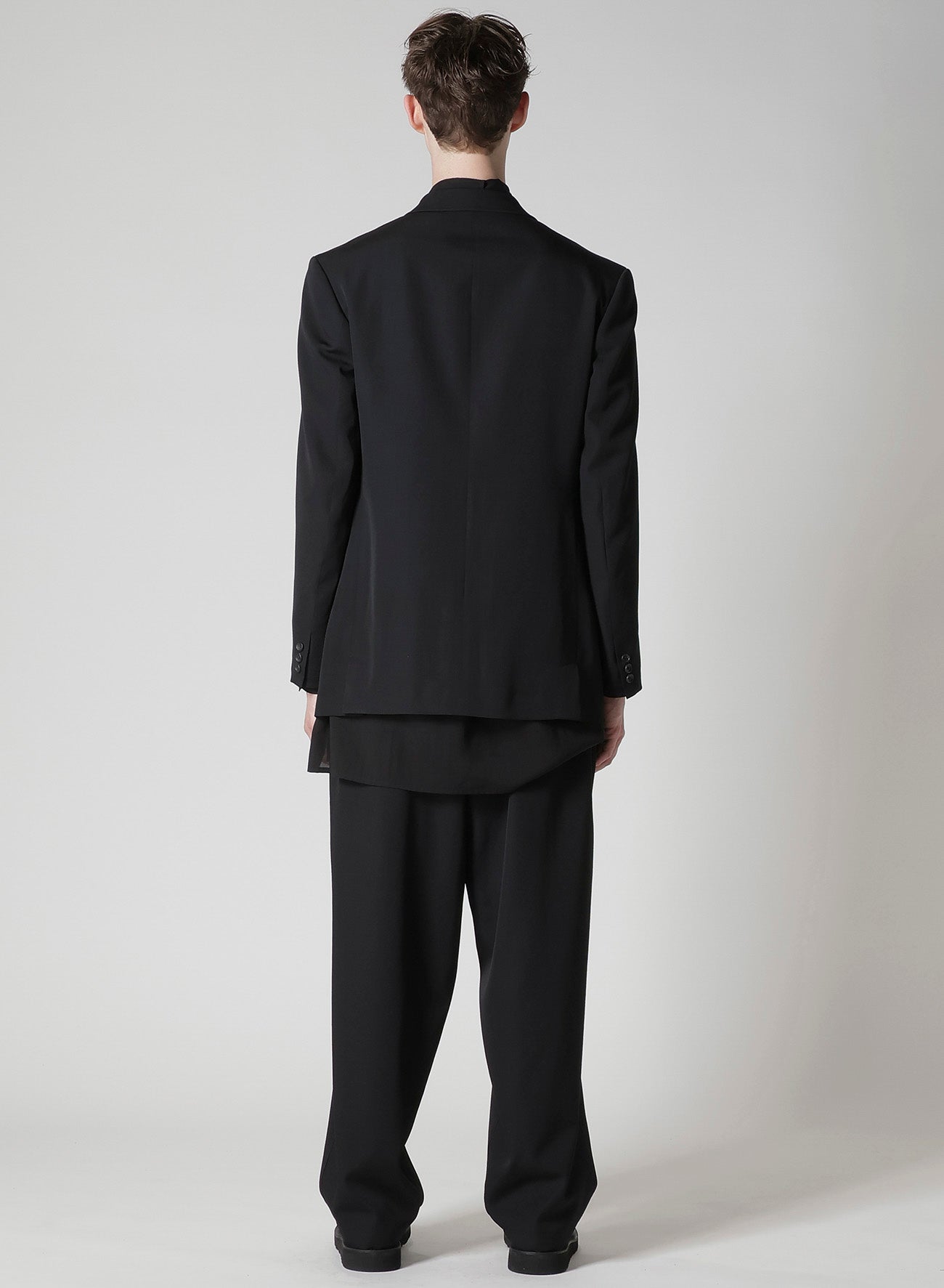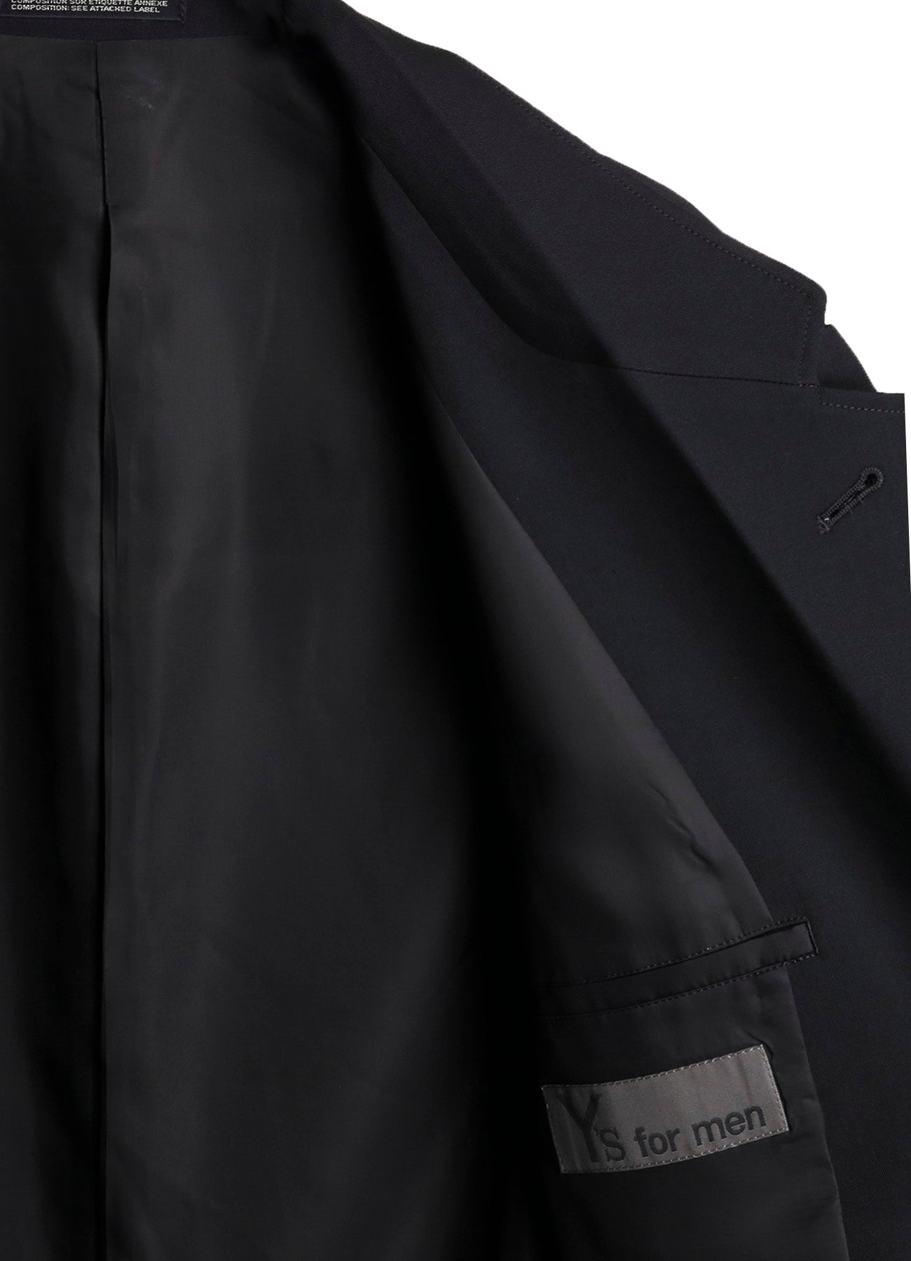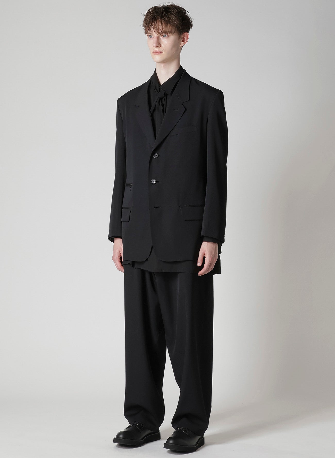 This wool gabardine three-button jacket uses a signature material from Yohji Yamamoto, which is lightly wrinkled during finishing to enhance the wool's natural texture. The classic design suits business and occasion scenes, featuring subtle stitching and a zipper change pocket. Model images may differ from the actual product in fit and texture.