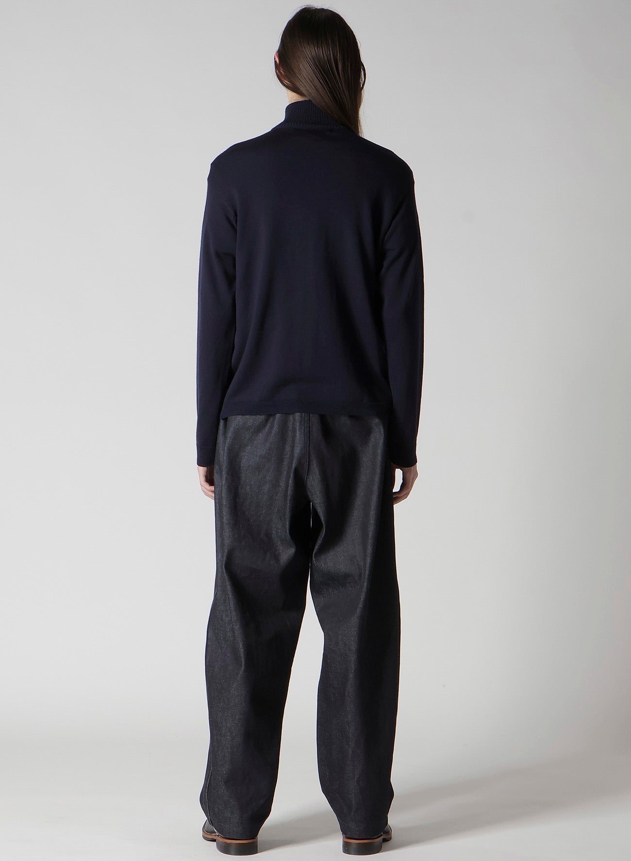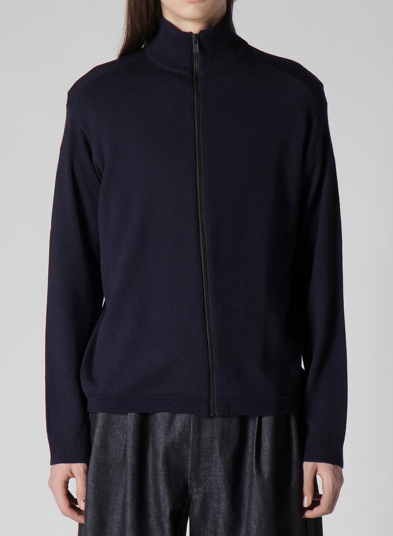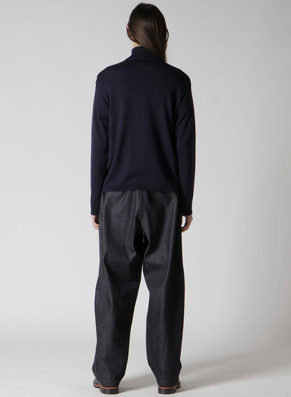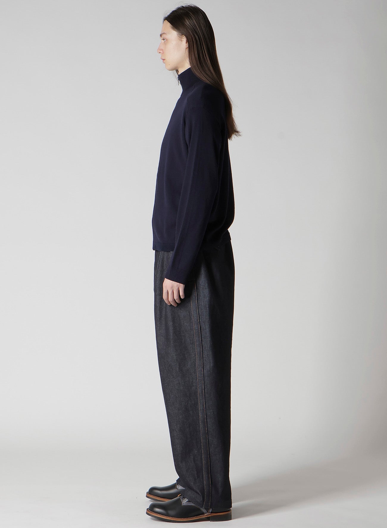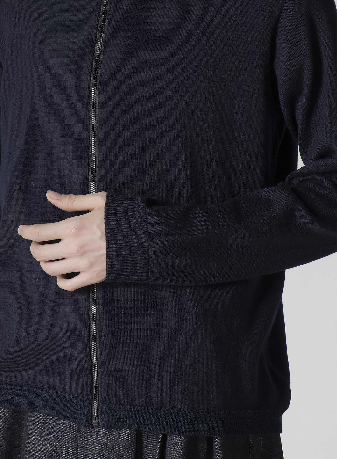 This 100% wool driver's knit sweater made with Australian grown soft and bouncy lamb wool is characterized by its shiny and smooth texture. With its minimal silhouette, it is versatile as both outer wear and inner wear. A valuable item for your wardrobe.