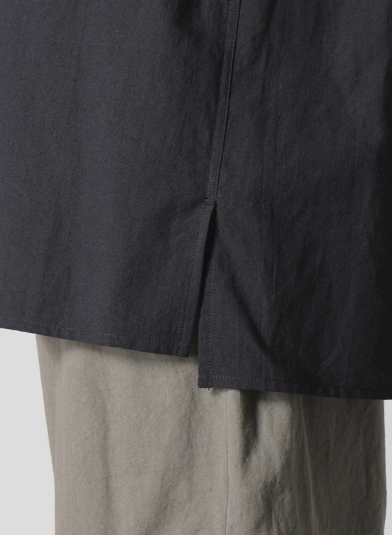 This shirt, featuring a combination of cotton and hemp broadcloth, includes a concealed zipper pocket as an accent. By applying a softening process, the fabric achieves a soft texture while retaining hemp's inherent benefits. The item is characterized by an oversized silhouette.