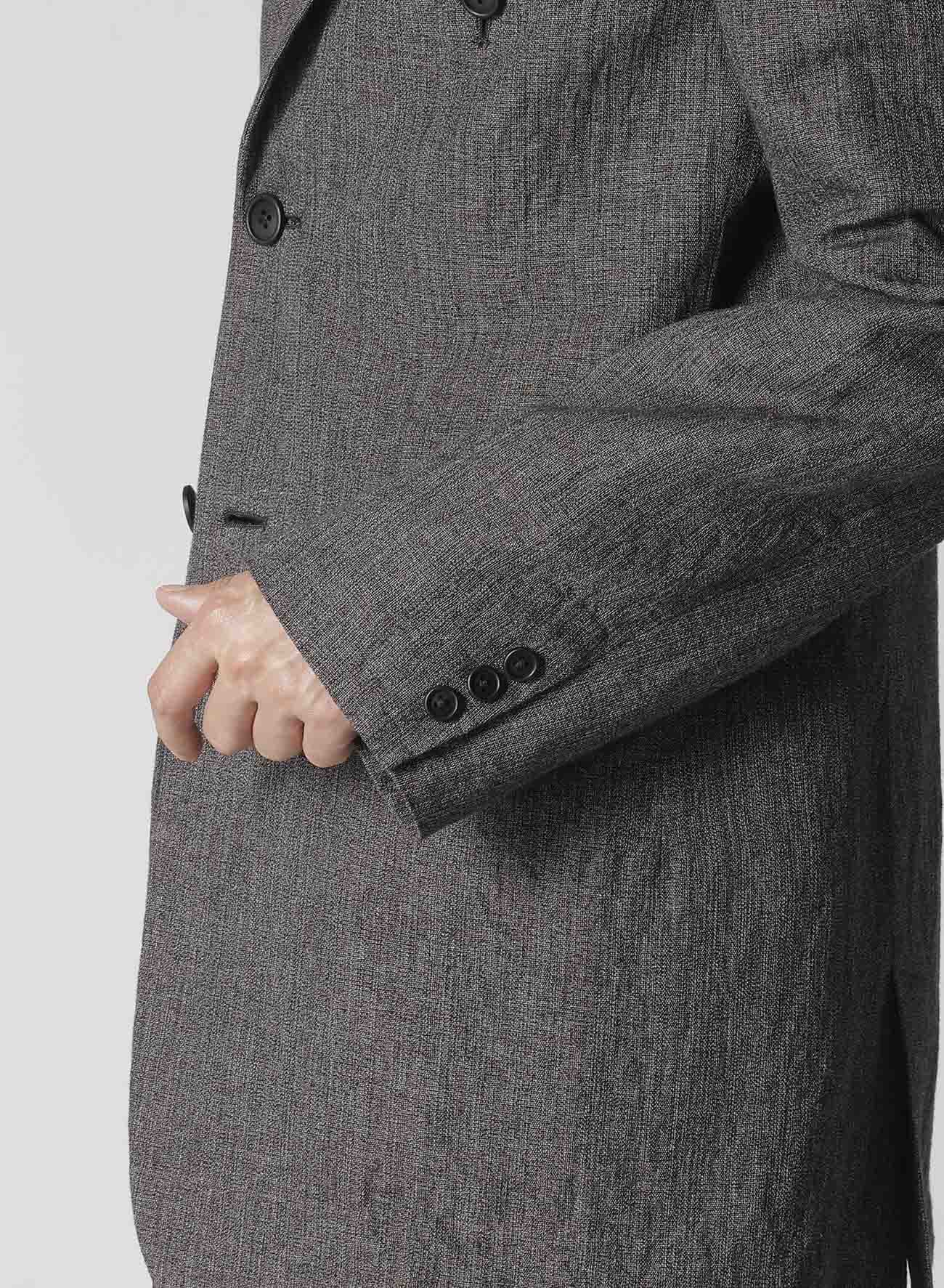 This jacket, made from Khadi fabric, showcases a unique blend of tactile warmth and design sophistication. Hand-spun threads create a visually textured surface with a soft feel, finished in a minimal silhouette. It features cleverly placed parallel combination pockets at the chest and waist for a simple yet stylish look.