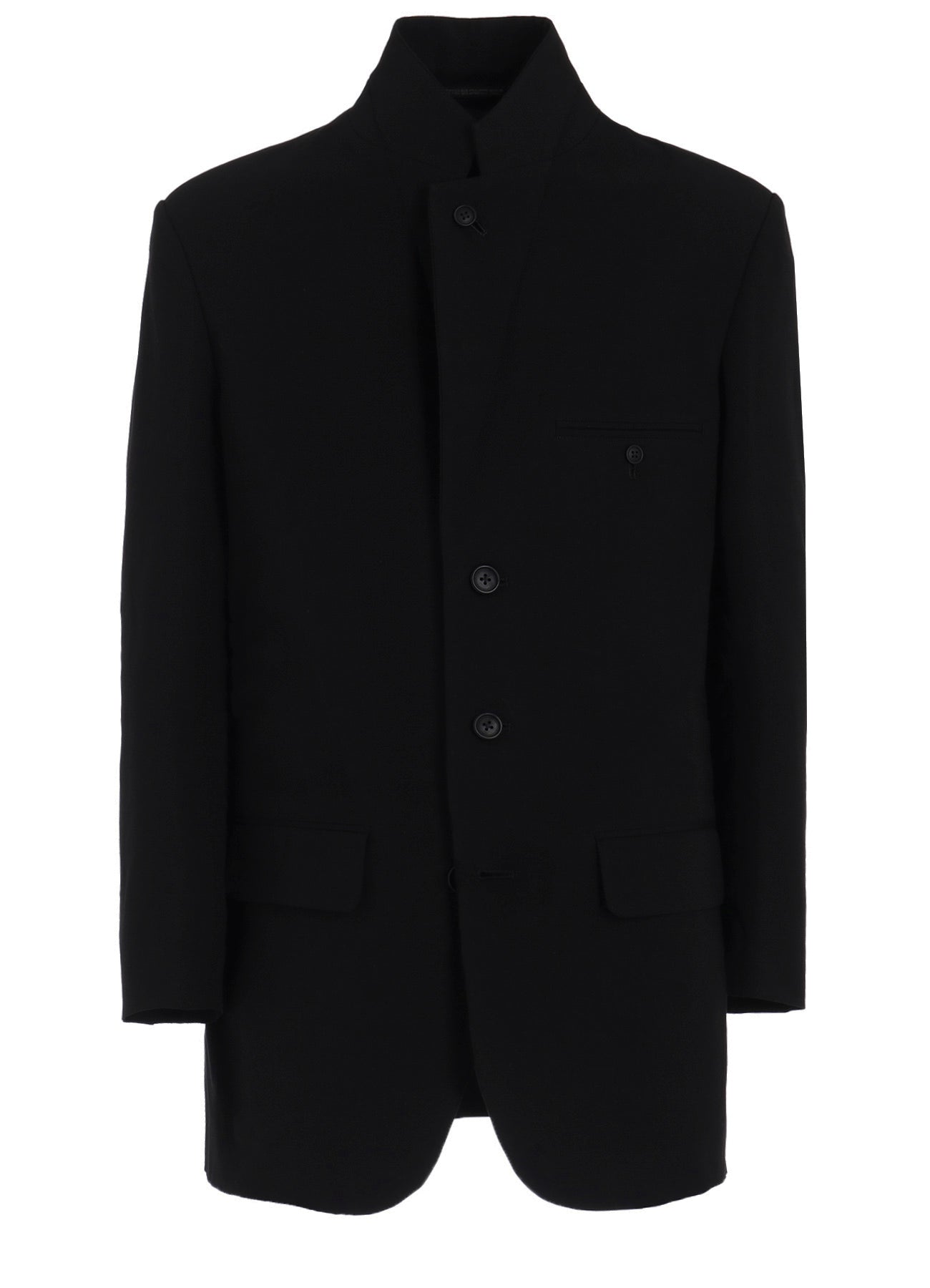This three-button jacket features a cotton-linen canvas fabric, with yarn-dyed cotton slub yarn for the warp and a cotton-linen blend for the weft. Soft-washed for a softer feel, it features a unique collar and detailed double piping pocket design. Perfect when paired with matching pants for a set.