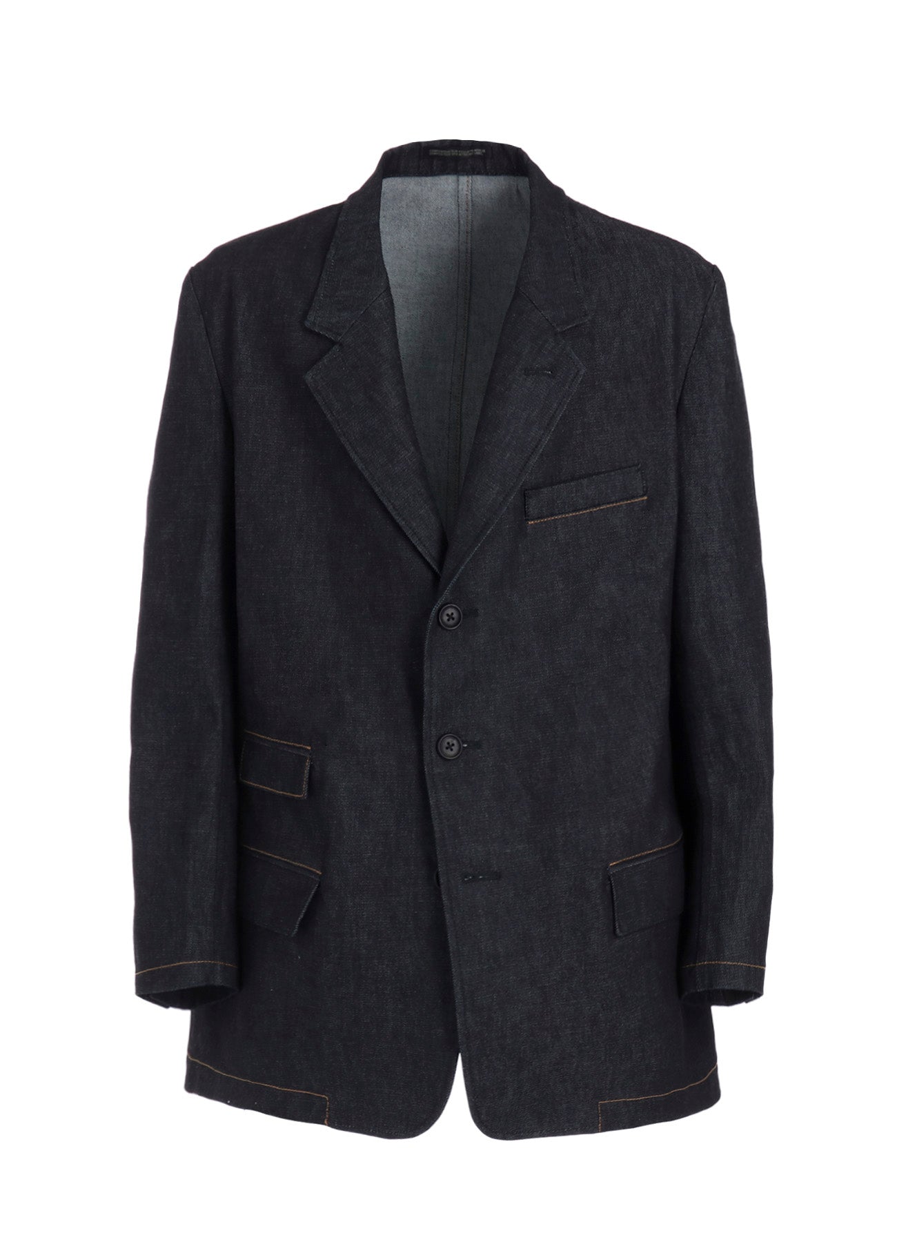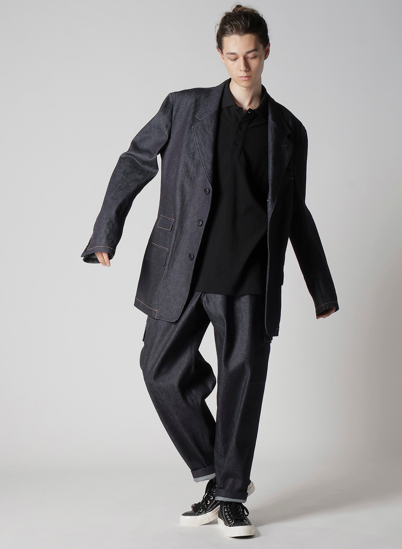 This 3-button jacket uses 13-ounce natural slub denim, characterized by its unique uneven texture. With wear, it develops distinct whiskers and fades, providing aged and evolved aesthetics over time. Note that sample images were used for the model and may differ from the actual product; check size details for accuracy.