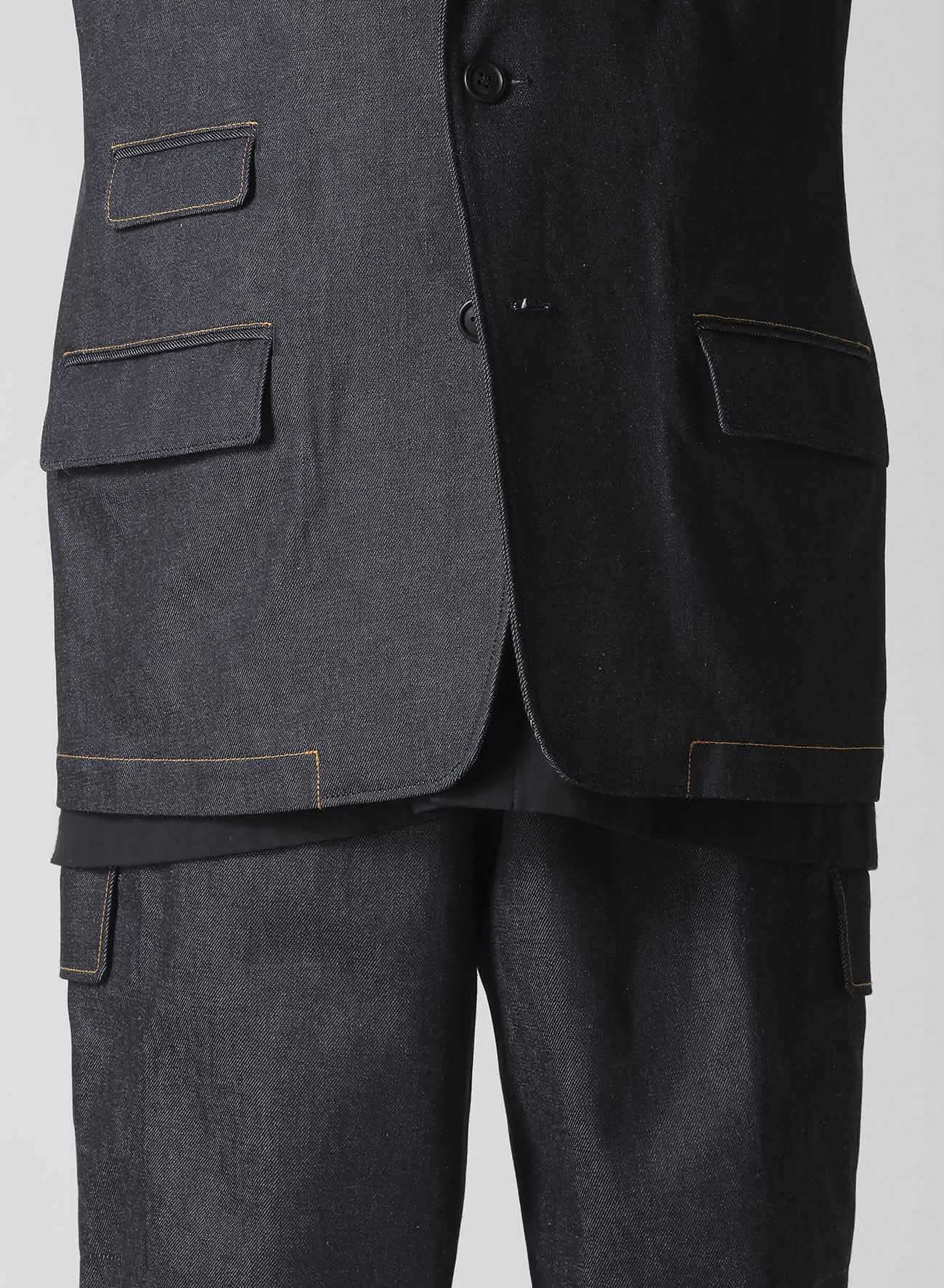 13oz UNEVEN YARN DENIM JACKET WITH 3-BUTTONS COLOR COMBI