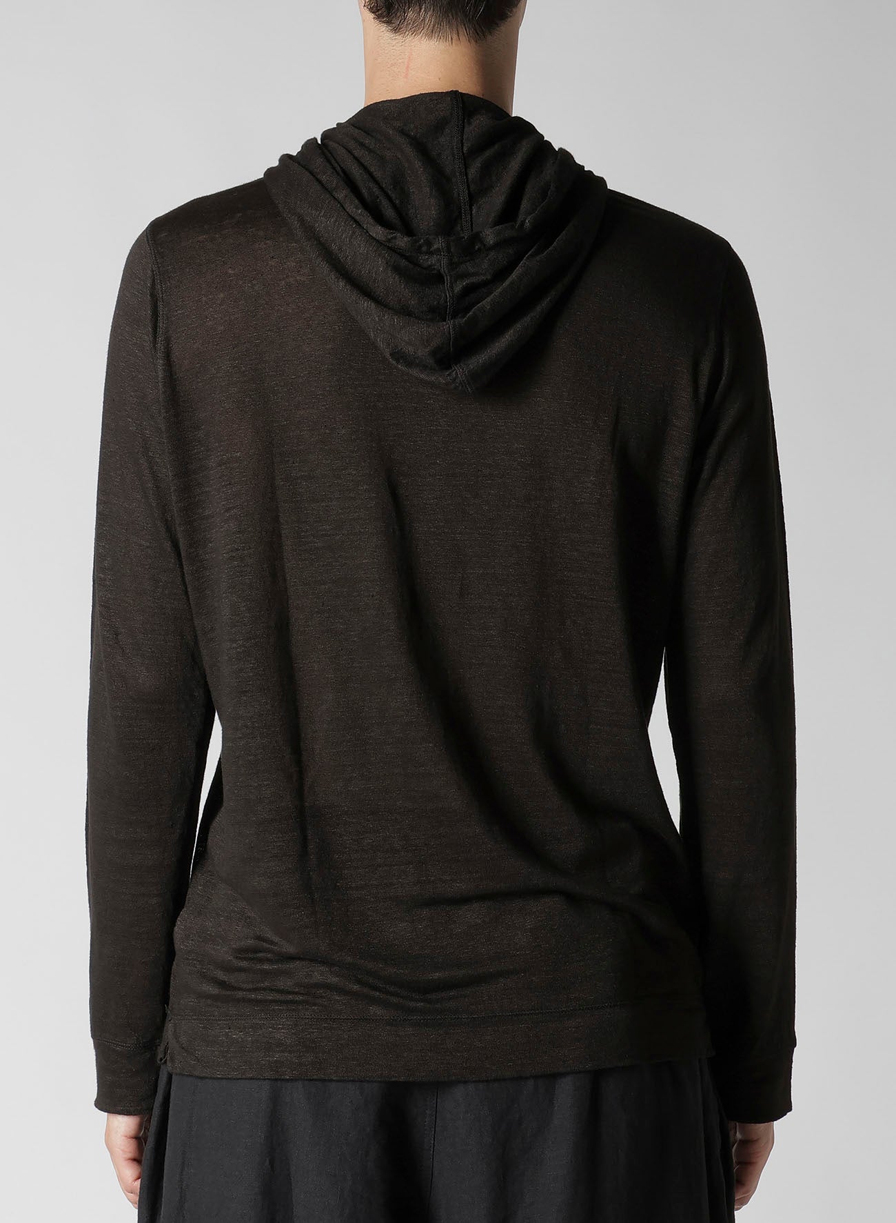 120% LINO and Y's for men capsule collection features a Henley neck hoodie with 120% LINO's exceptional linen. This hoodie combines lightweight airiness and luxurious texture, ensuring comfort with excellent breathability and moisture absorption, suitable for any season.
