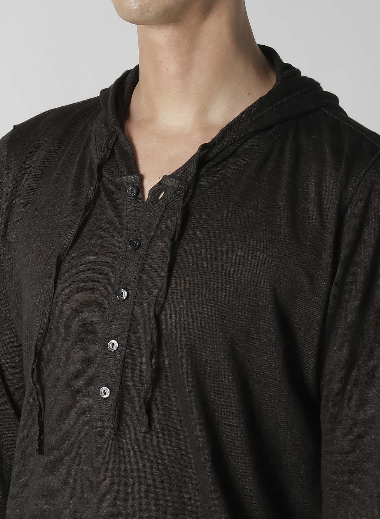 Y's for men x 120% LINO HENLEY HOODIE LONG SLEEVE T