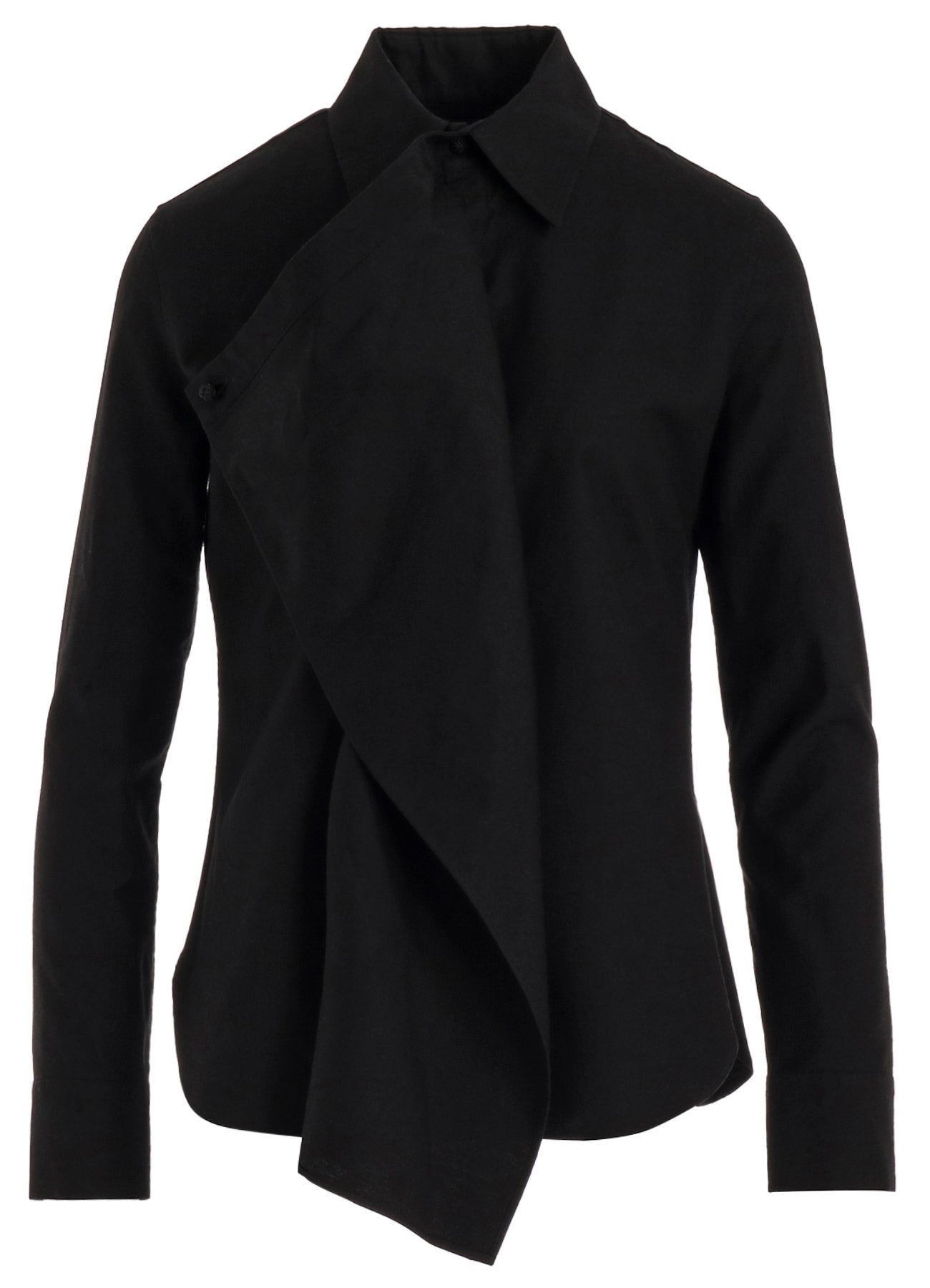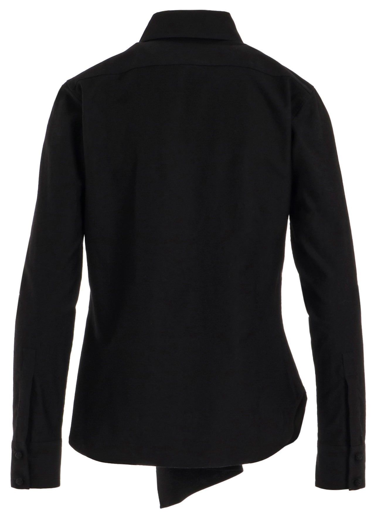This cotton twill drape blouse offers versatility with its front button design, allowing you to adjust it to various styles. The material drapes elegantly, providing a sophisticated look suitable for multiple outfit combinations. Easy to incorporate into any wardrobe, this blouse offers both comfort and style.