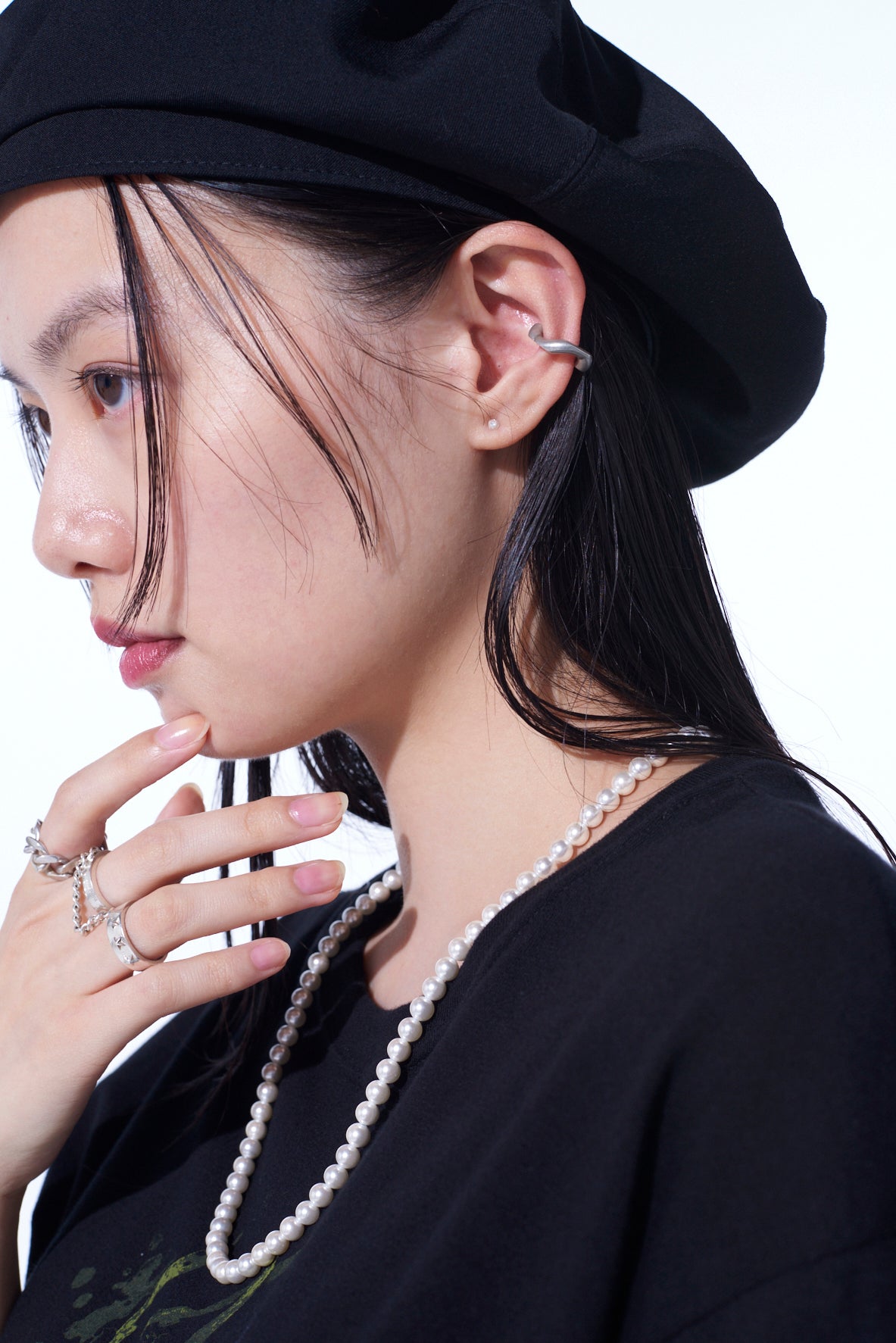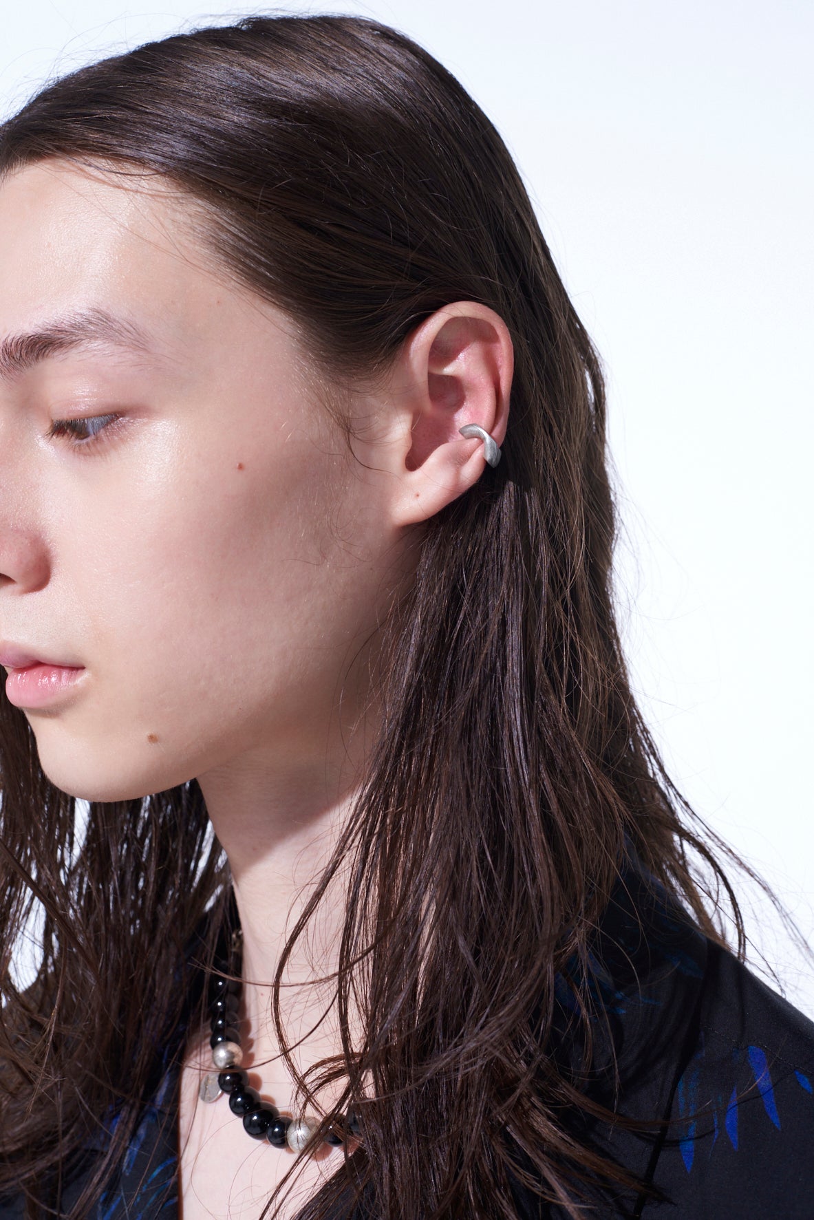 An ear cuff inspired by the "Kihei" chain link motif, featuring a unique cut for a sharp appearance and random gleam. Despite simple details, it boasts significant presence on the ear. Each side features the brand logo. Perfect for a modern, impactful look with two consecutive pieces.