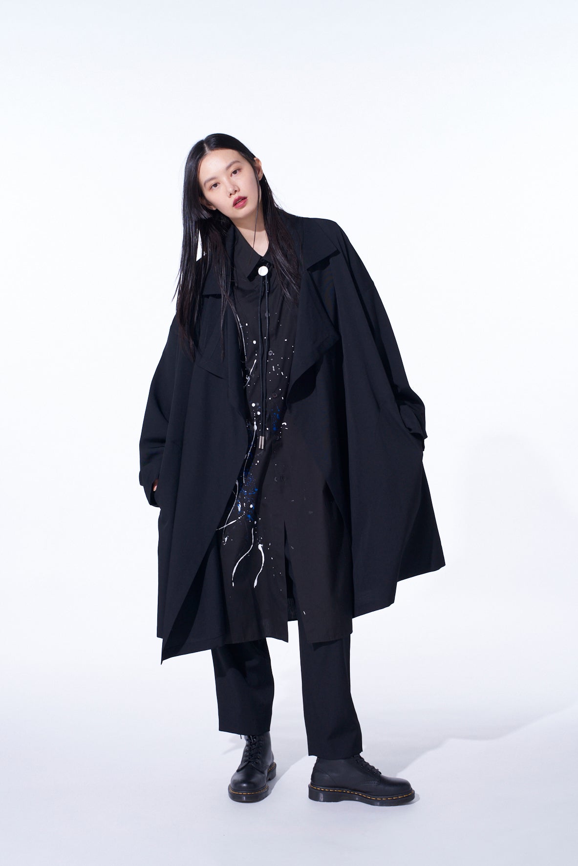WASHER WOOL GABARDINE FLAME DOUBLE DRAPE COAT