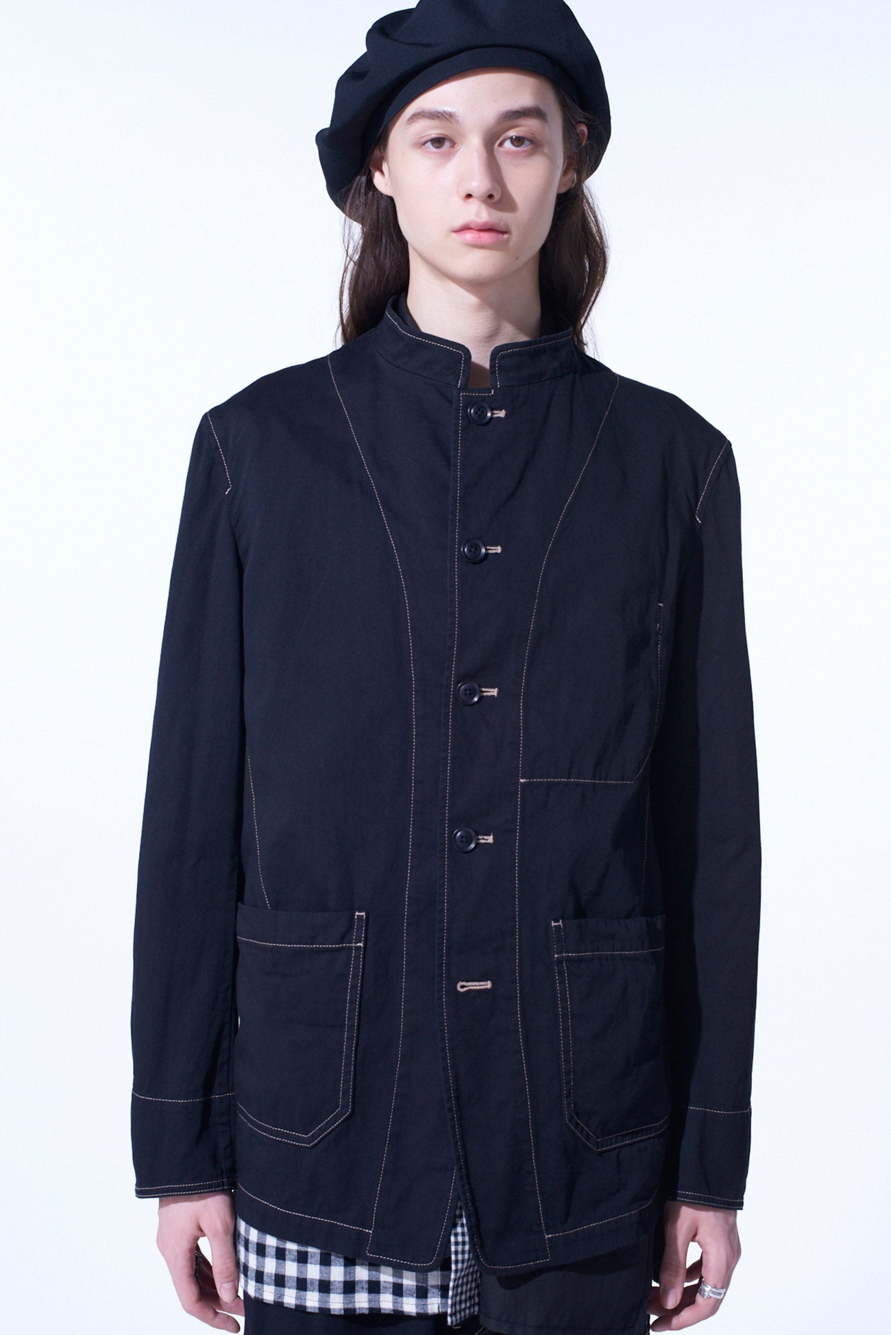 COTTON TWILL GARMENT DYED STAND COLLAR JACKET
