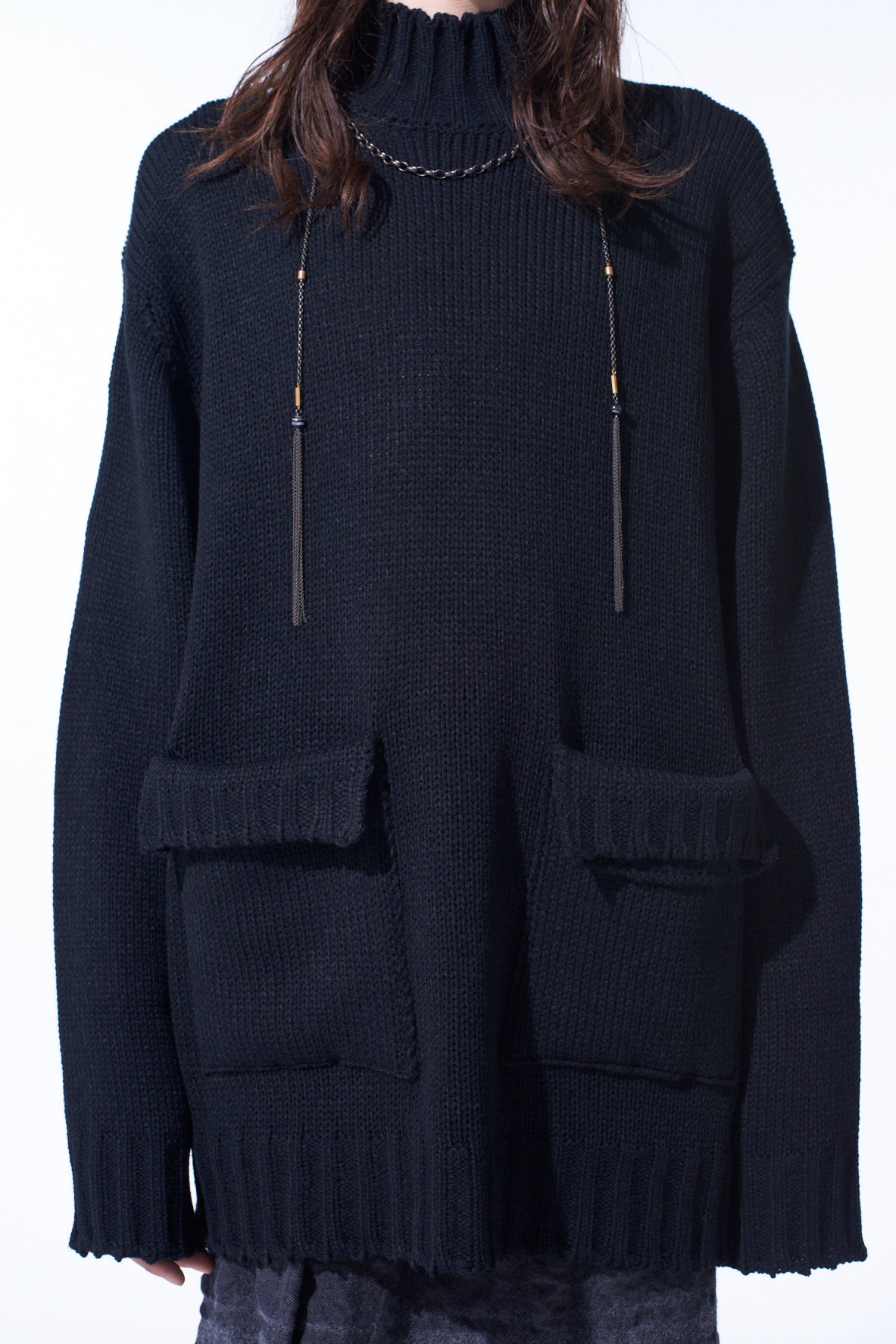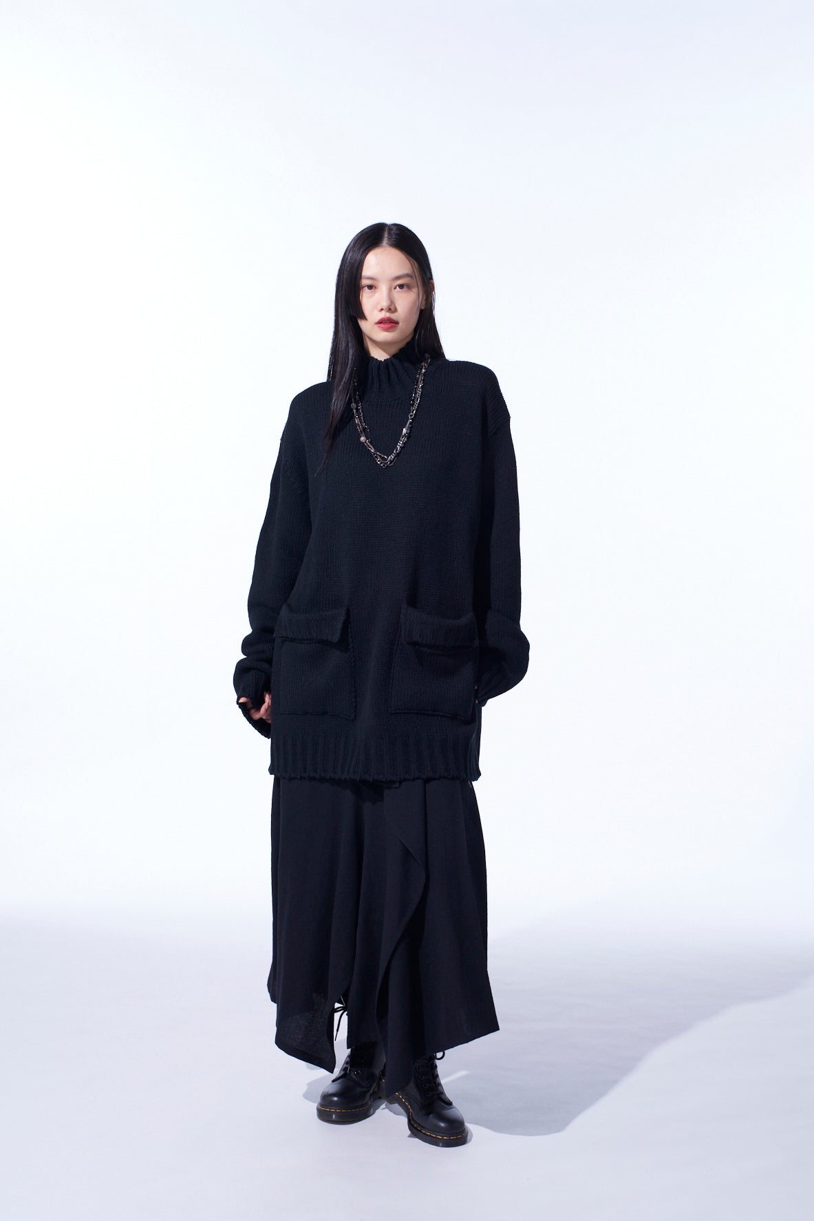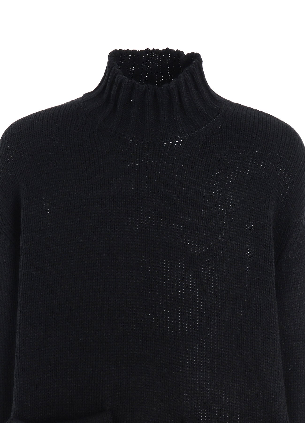 BULKY WOOL BIG POCKET HIGH NECK KNIT