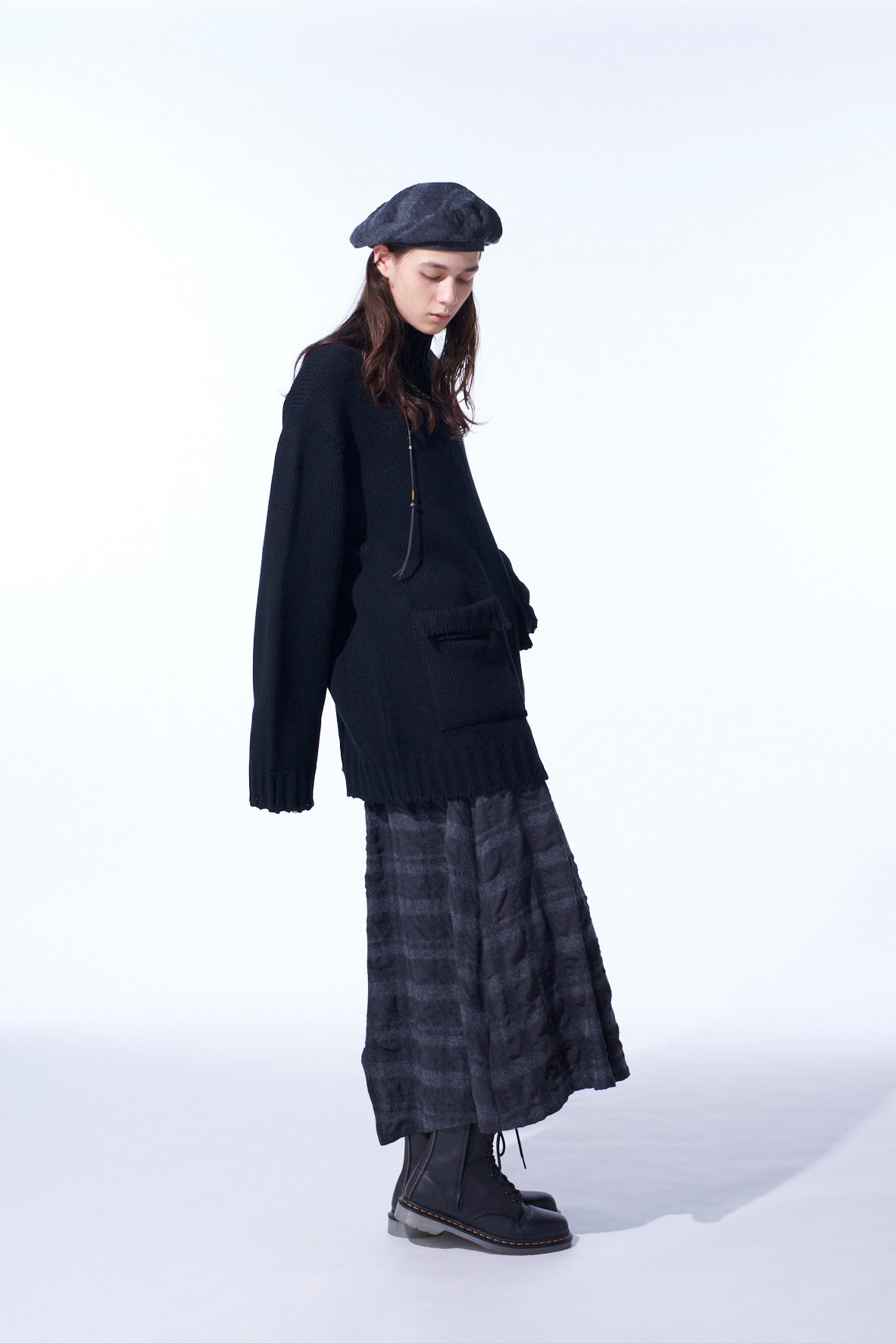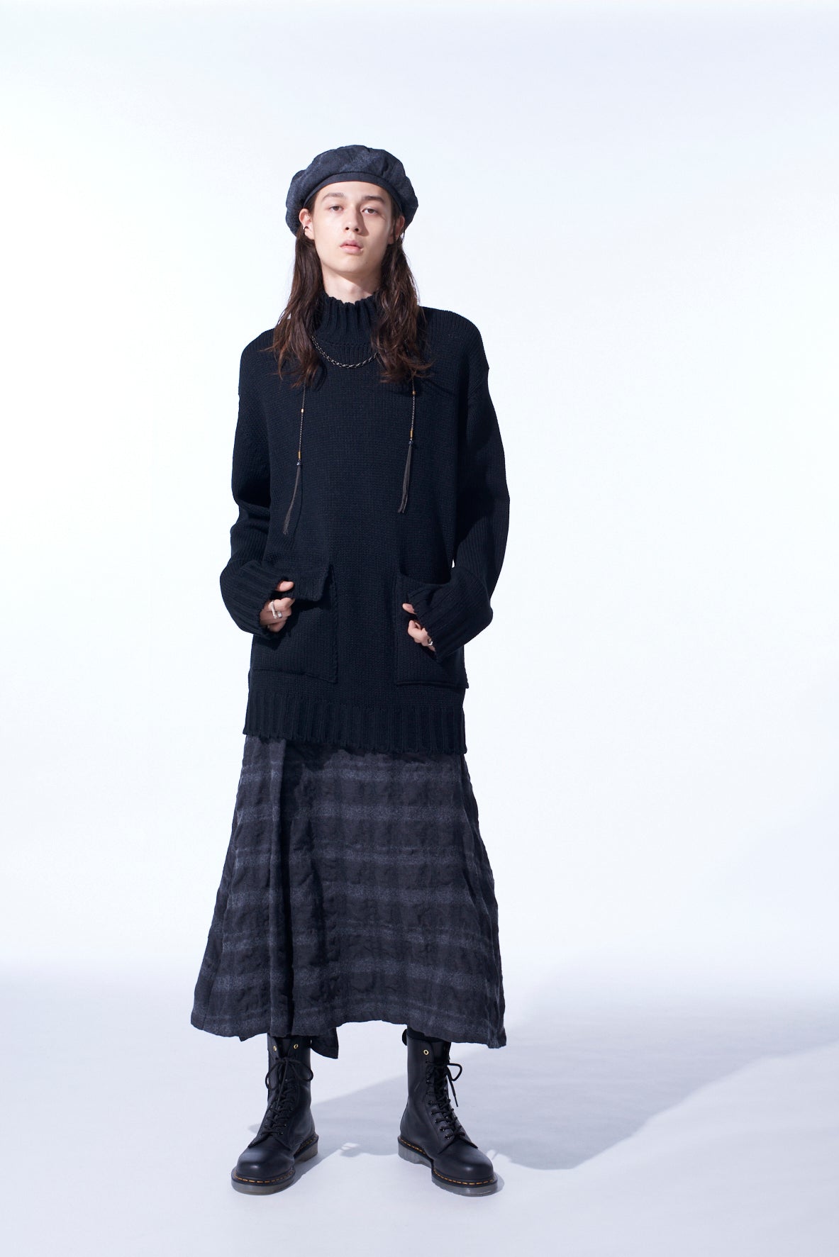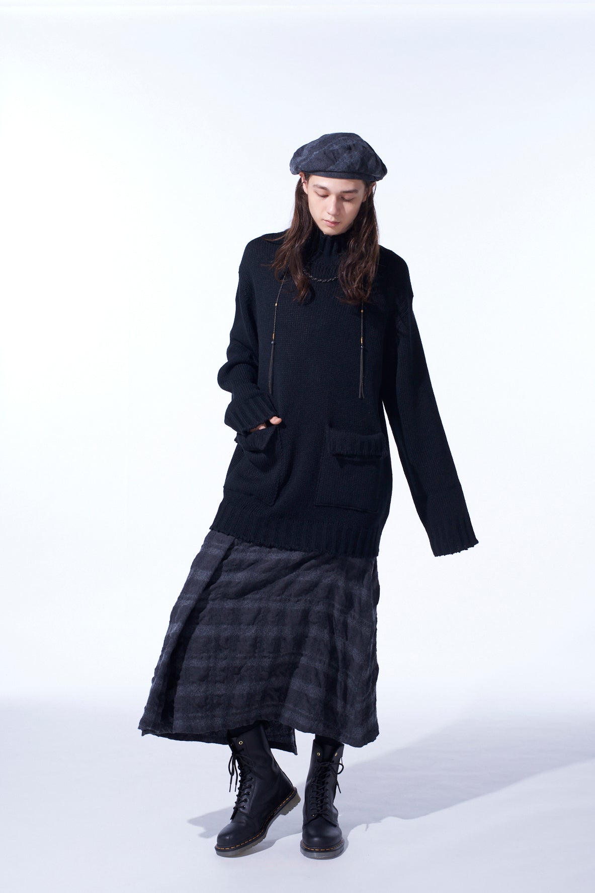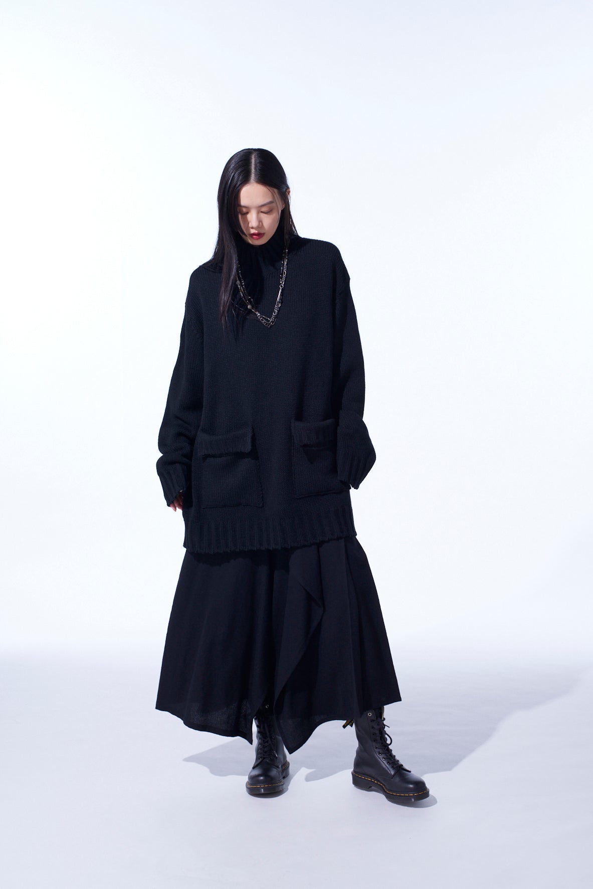 BULKY WOOL BIG POCKET HIGH NECK KNIT