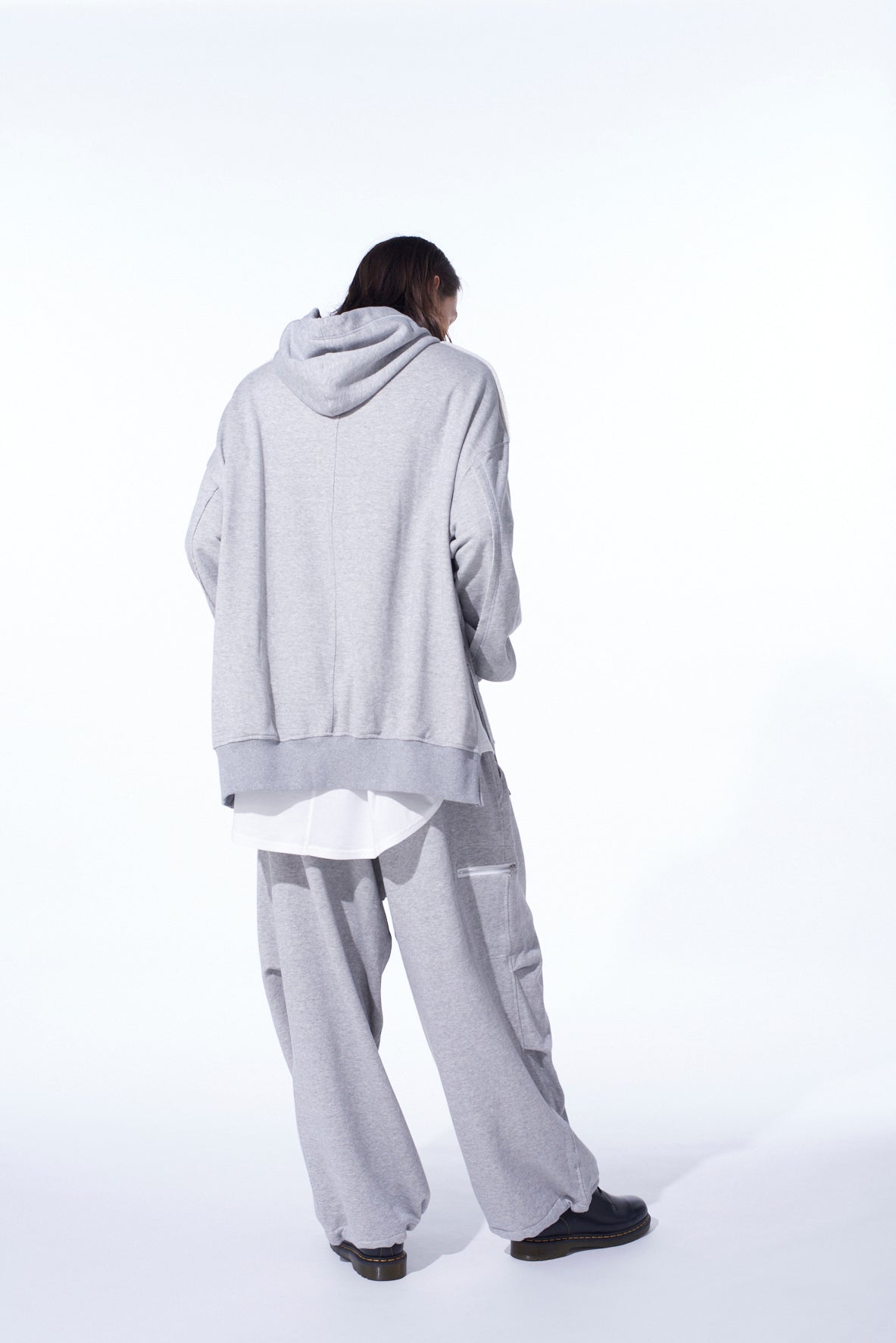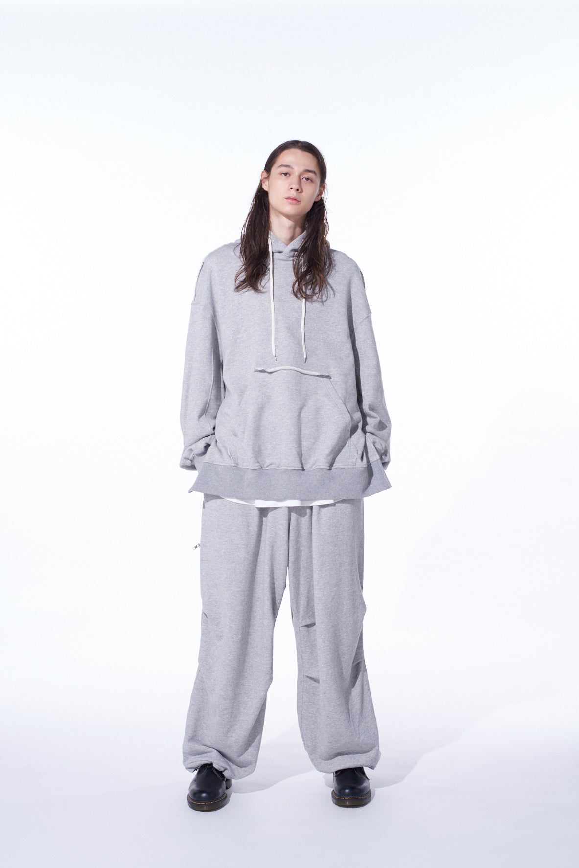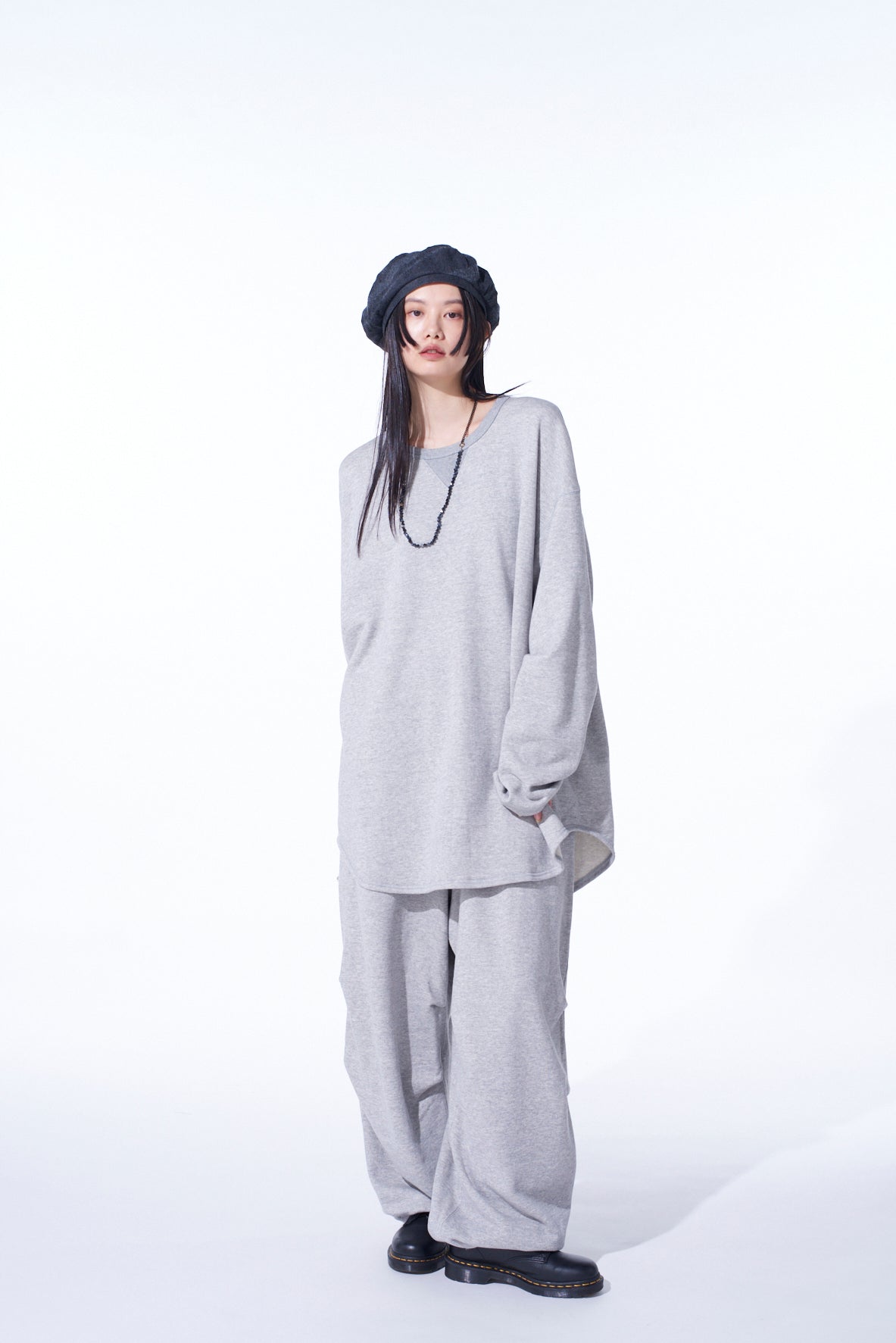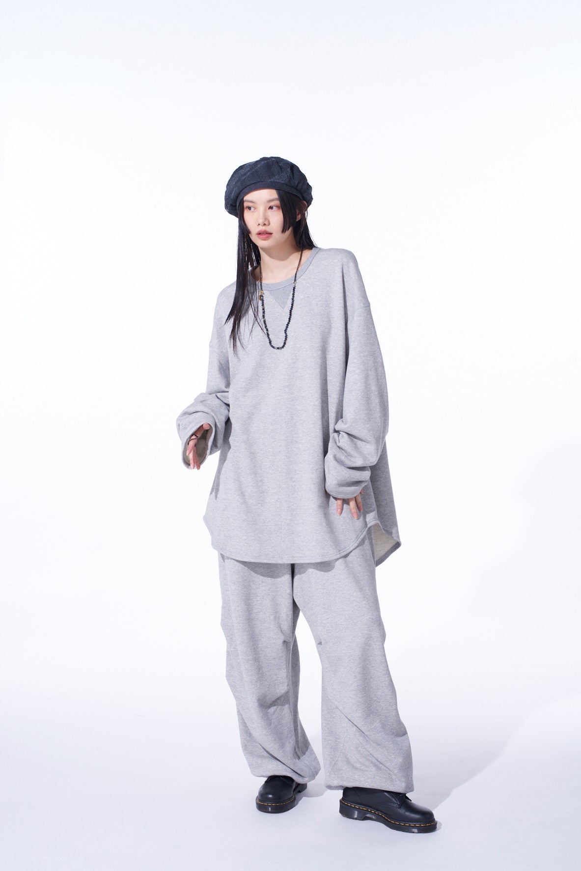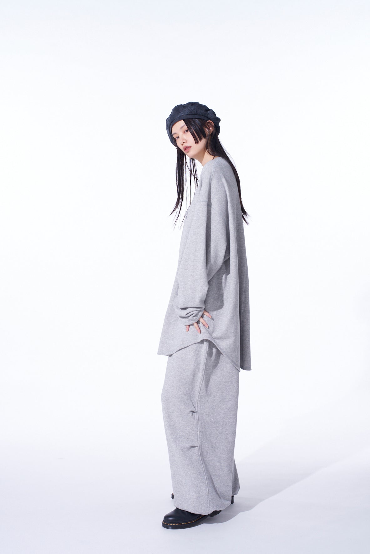 FRENCH TERRY KNEE TUCK WIDE PANTS