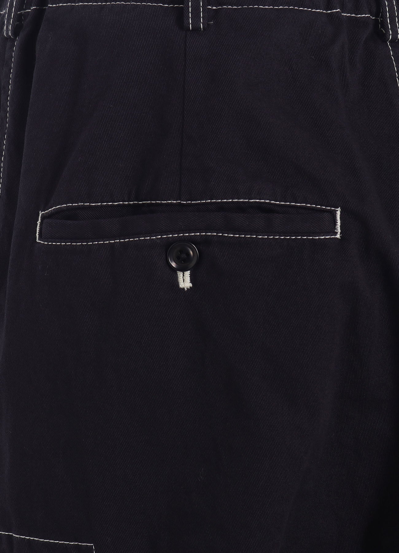 These cargo pants boast a balloon silhouette with a tapering toward the hem for a clean look. Utilizing thick cotton twill, the garment-dyed finish adds a relaxed feel. Spacious around the waist and thighs for flexibility, accented with color stitching, and adjustable drawstring cuffs for versatile styling.