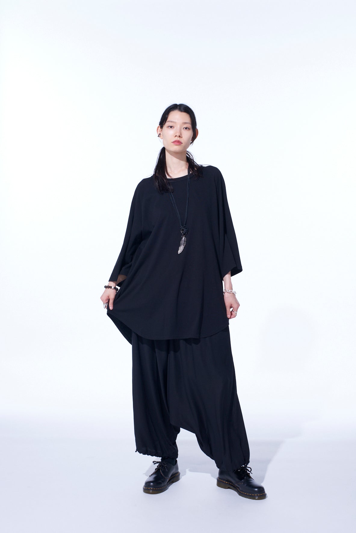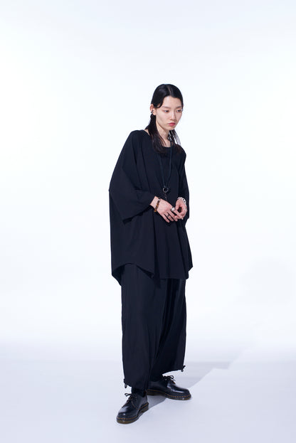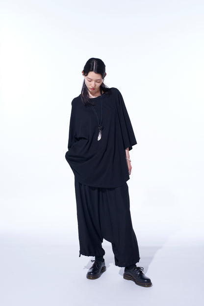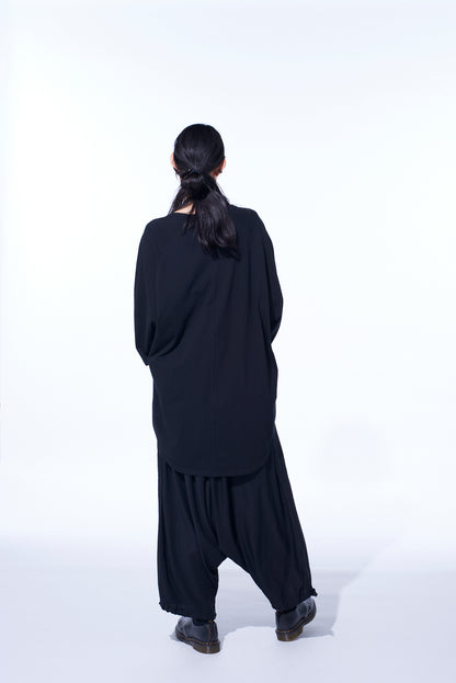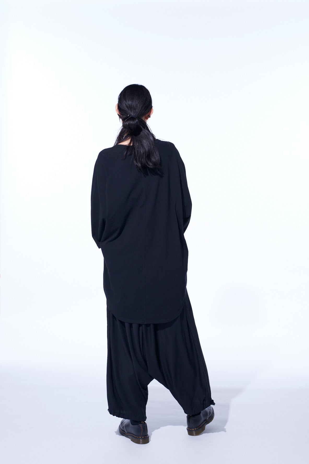 Enjoy the elegant silhouette of this raglan sleeve top, designed with minimal detail. A unique combination of same-color stitching from collarbone to underarm, and a center-back seam, creates an unparalleled oversized look. - Round hem allows easy access to pants pockets and enhances accessories - Perfect sleeve length to accentuate wrist accessories - Uses soft plain stitch fabric, ideal for daily wear with stability and functionality <|vq_2632|>