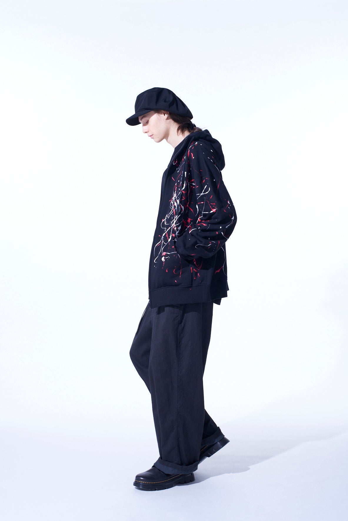 FRENCH TERRY SPLASH PAINTED ZIP-UP HOODIE RED