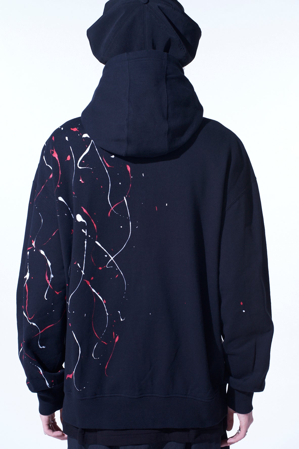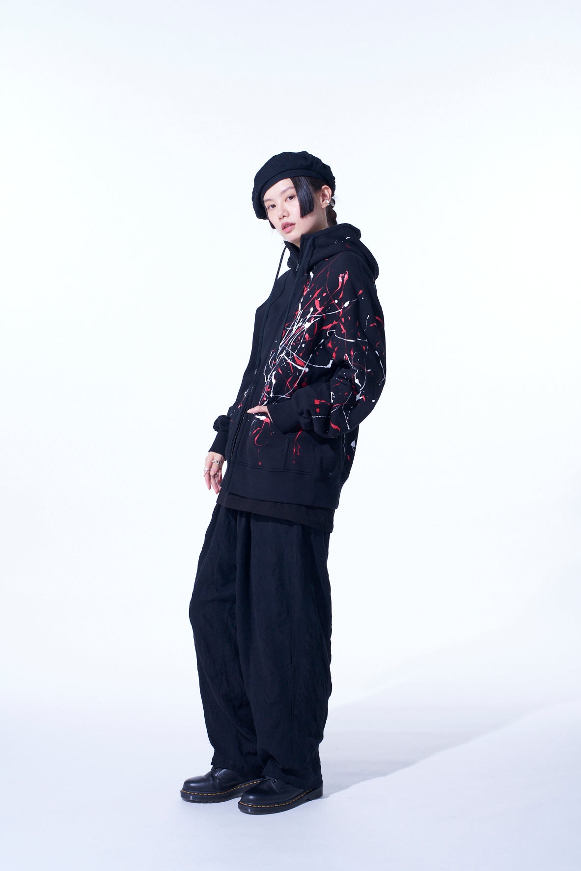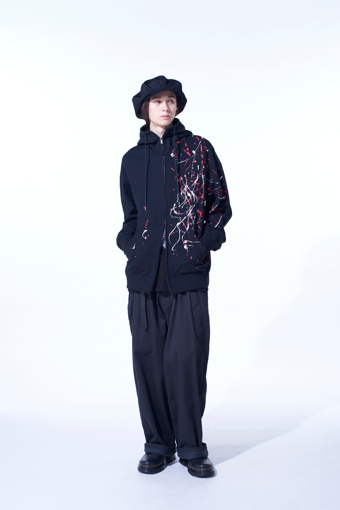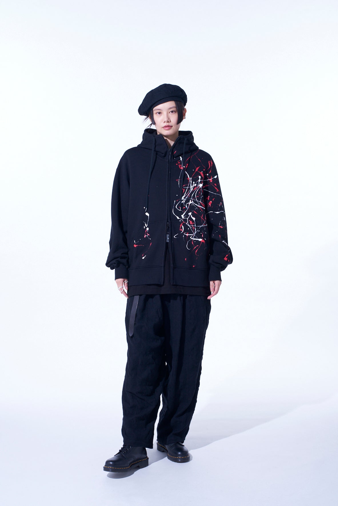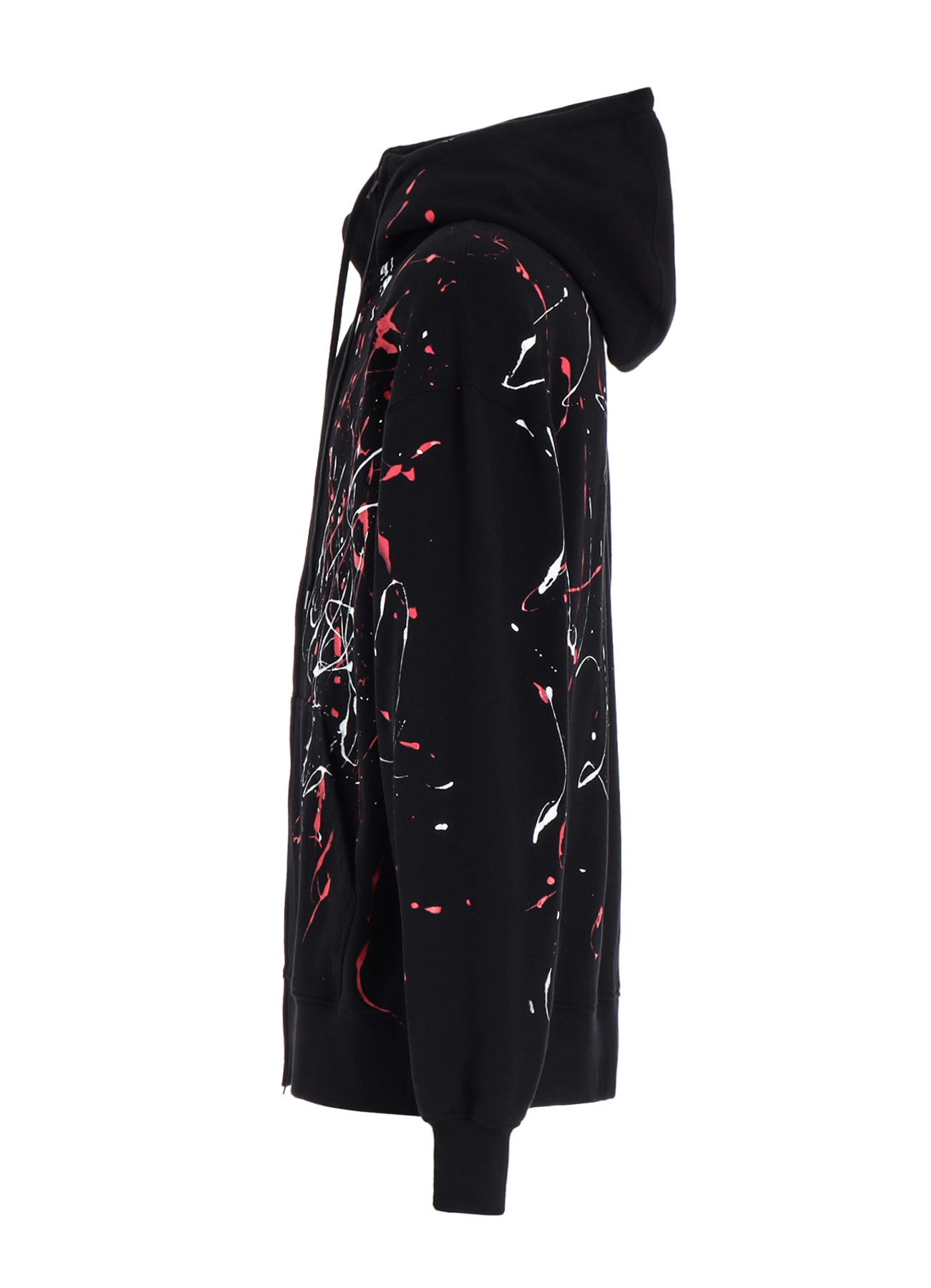 FRENCH TERRY SPLASH PAINTED ZIP-UP HOODIE RED