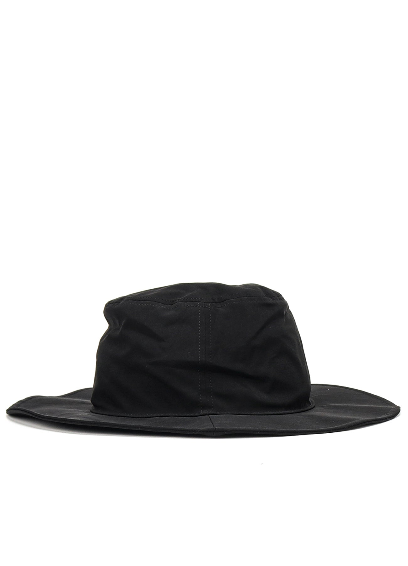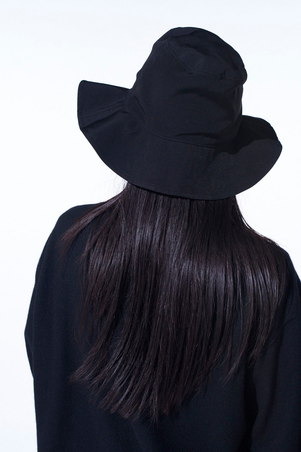 This long-brim hat features a flat top crown and a perfectly balanced crown height. Made from thin Decyne, it offers flexible styling possibilities. The fabric provides benefits like flexibility and non-bulky softness, adapting a dress material to hats, and establishing a new genre in fashion.