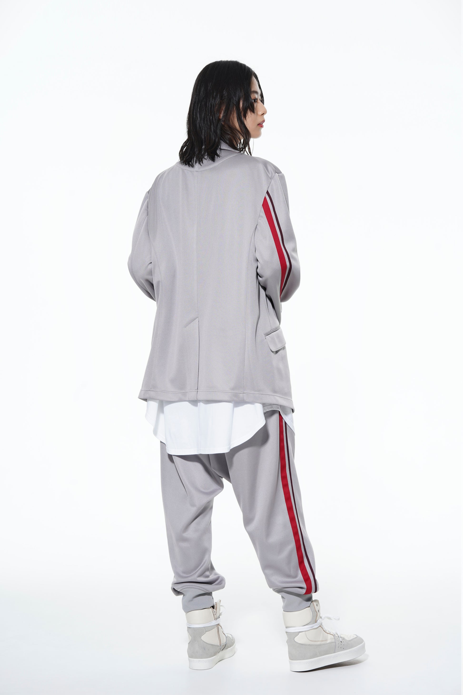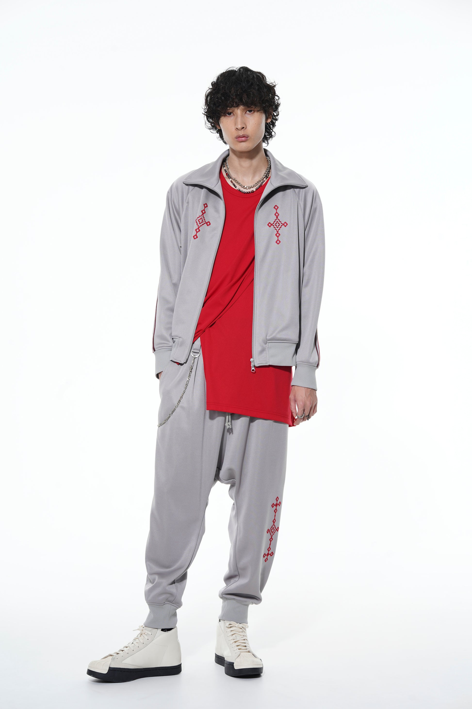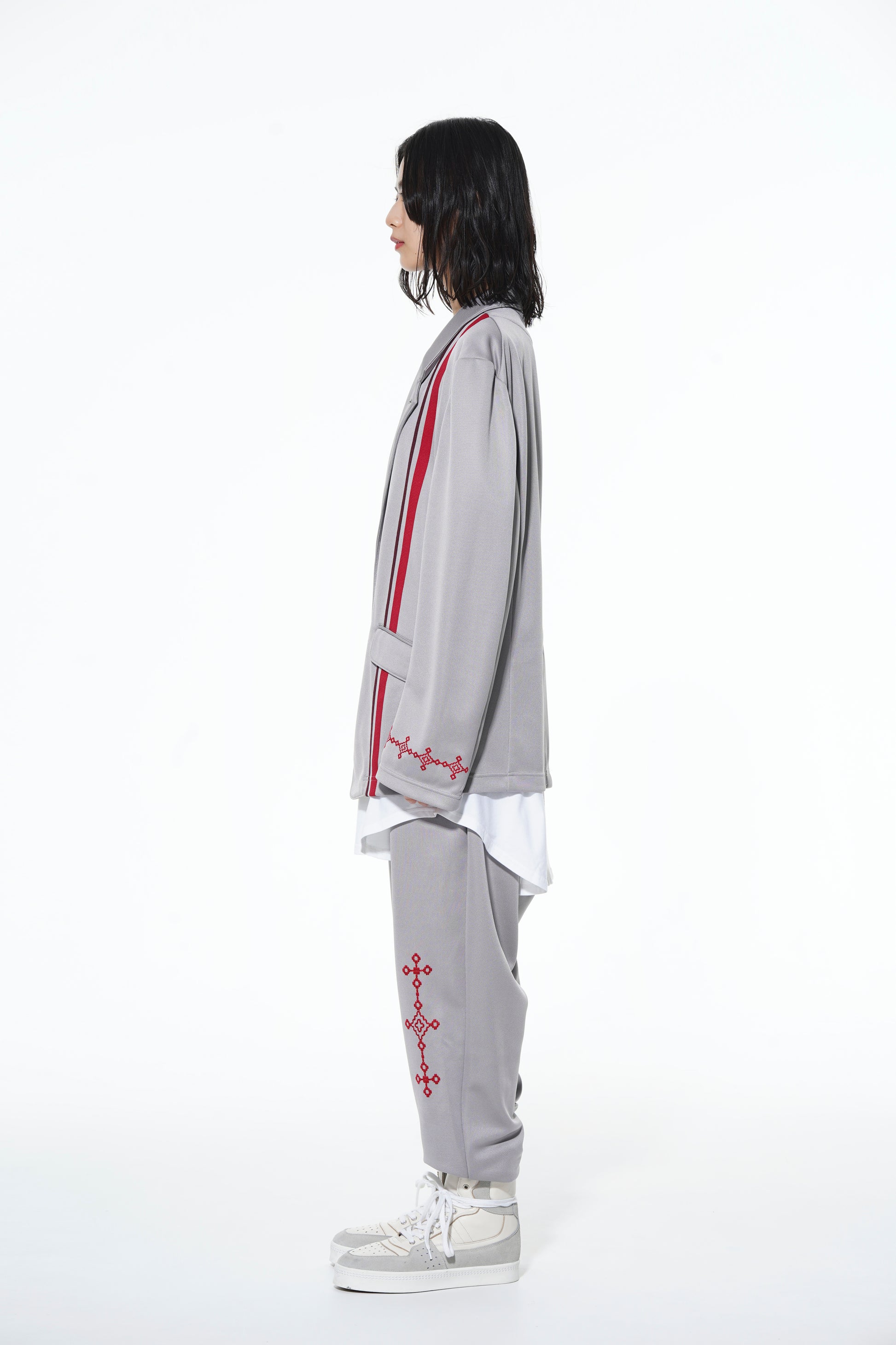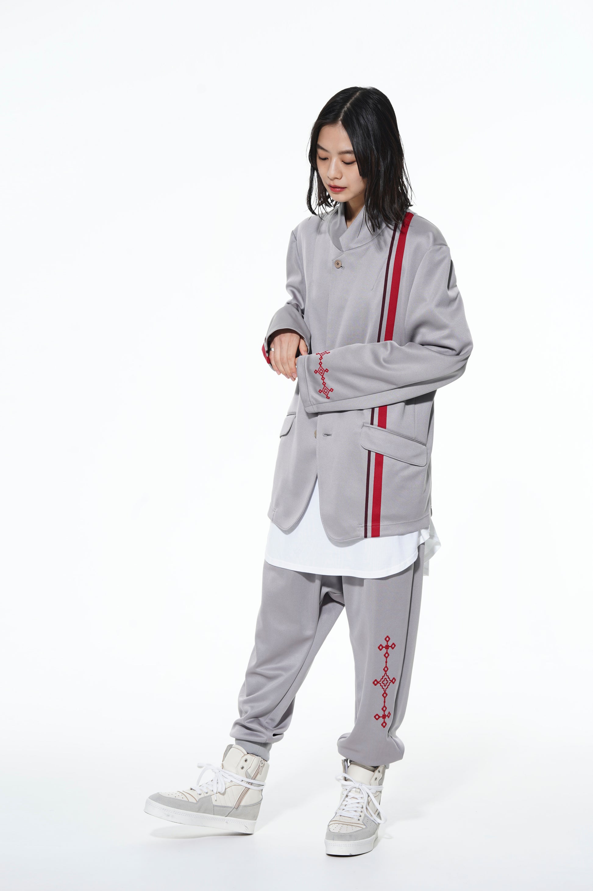 PE/SMOOTH JERSEY GEOMETRIC PATTERN EMBROIDERY SIDE TAPE LINE SAROUEL RIB PANTS