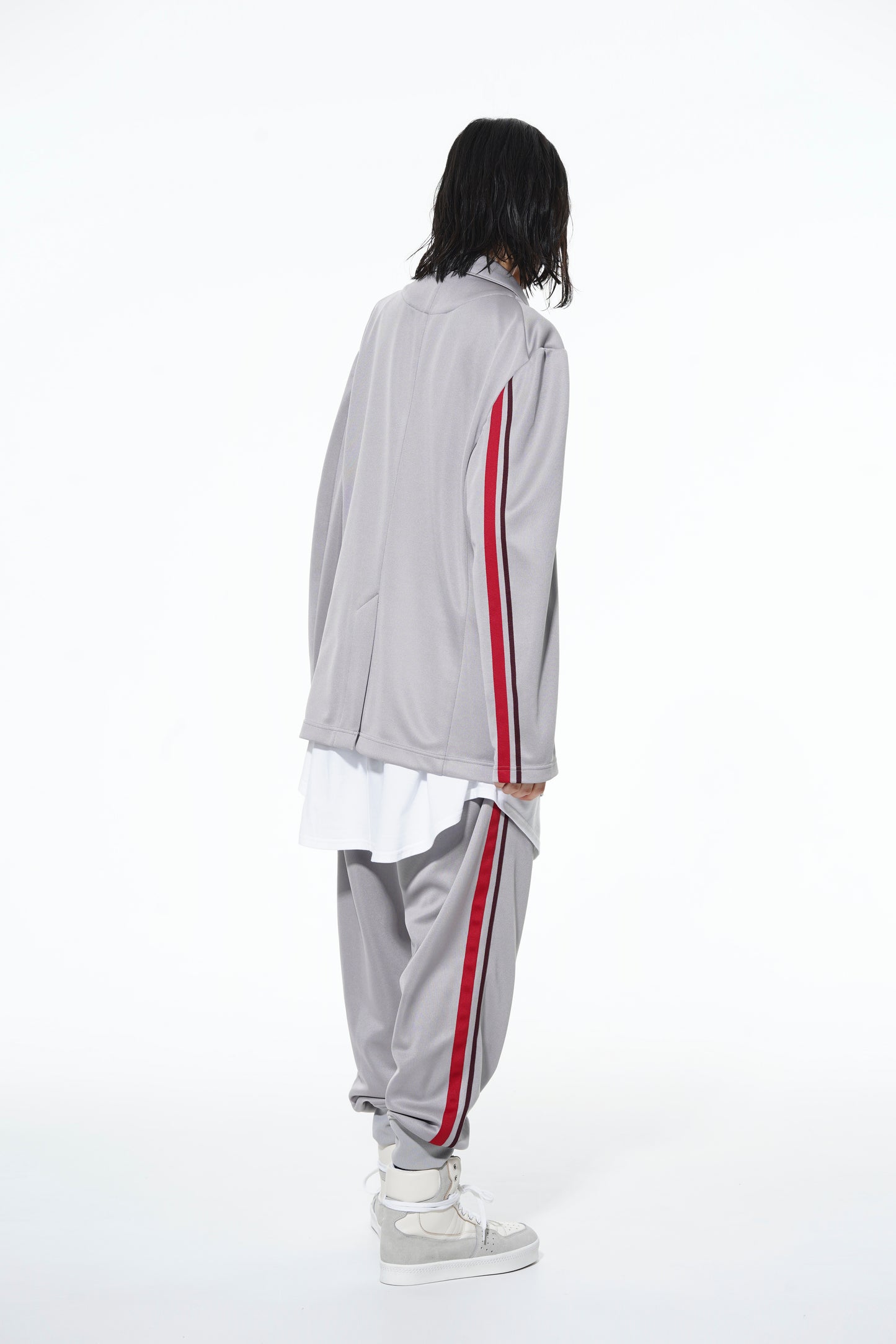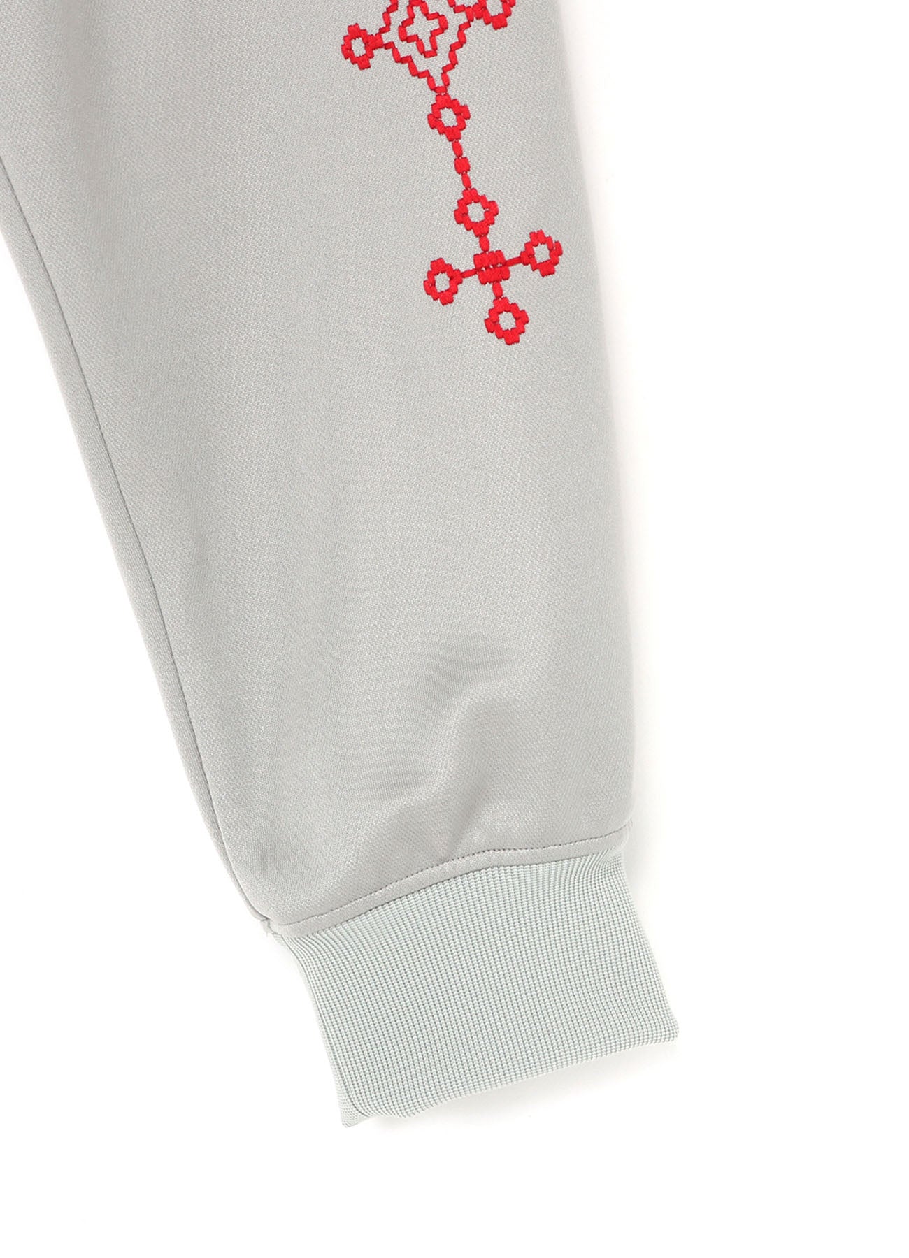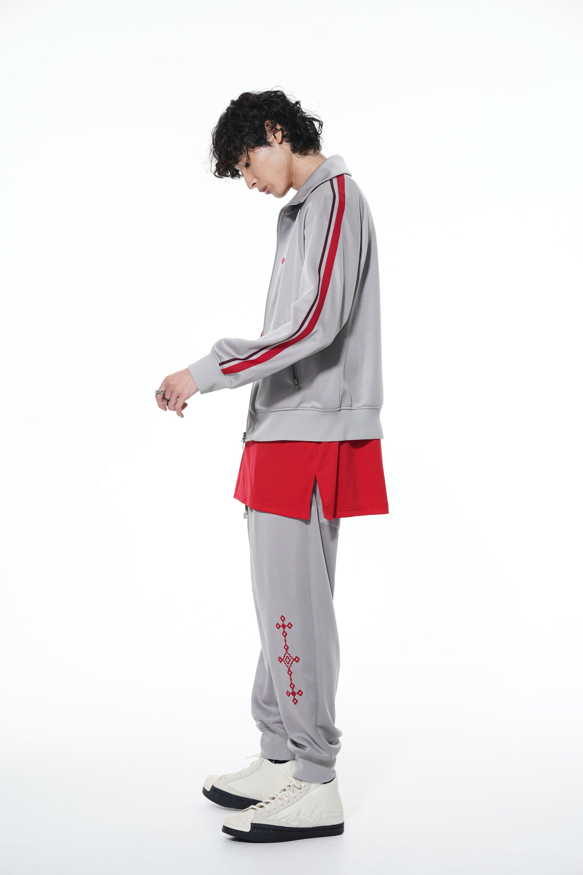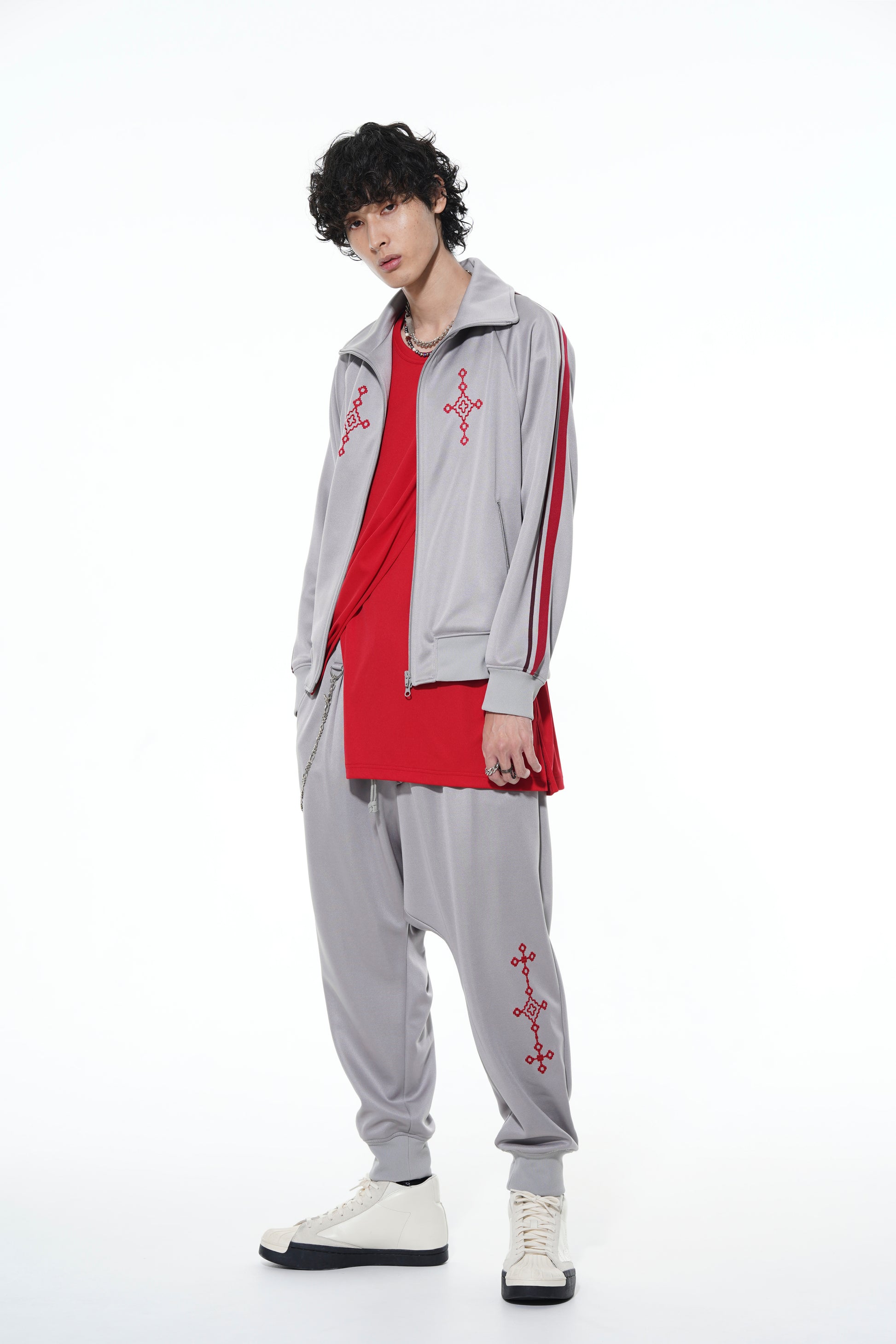 PE/SMOOTH JERSEY GEOMETRIC PATTERN EMBROIDERY SIDE TAPE LINE SAROUEL RIB PANTS