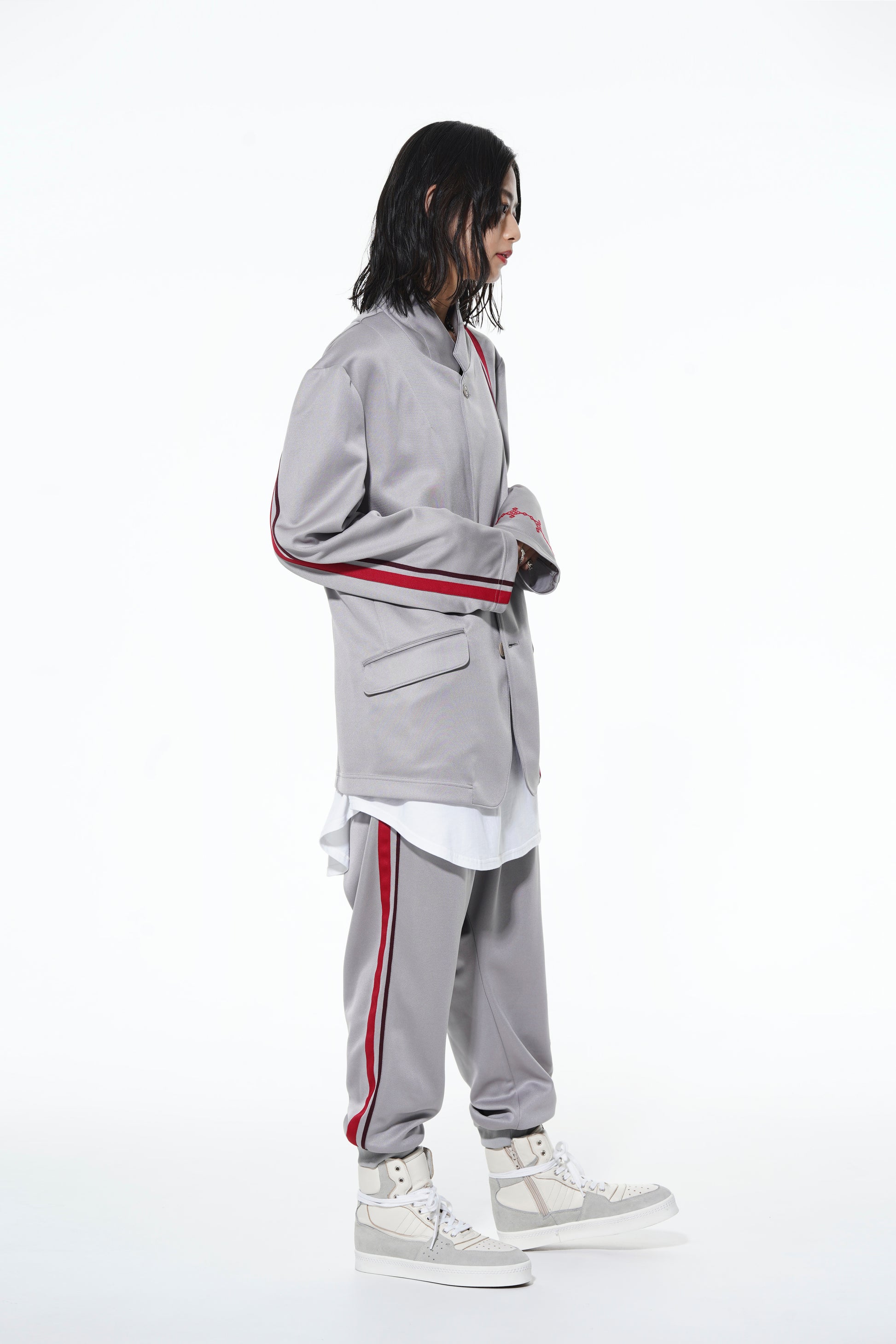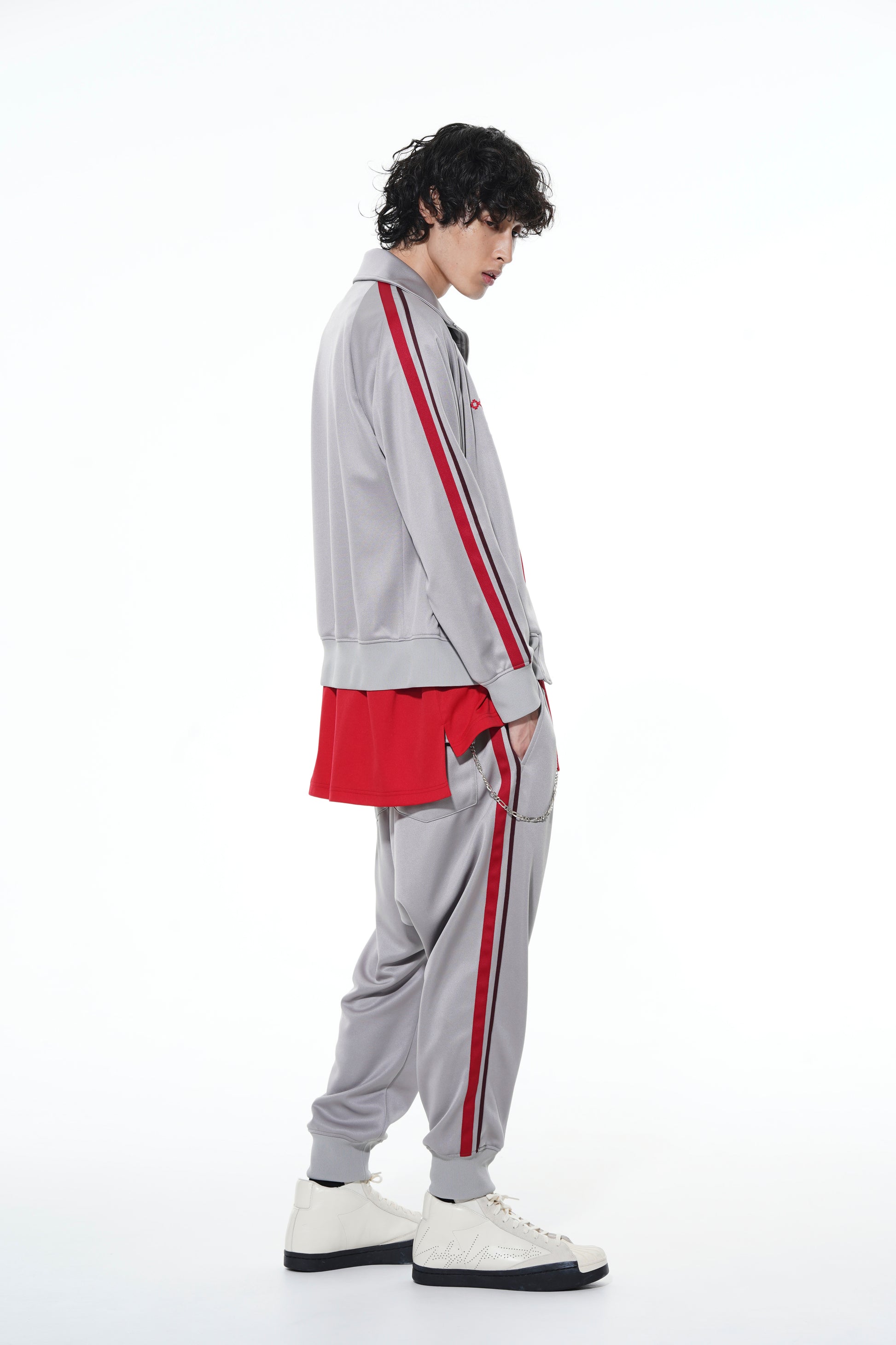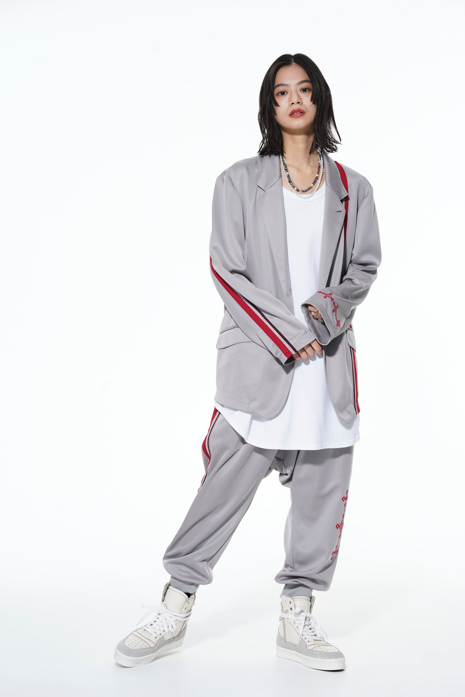 S'YTE updates its signature sarouel pants to track pants with sporty and oriental elements. Combining elastic waistbands and ribbed hems, it maintains the sarouel's unique voluminous silhouette while featuring extreme tapering from knee to hem, enhancing compatibility with sporty elements like sneakers. Available in grey/red and black/yellow, they're versatile for all-season wear.