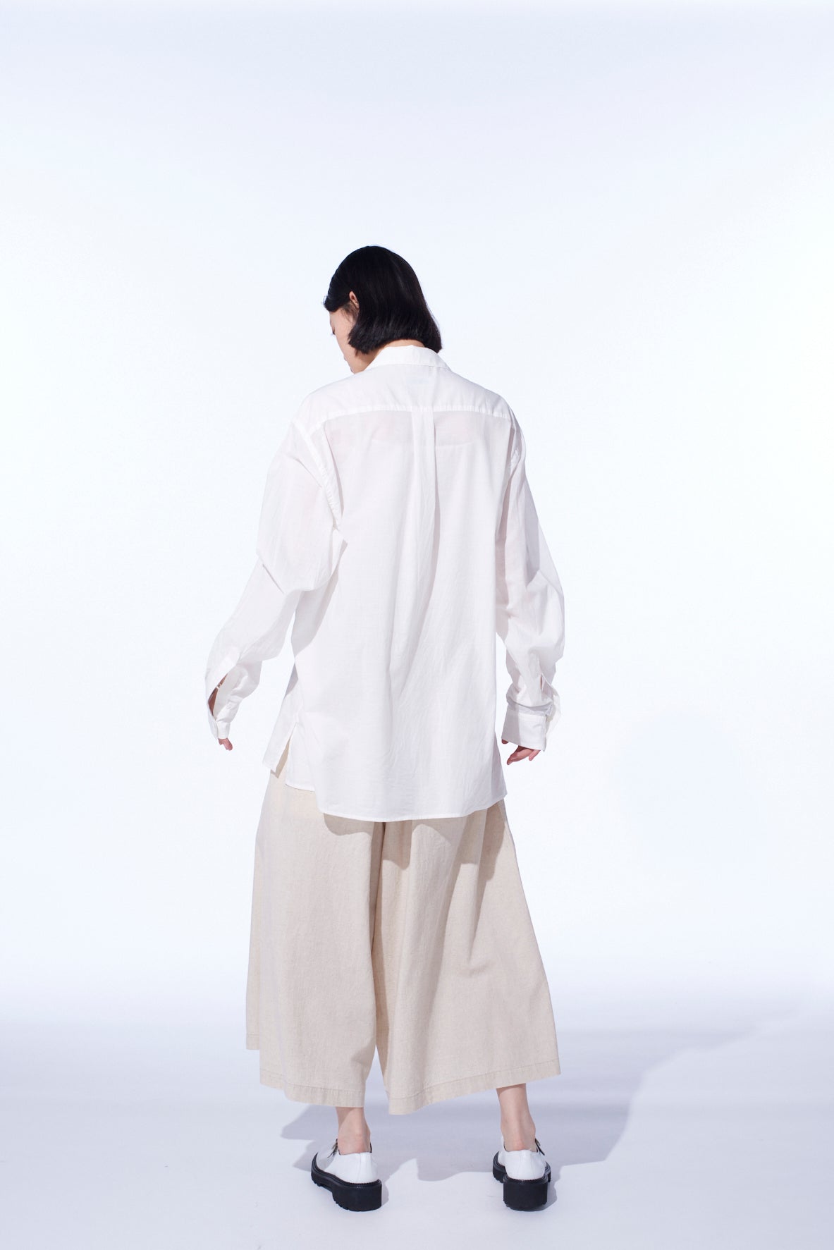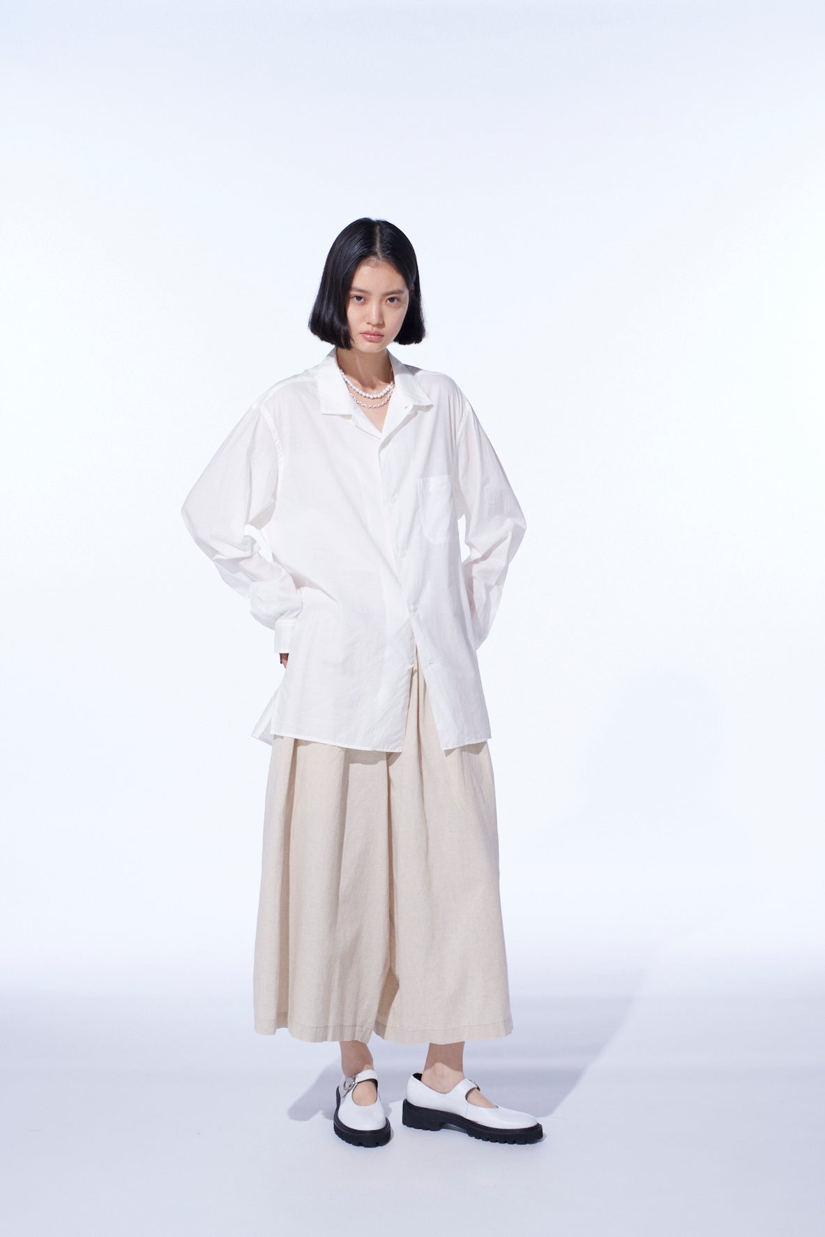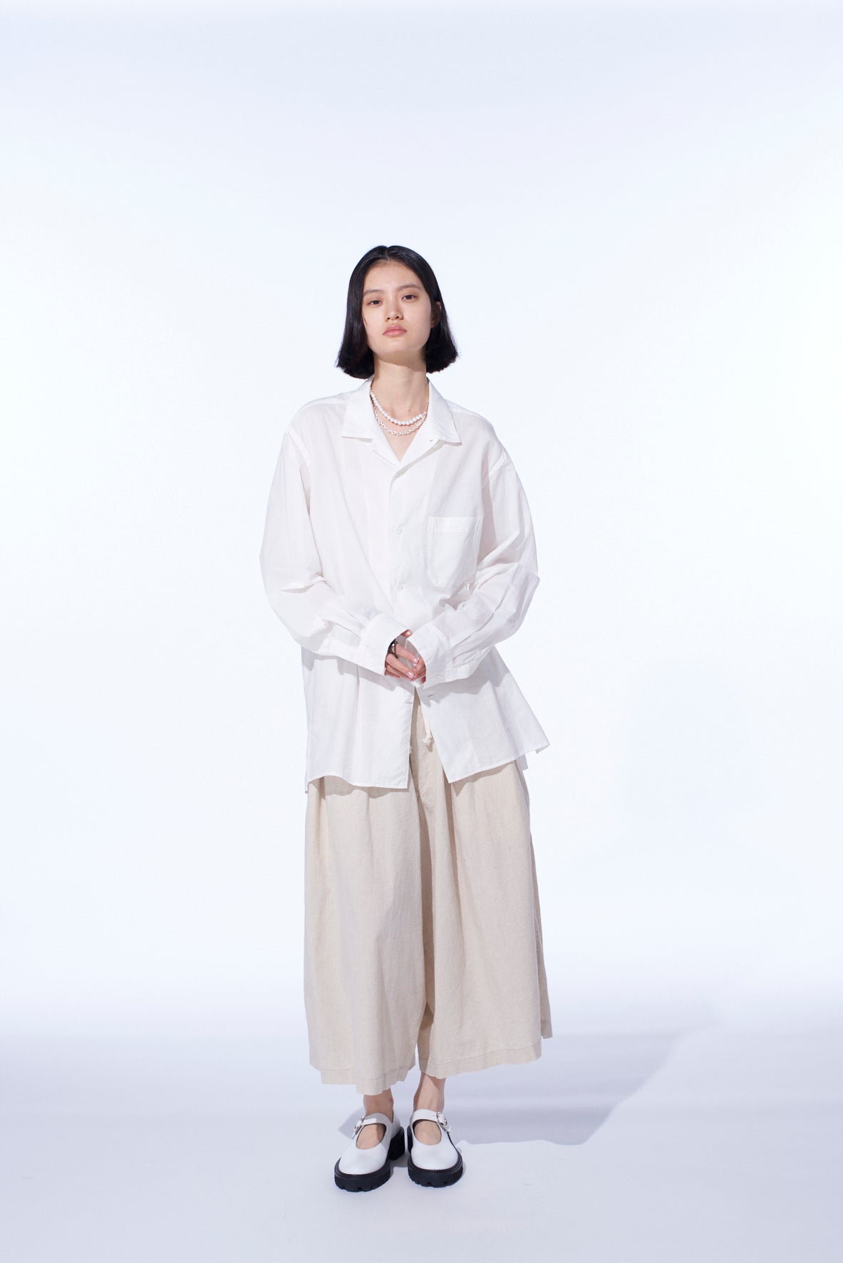 COTTON SILK LOAN LOOSE-FIT OPEN COLLAR SHIRT