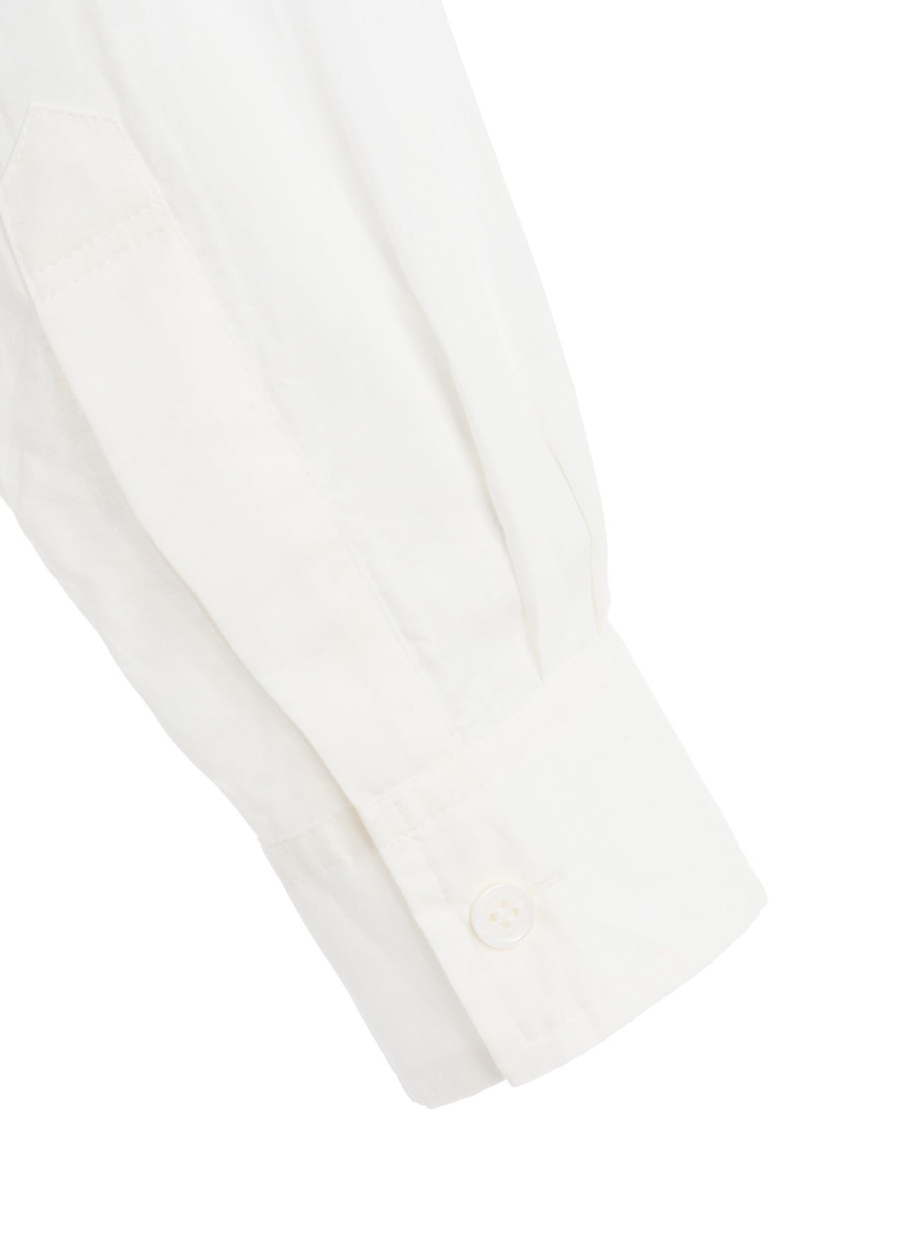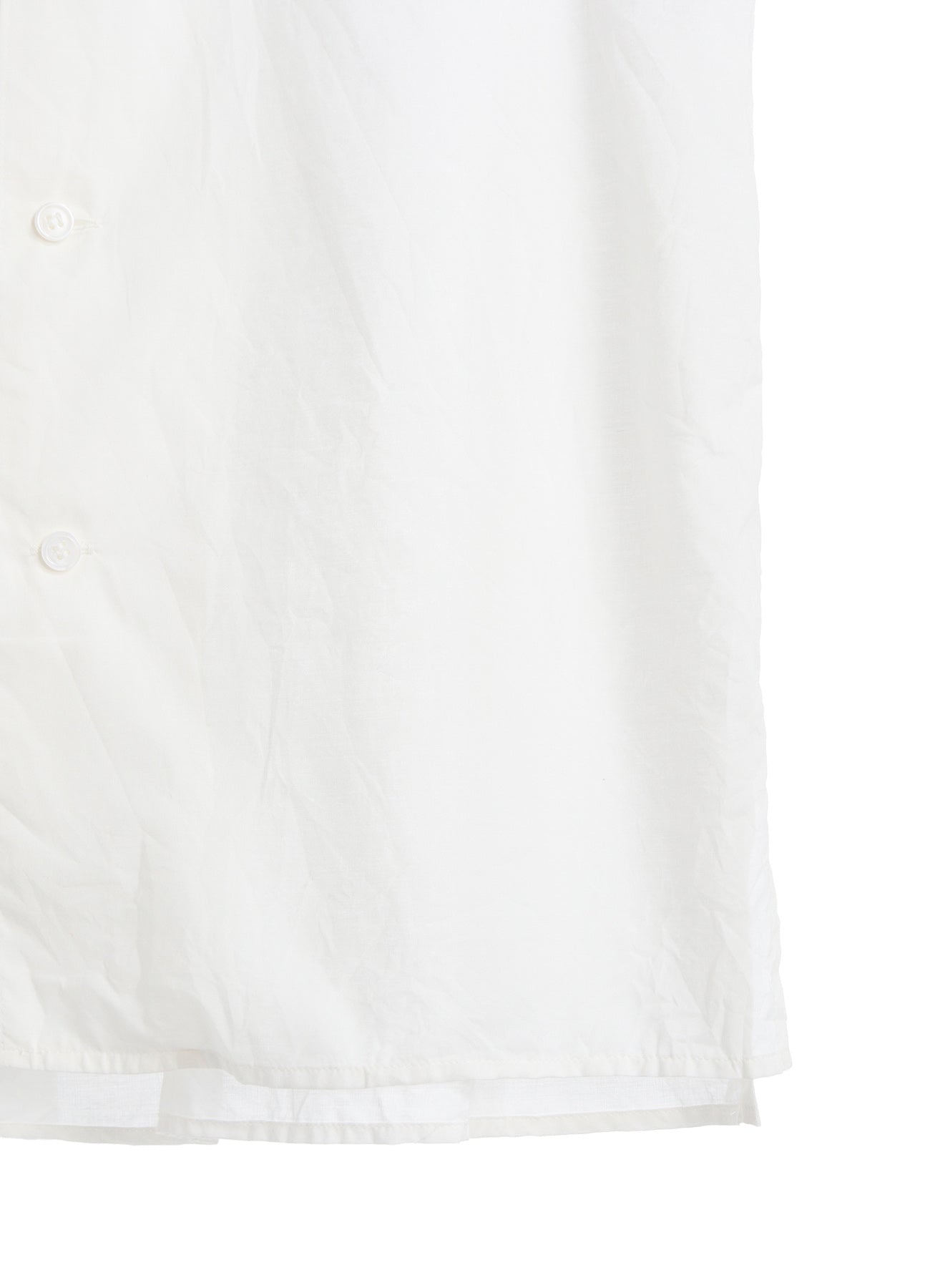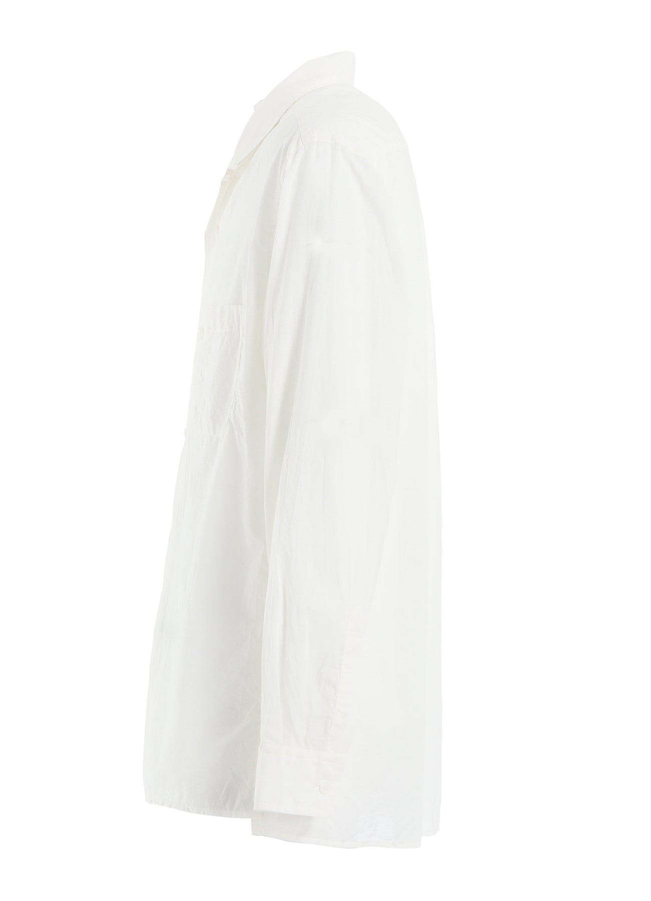 This open-collared shirt, made of smooth and airy cotton/silk lawn, embodies classic Yohji Yamamoto elements. Featuring a loose fit, square-cut hemline, and tuck detail at the back yoke, it offers versatility and a range of styling options for a cool look, thanks to its simple design and breathability.