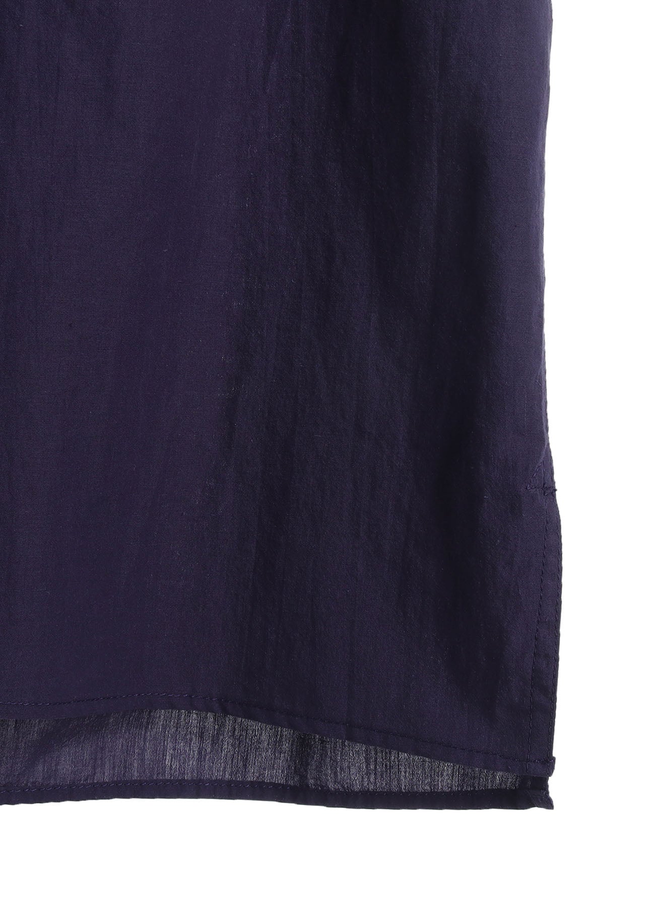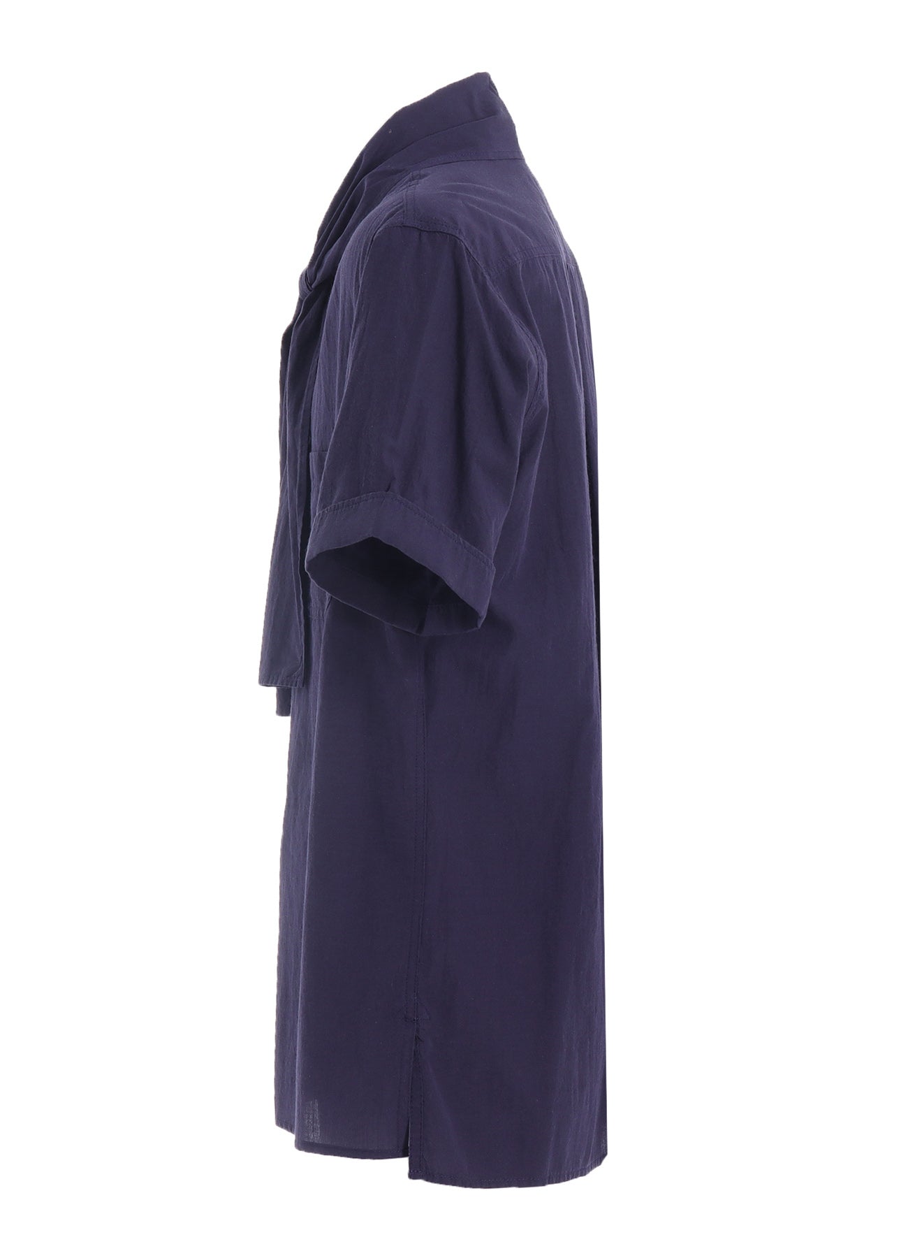 This stylish stole collar shirt offers versatility with its long scarf-like collar that can be tied, draped, or wrapped for different looks and moods. The faded blue broadcloth chambray is smooth, breathable, and perfect for summer, while reversible cuffs add a relaxed touch.