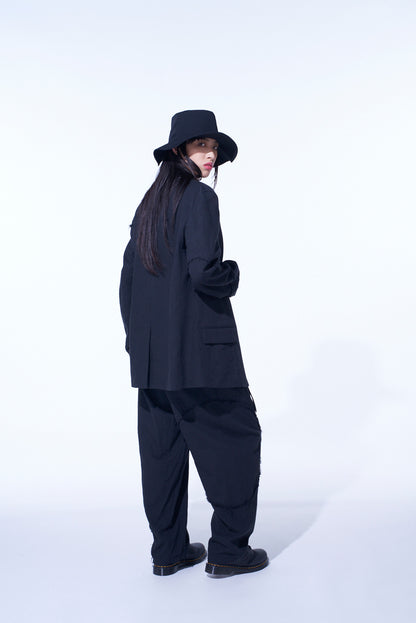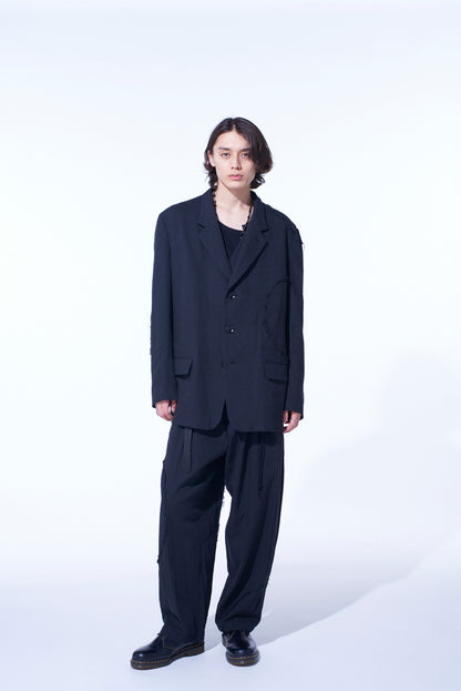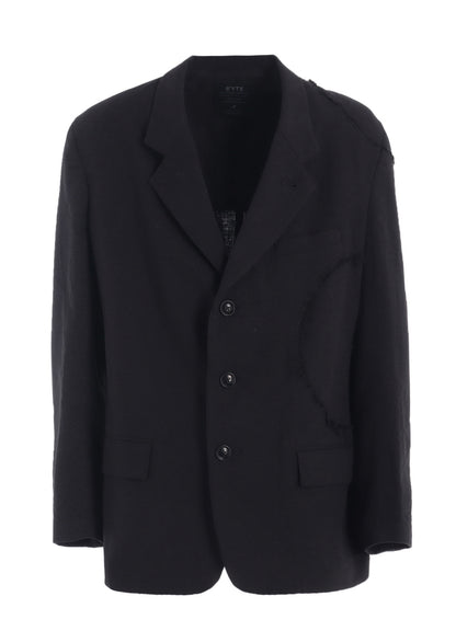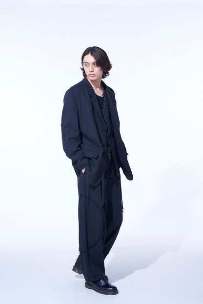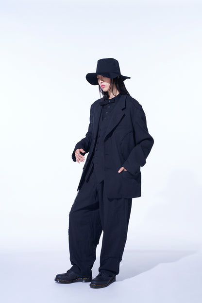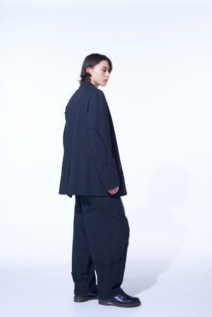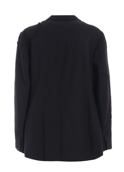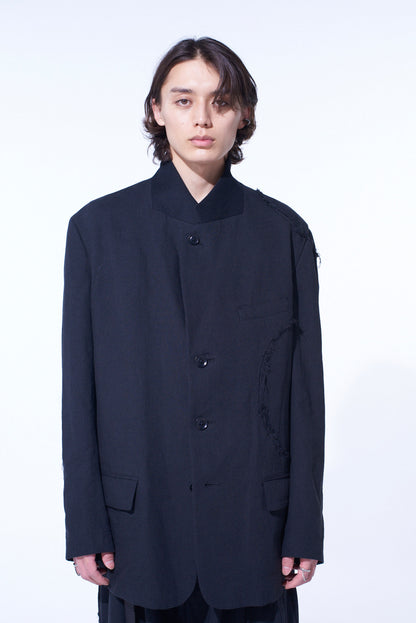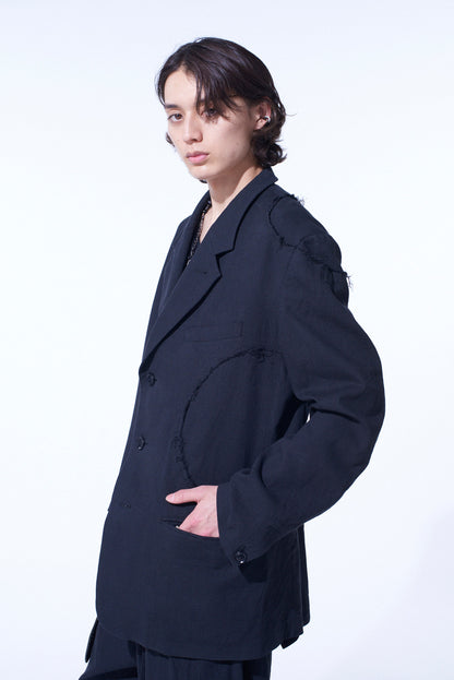 LINEN/COTTON HERRINGBONE ZIGZAG CUT-OUT JACKET