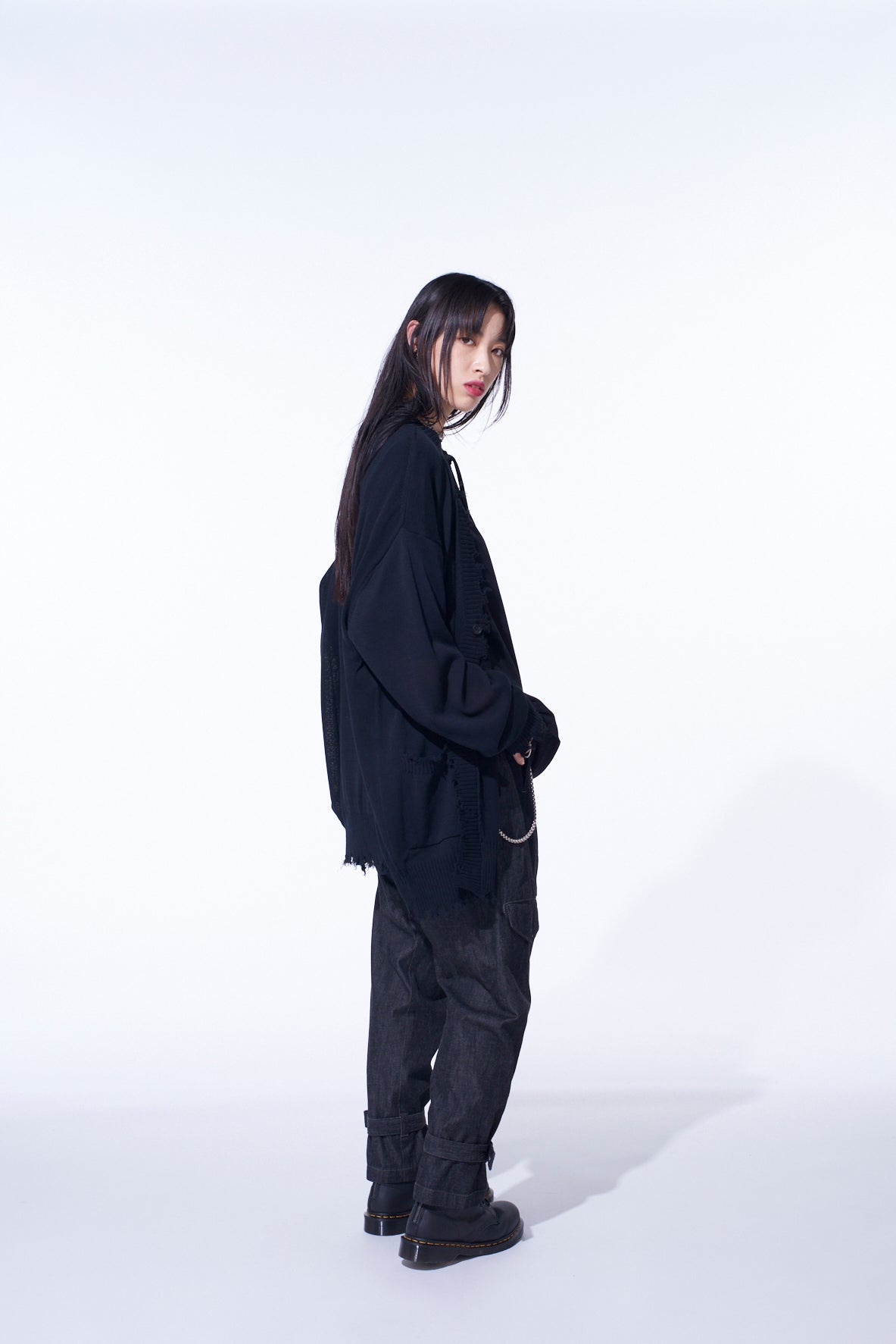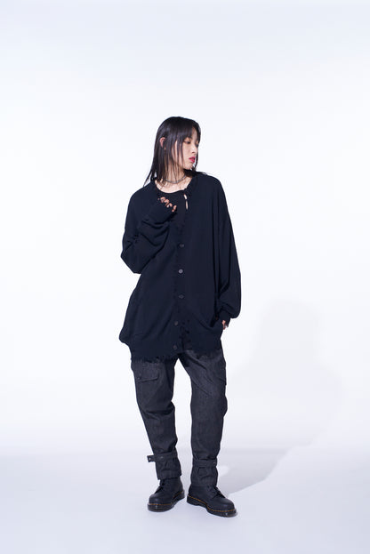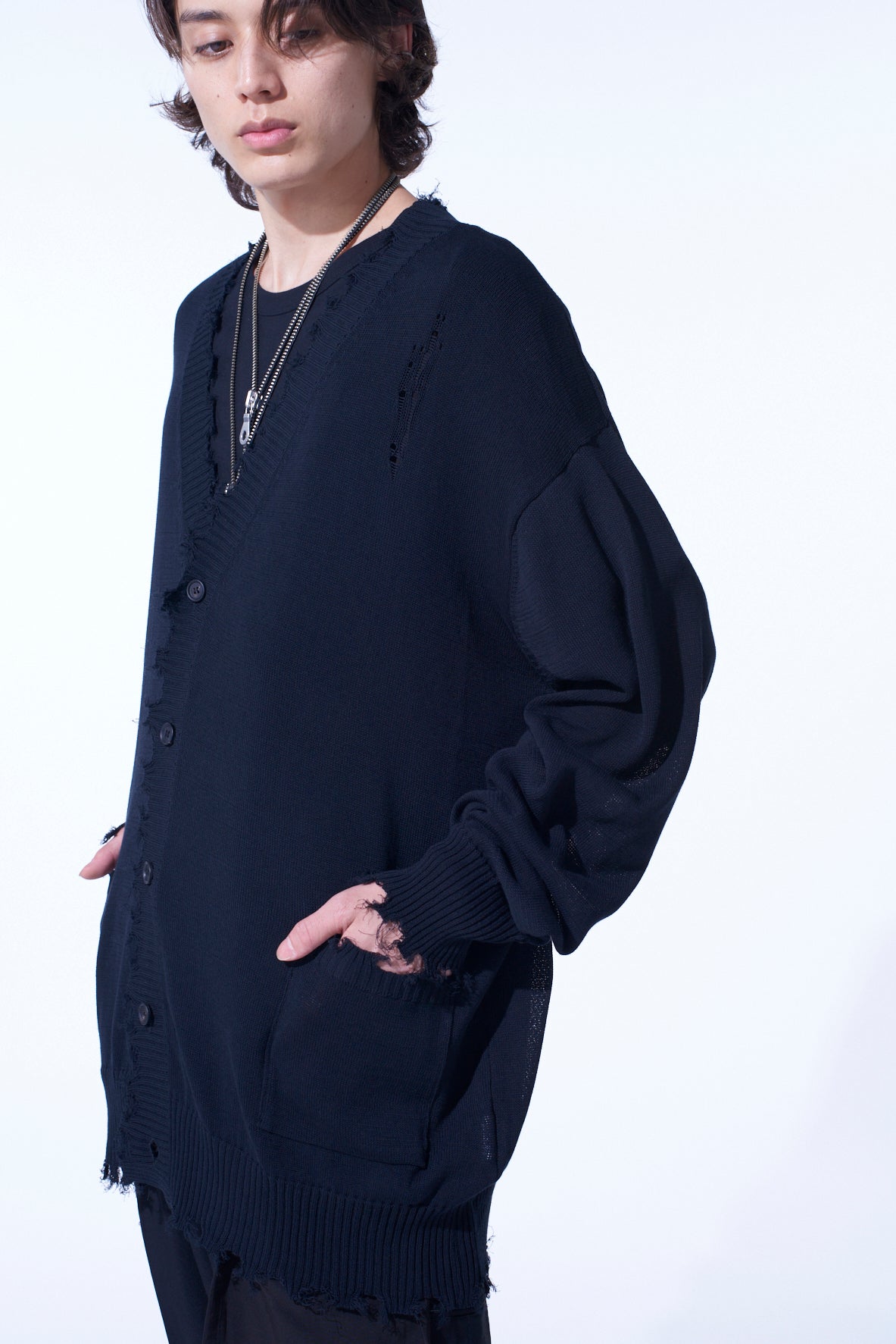 COMPACT TWIST 10G DAMAGED KNITTED CARDIGAN